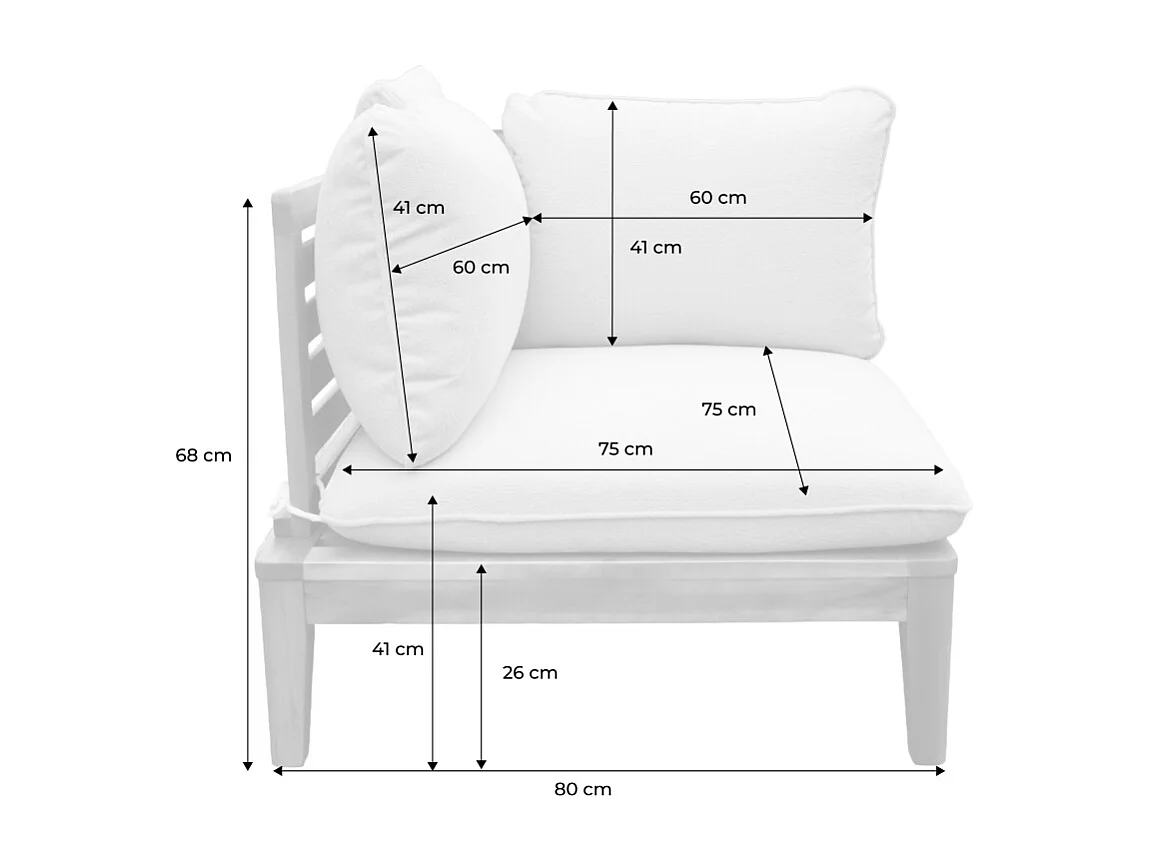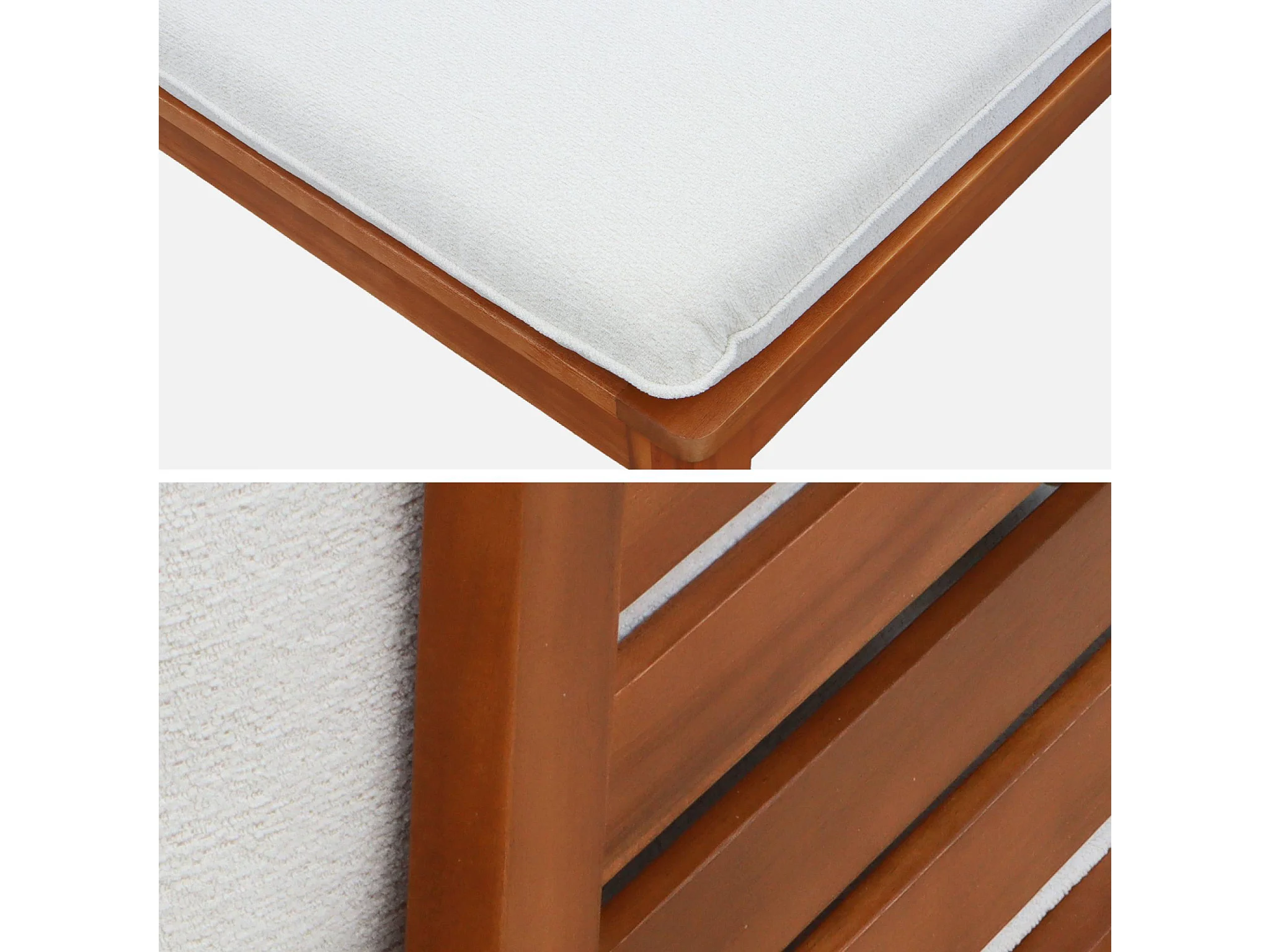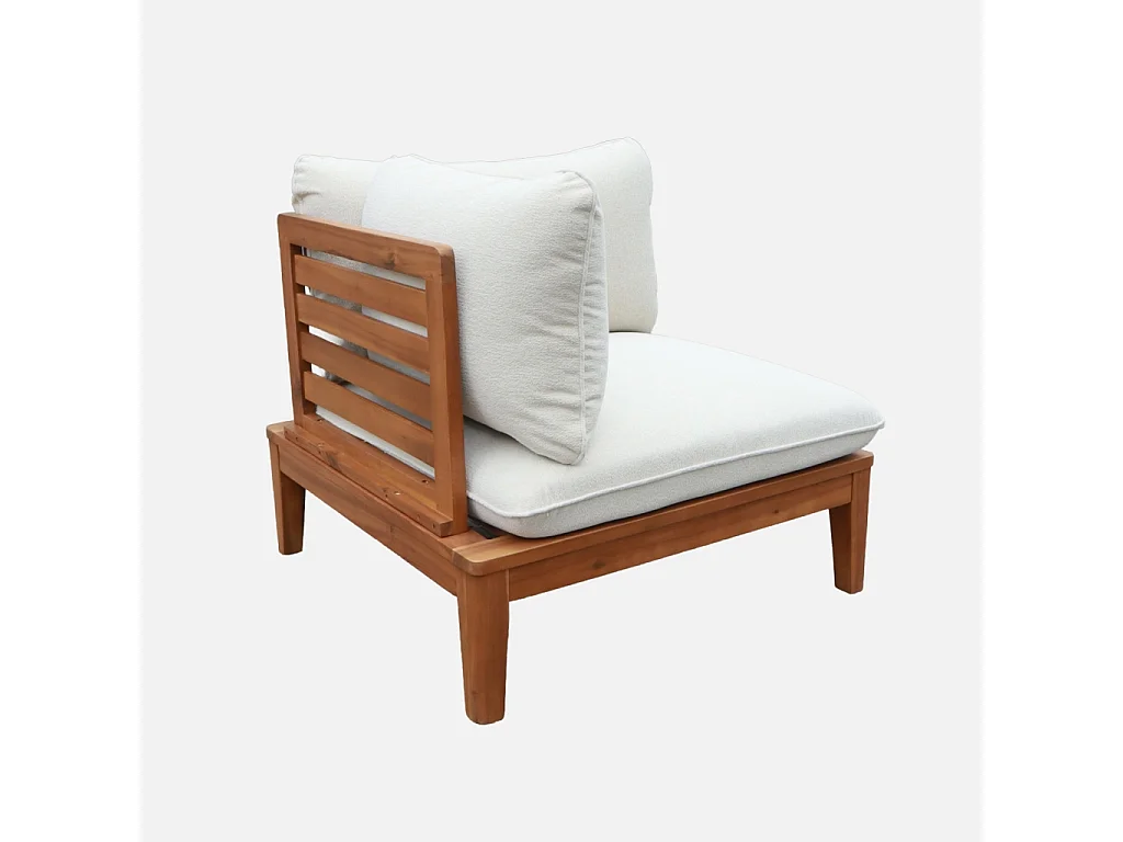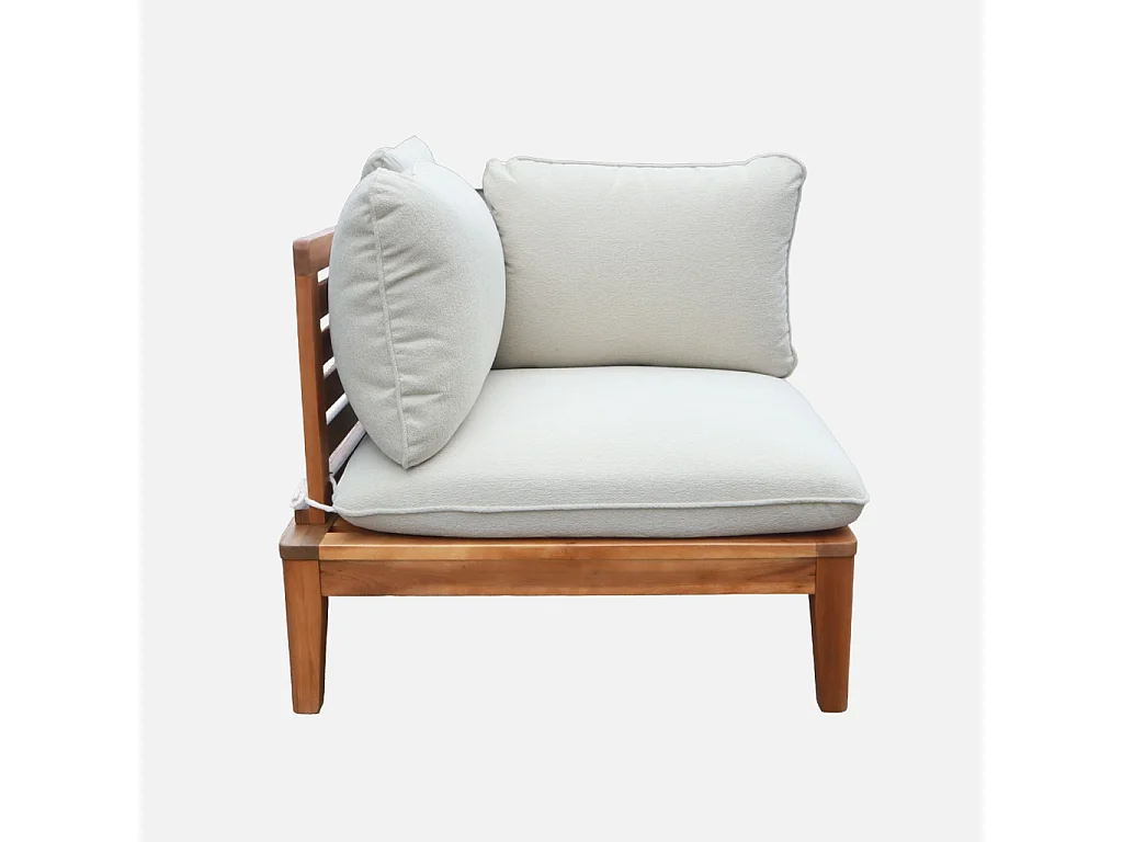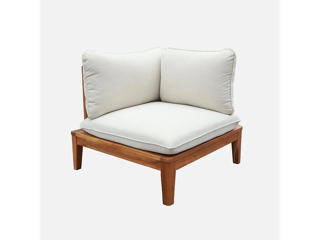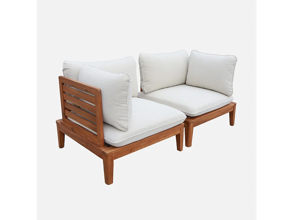 Divano modulare da giardino in legno di acacia e bouclé, 2 posti,