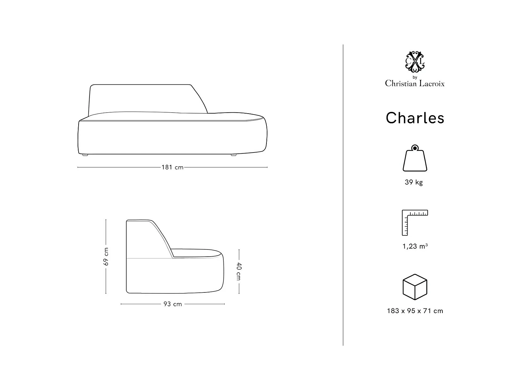CXL by Christian Lacroix - Divano modulare destro "Charles" 2 posti in velluto grigio scuro - 181x93x69cm