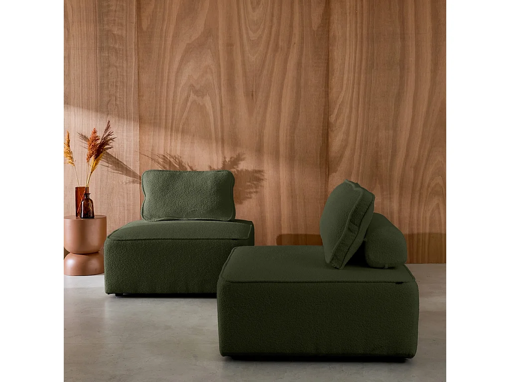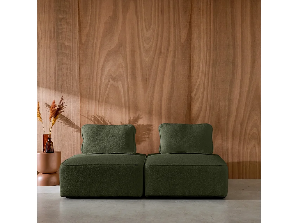 Divano modulare in bouclé, 2 posti, verde kaki