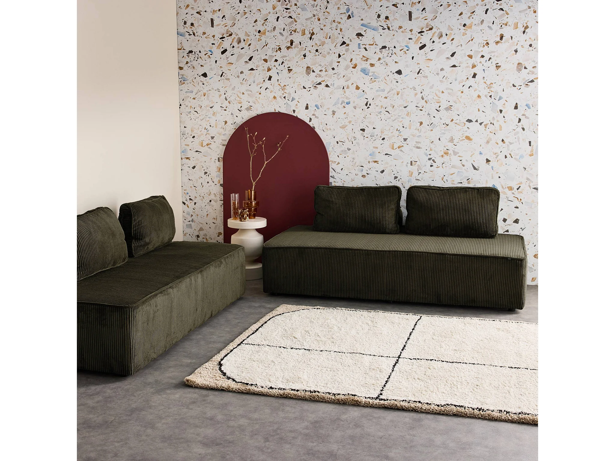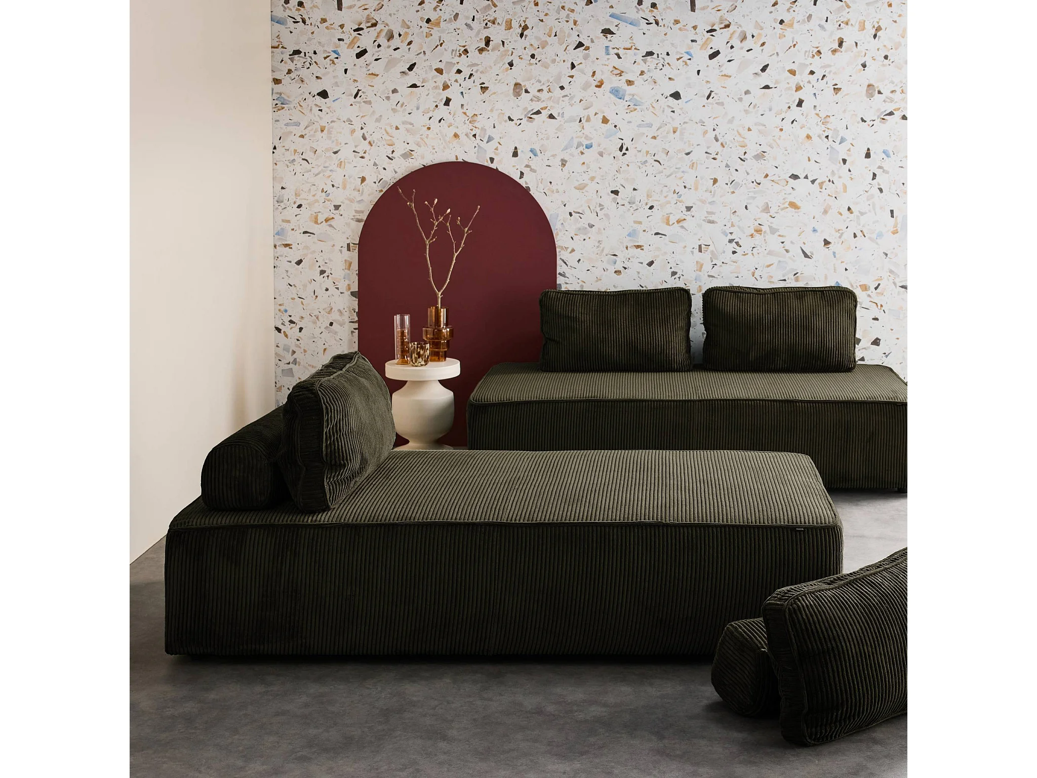 Divano modulare in velluto, 4 posti, verde scuro
