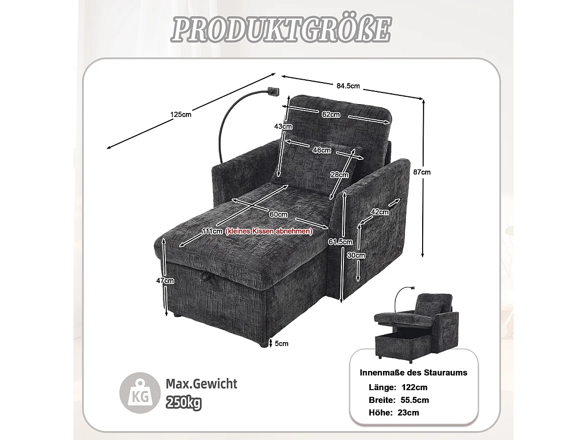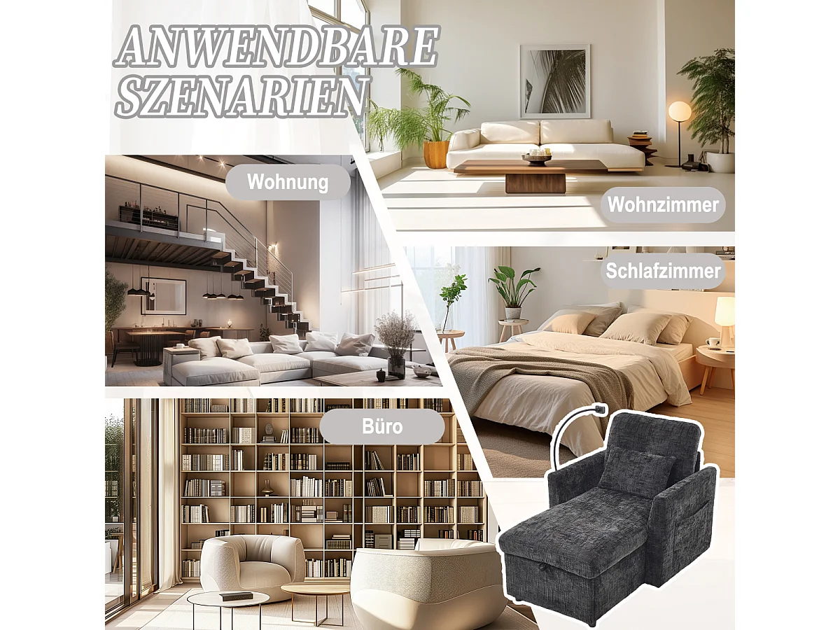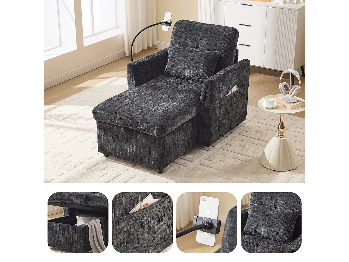 Divano multifunzionale con porta cellulare, poltrona in ciniglia per soggiorno