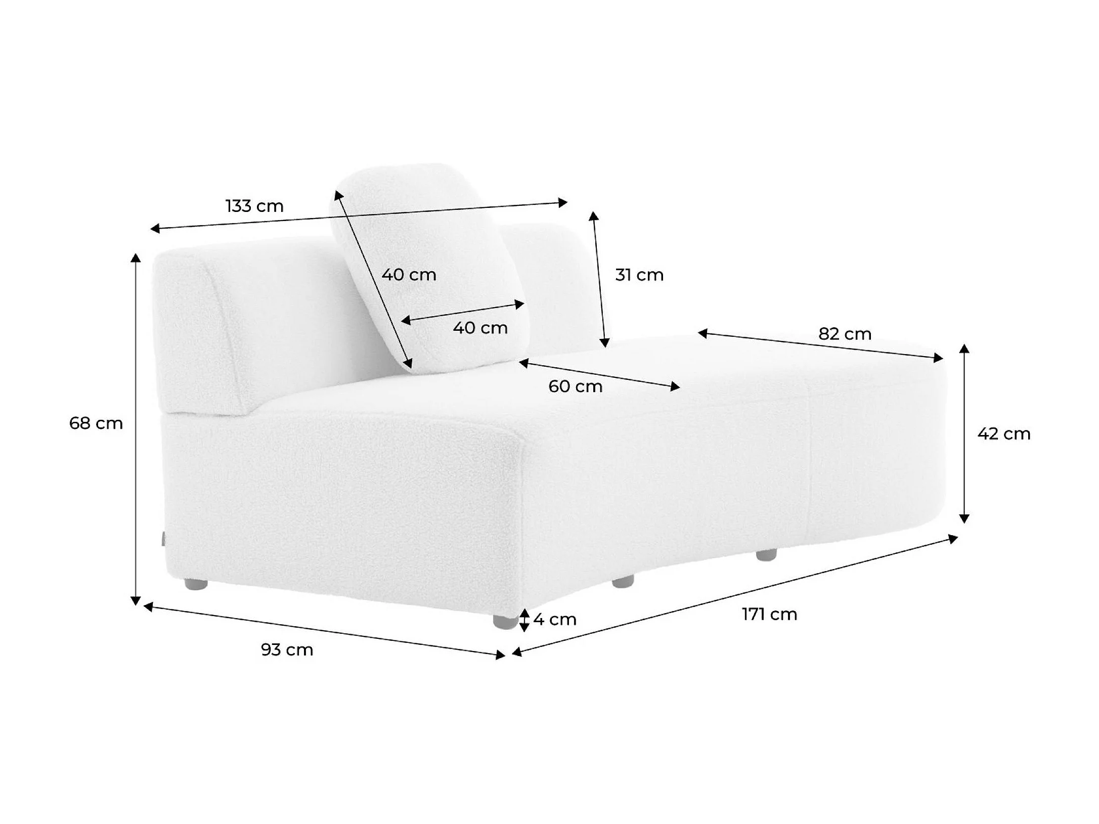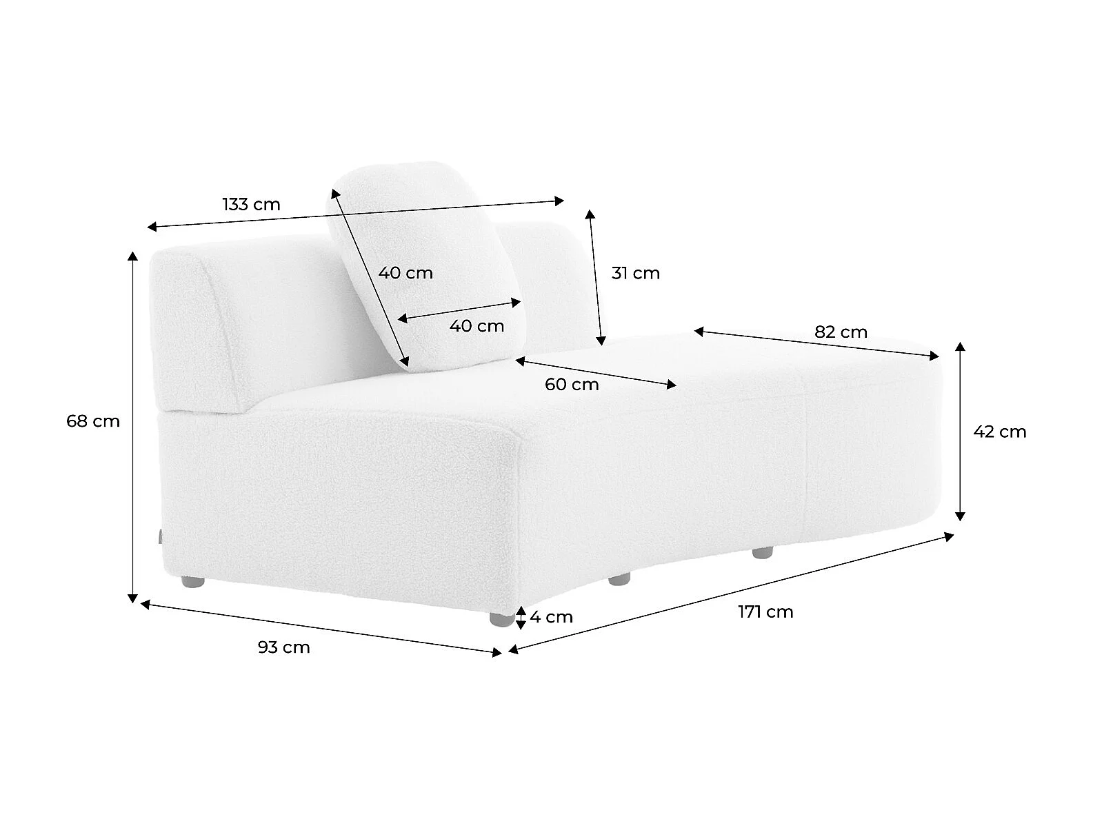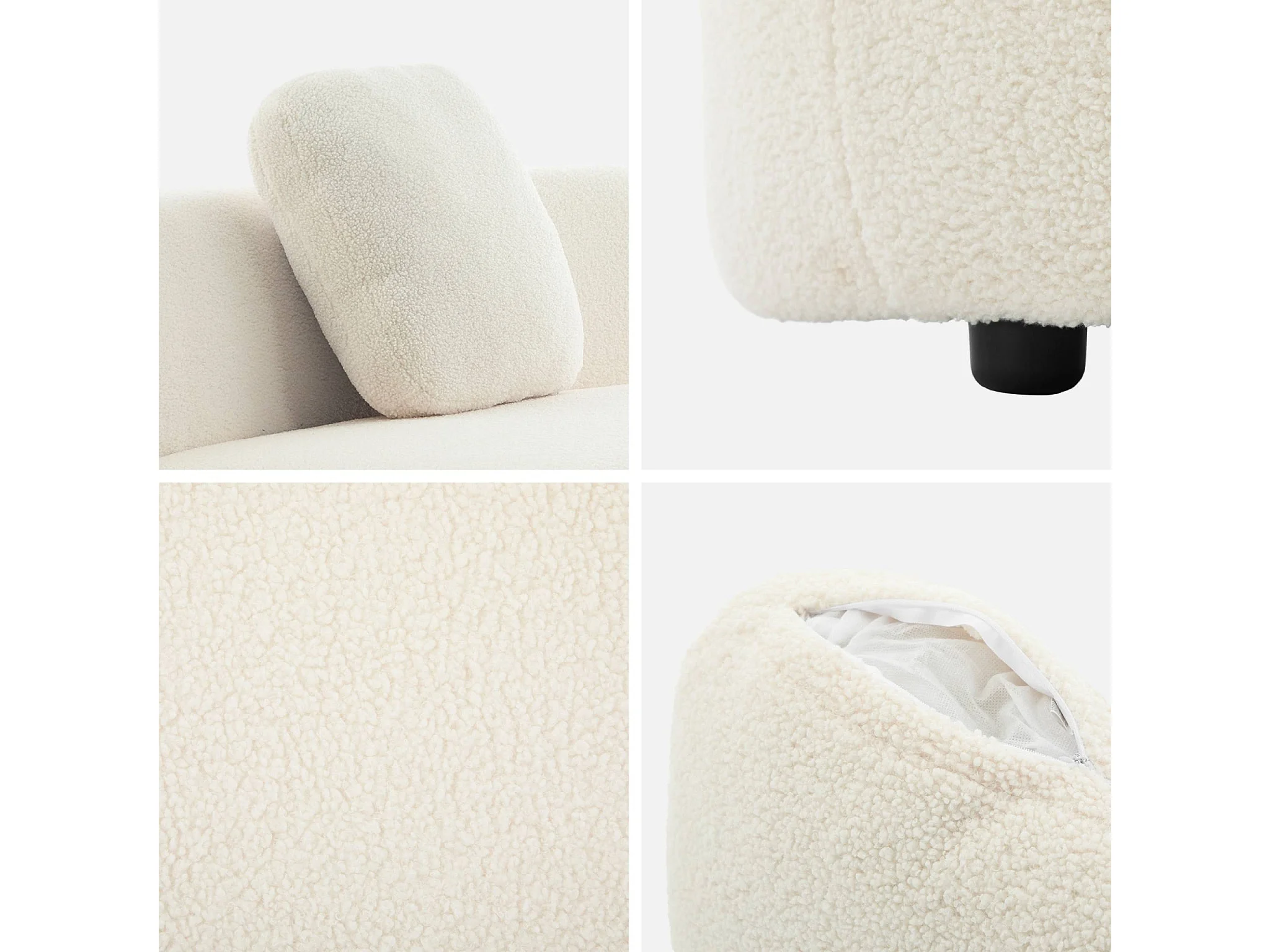 Divano organico a forma di virgola in bouclé, 2–3 posti, crema