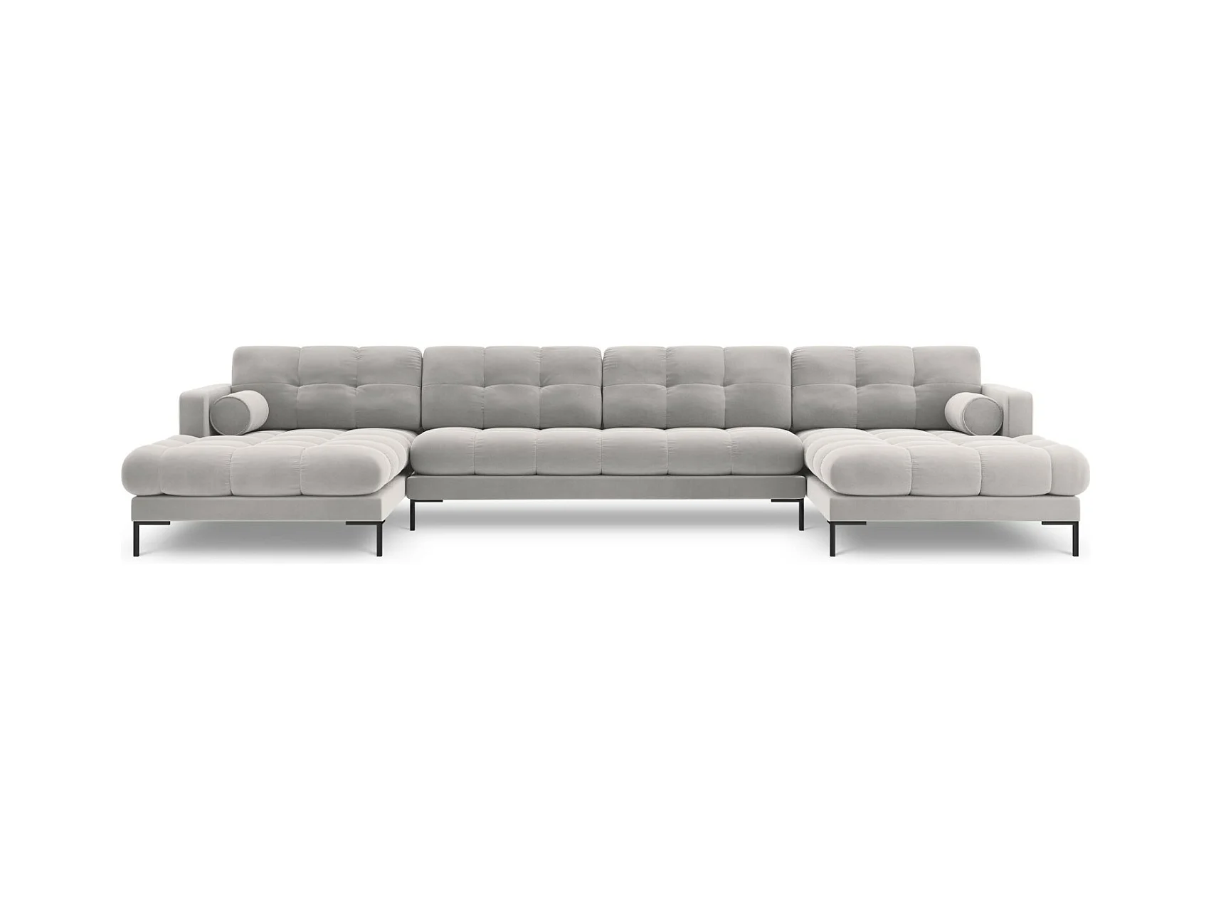 Cosmopolitan Design - Divano panoramico "Bali" 9 posti in velluto argento - 327x256x75cm