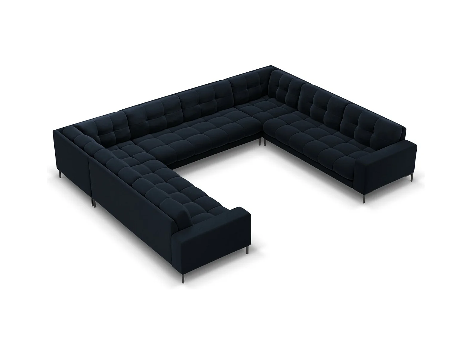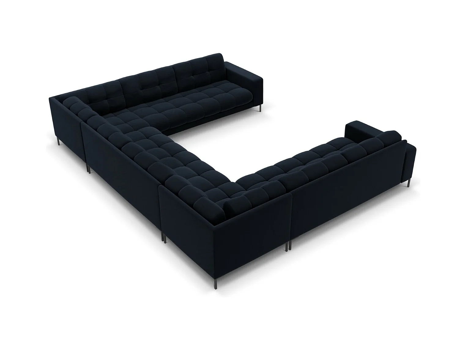 Cosmopolitan Design - Divano panoramico "Bali" 9 posti in velluto blu scuro - 327x256x75cm