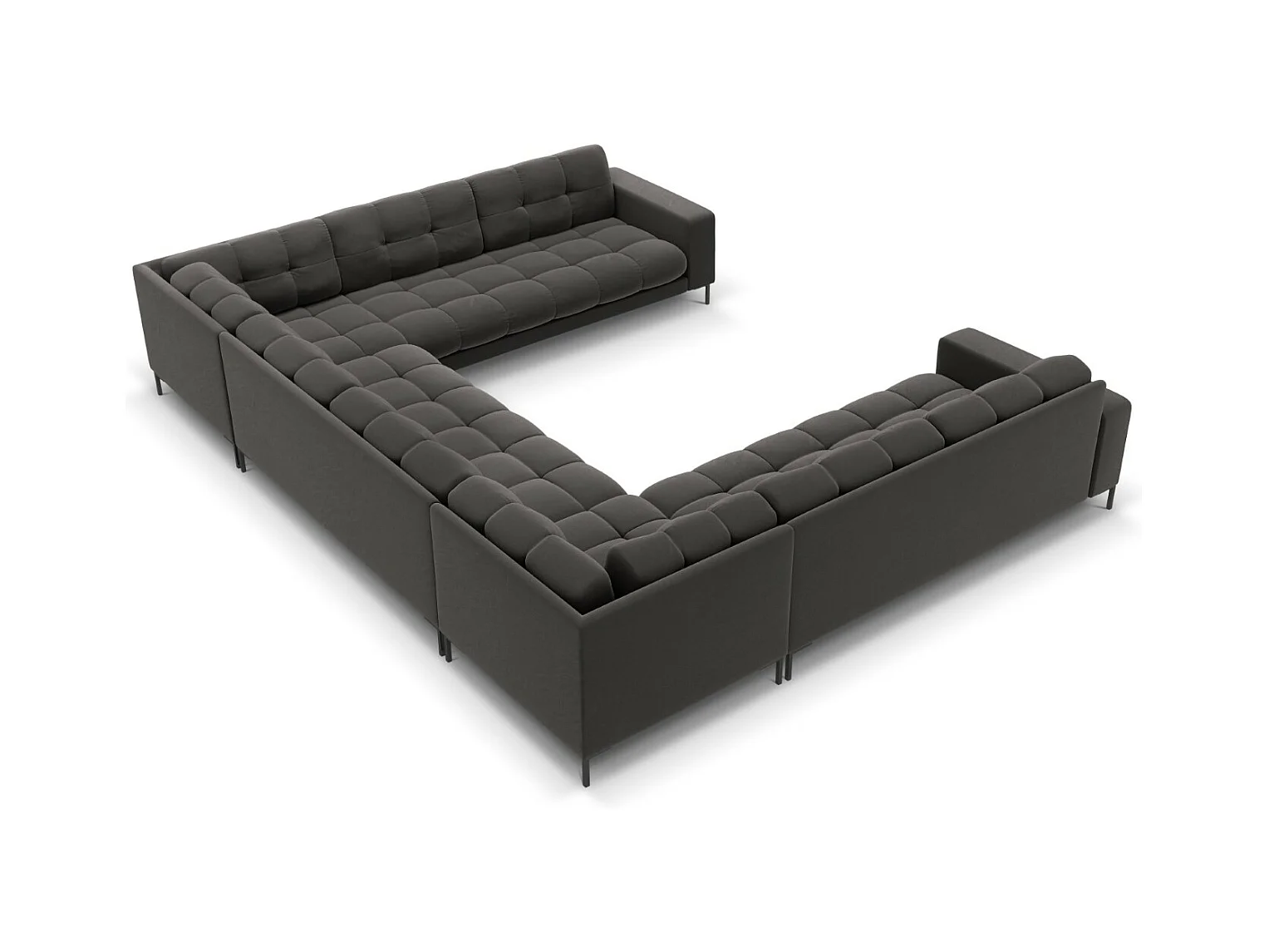 Cosmopolitan Design - Divano panoramico "Bali" 9 posti in velluto grigio scuro - 327x256x75cm