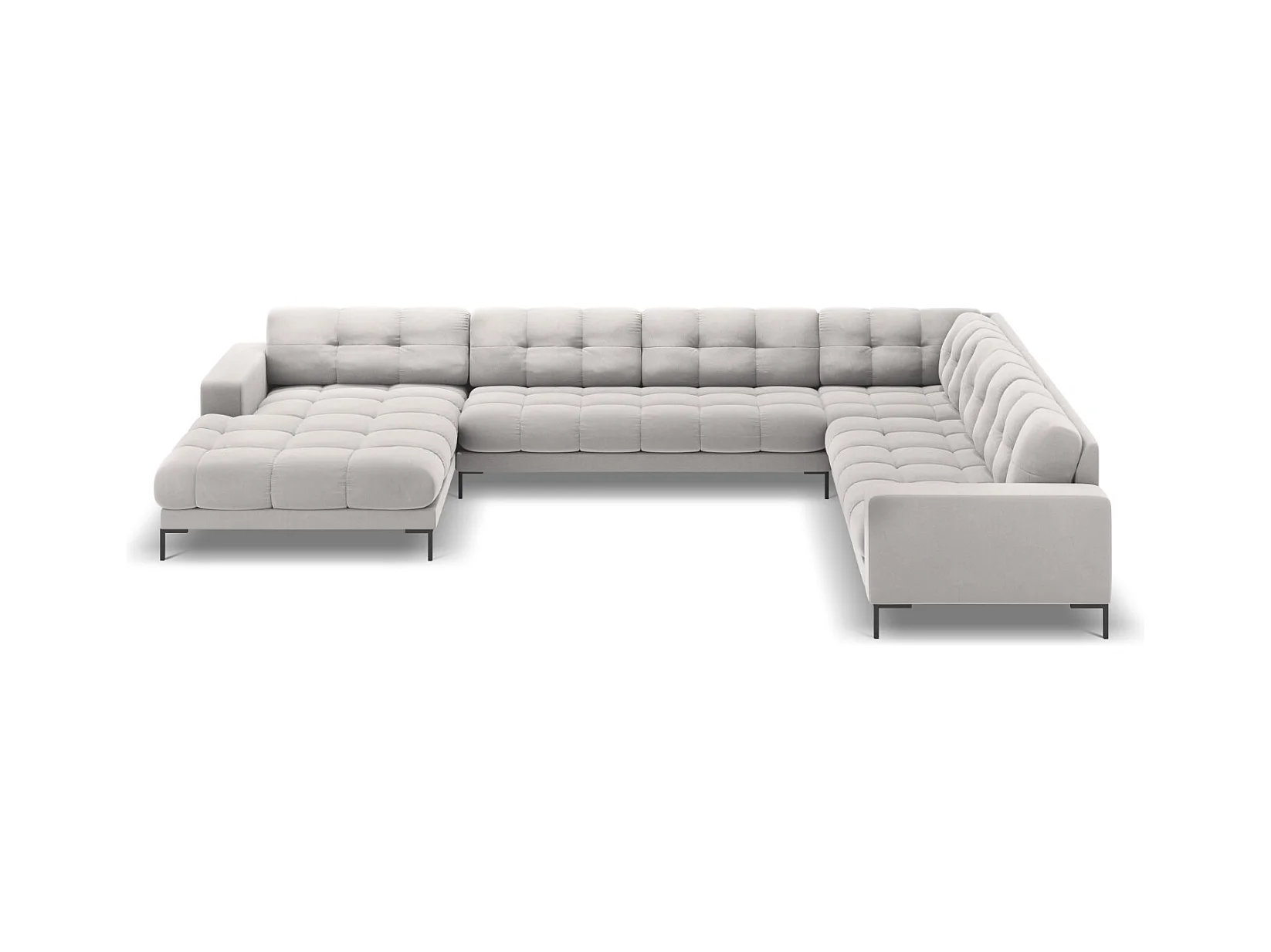 Cosmopolitan Design - Divano panoramico sinistro "Bali" 7 posti in velluto argento - 327x256x75cm