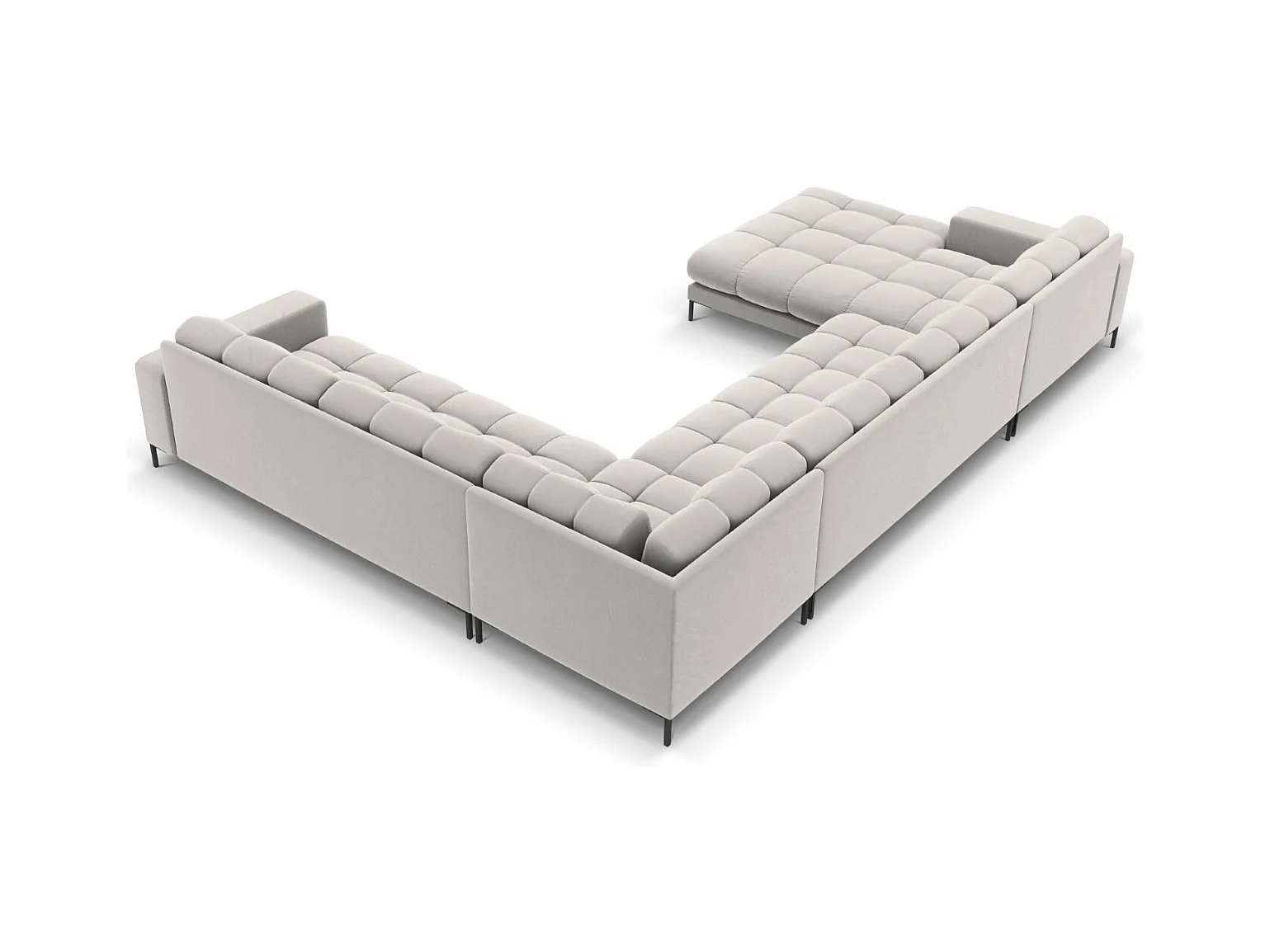 Cosmopolitan Design - Divano panoramico destro "Bali" 7 posti in velluto argento - 327x256x75cm