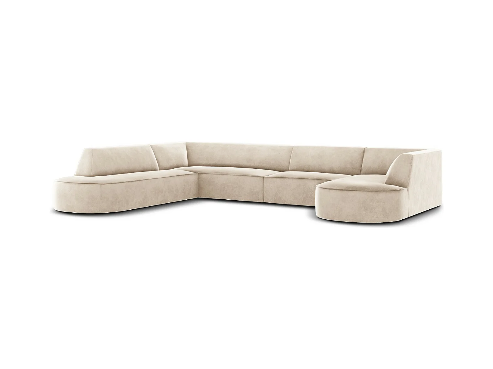 Cosmopolitan Design - Divano panoramico sinistro "Bali" 7 posti in velluto beige chiaro - 327x256x75cm