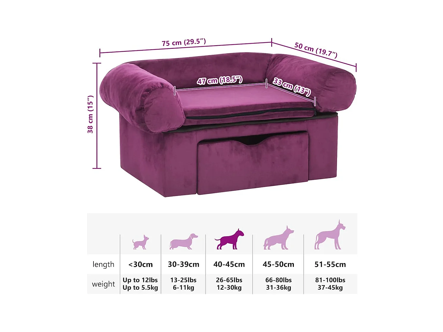 Divano per cani con cassetto Bordeaux 75x50x38 cm Peluche