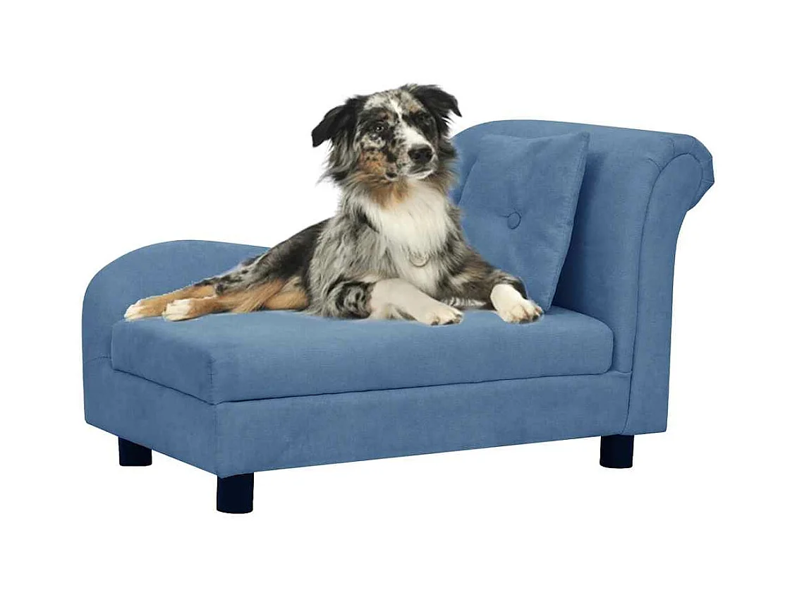 Divano per cani con cuscino blu 83x44x44 cm peluche