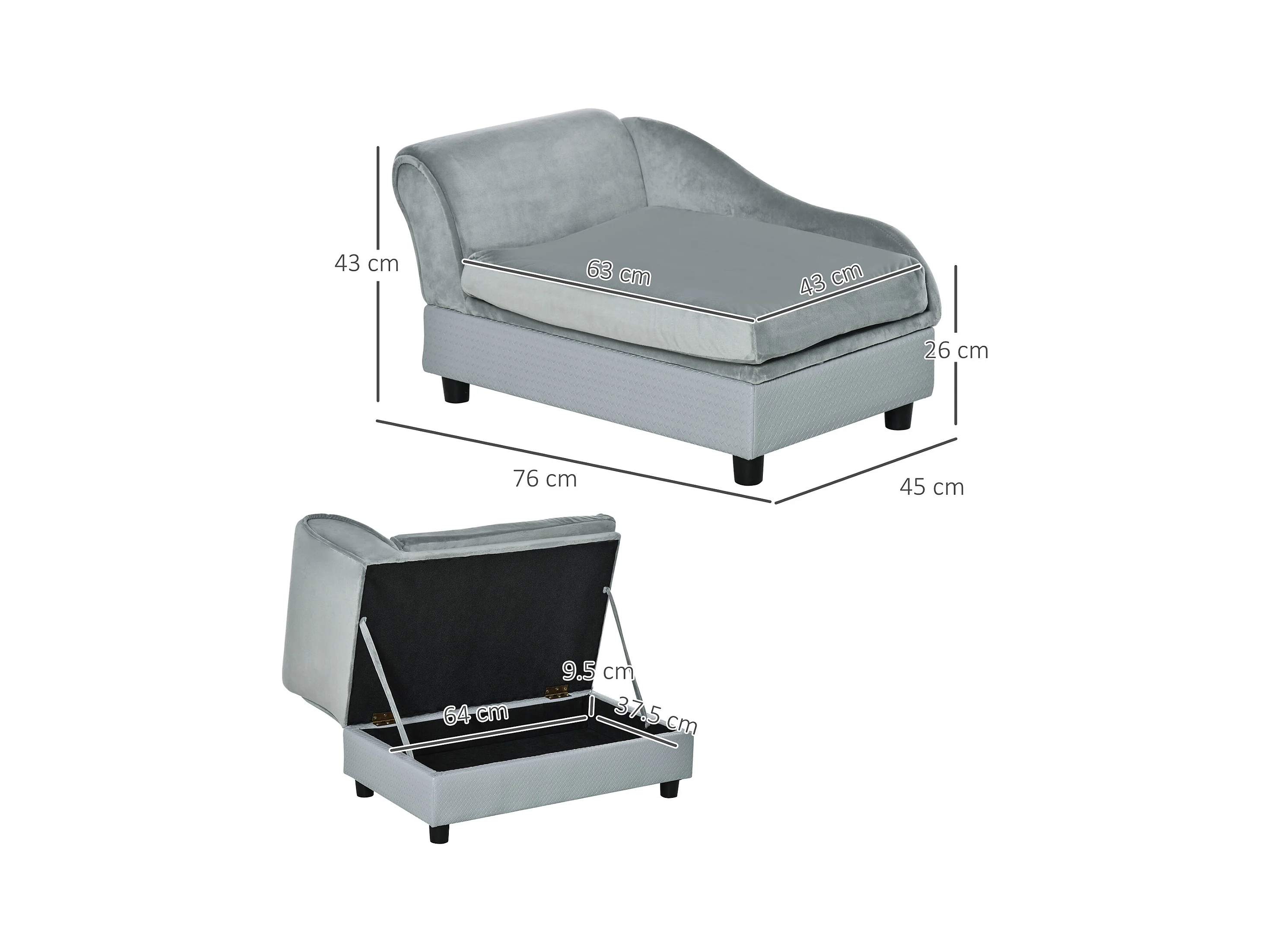 Divano per cani con spazio portaoggetti e cuscino grigio chiaro
