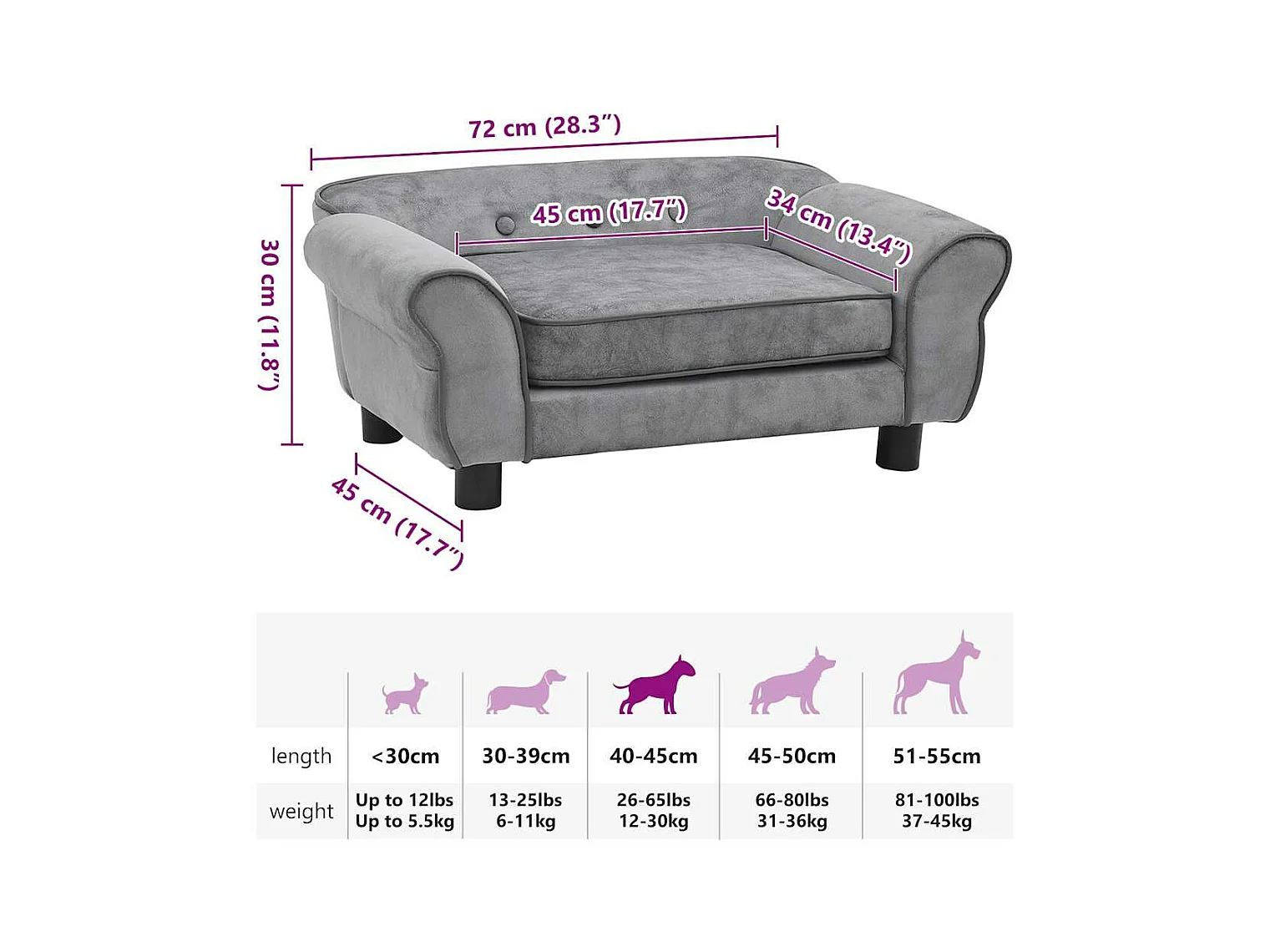 Divano per cani grigio 68x38x38 cm peluche