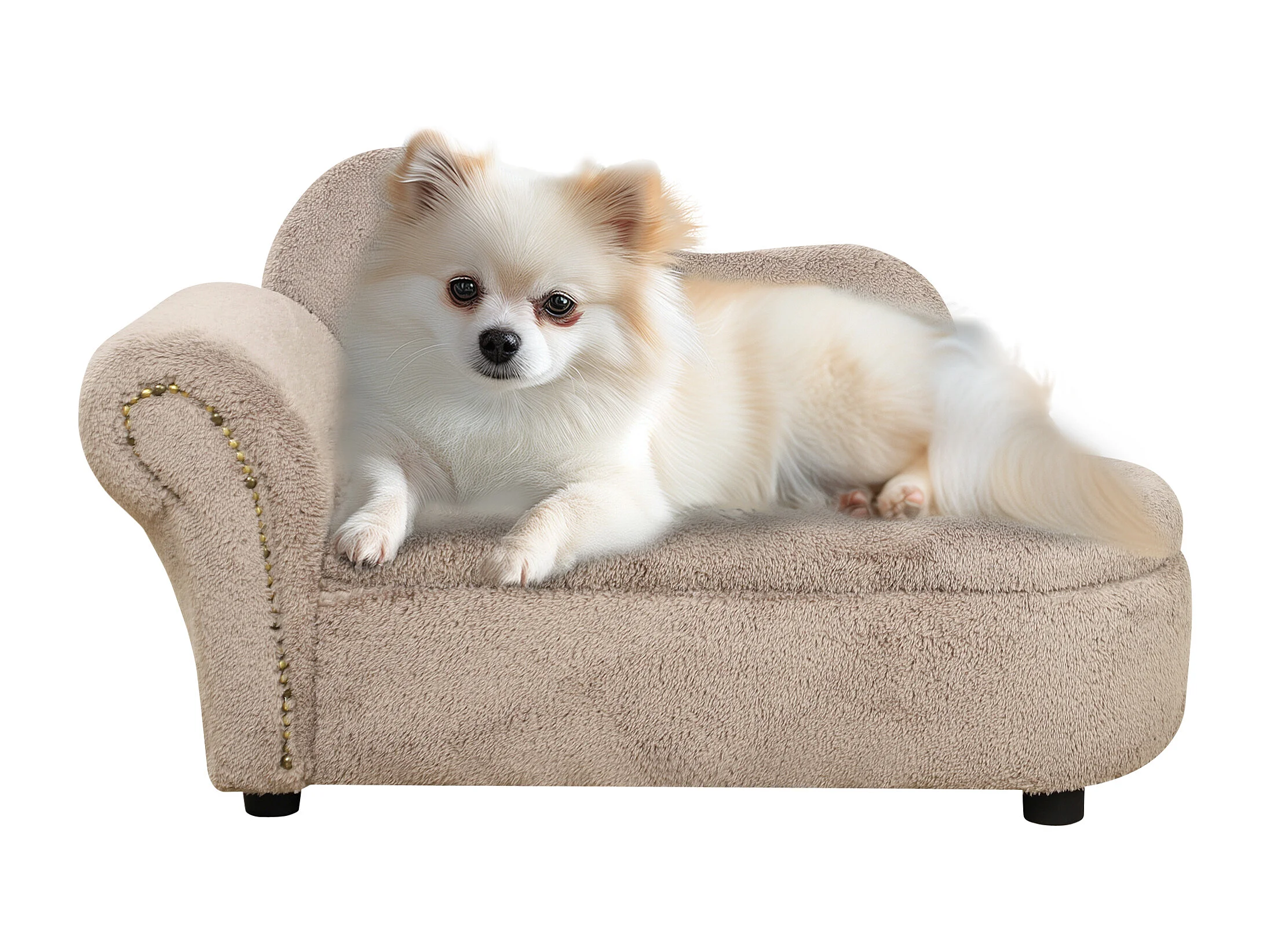Divano per cani e gatti con schienale e cuscino rimovibile crema
