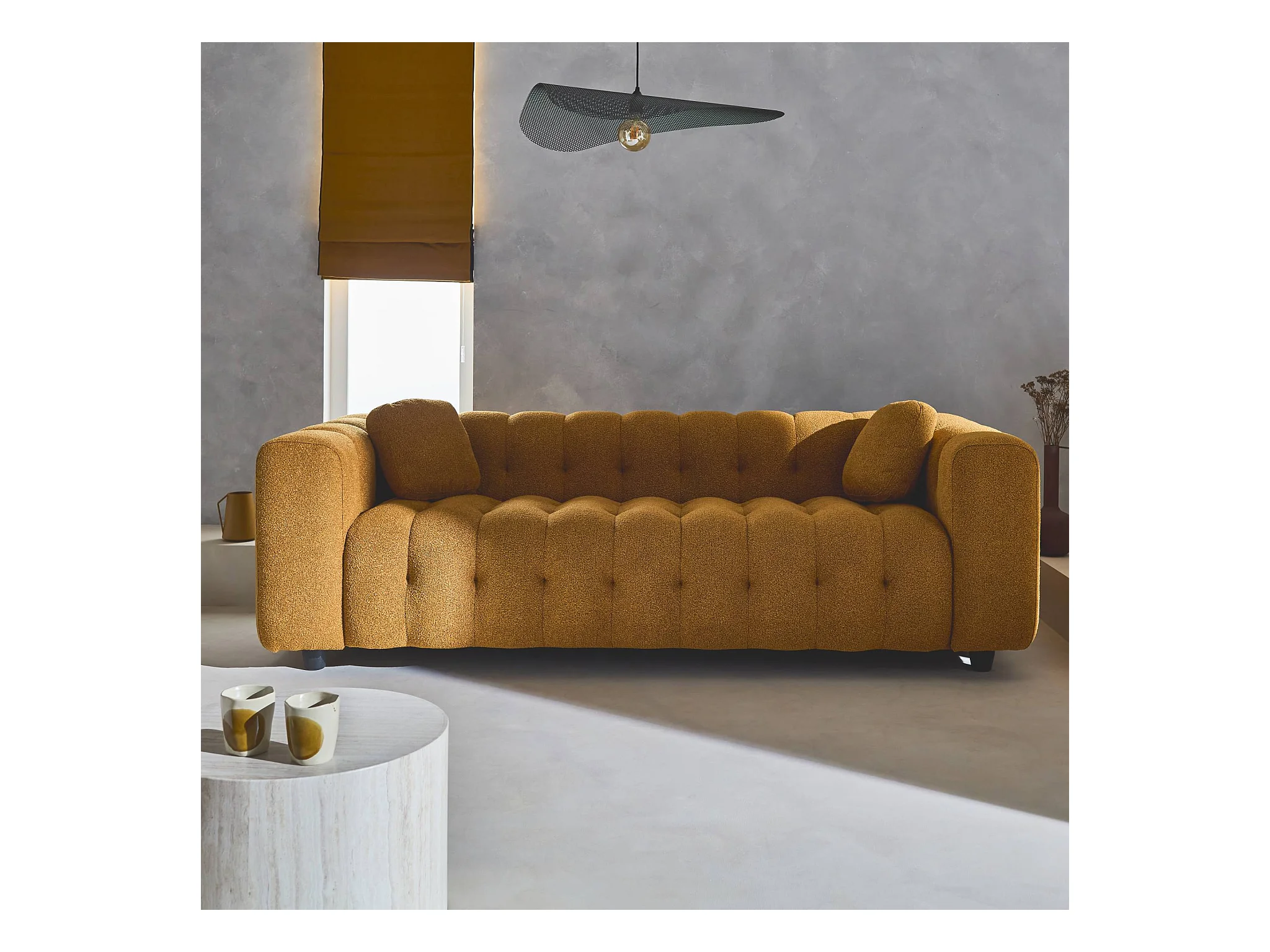 Divano rivestito in tessuto bouclé a 3 posti, mostarda