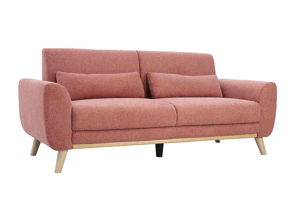 Divano scandinavo a 3 posti in tessuto effetto velluto terracotta e legno chiaro EKTOR