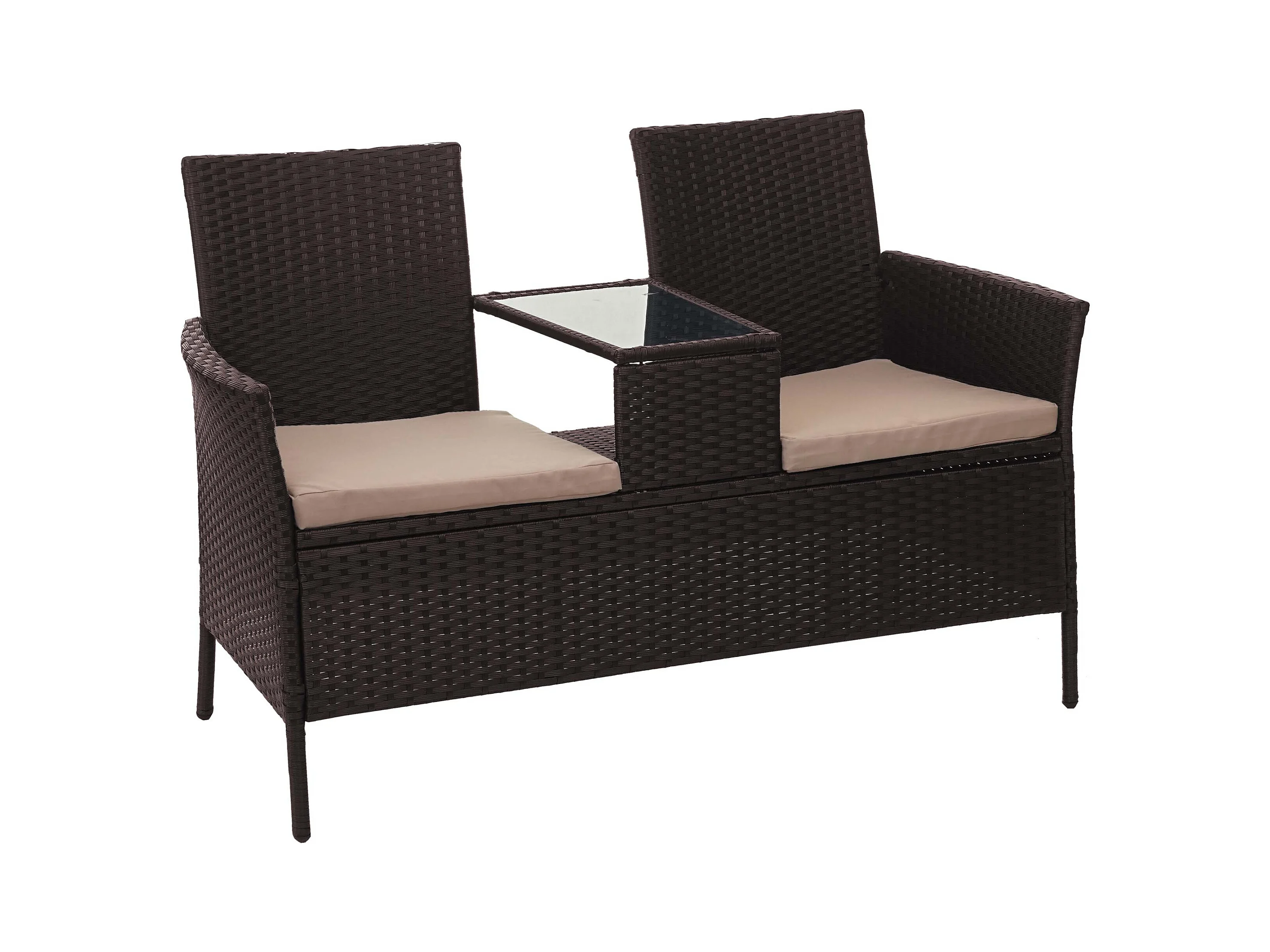 Divano sofa per l'esterno doppia seduta portavivande MCW-E24 polyrattan marrone cuscini avorio