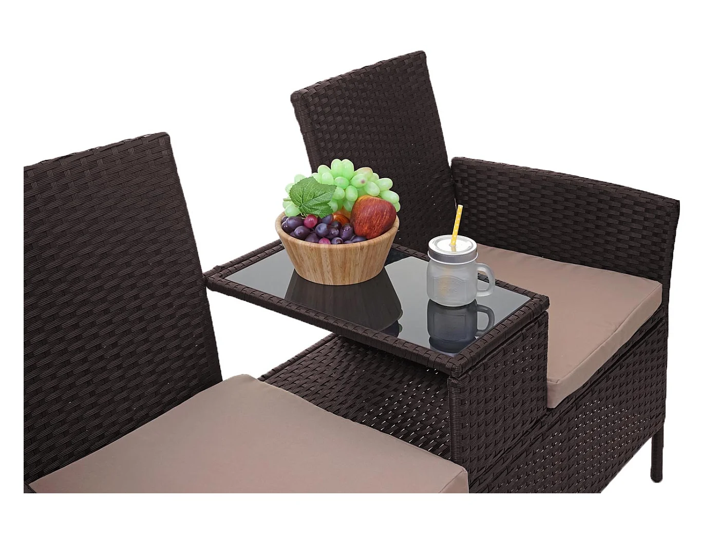 Panca da Giardino a 2 Posti con Cuscini in Polyrattan Marrone