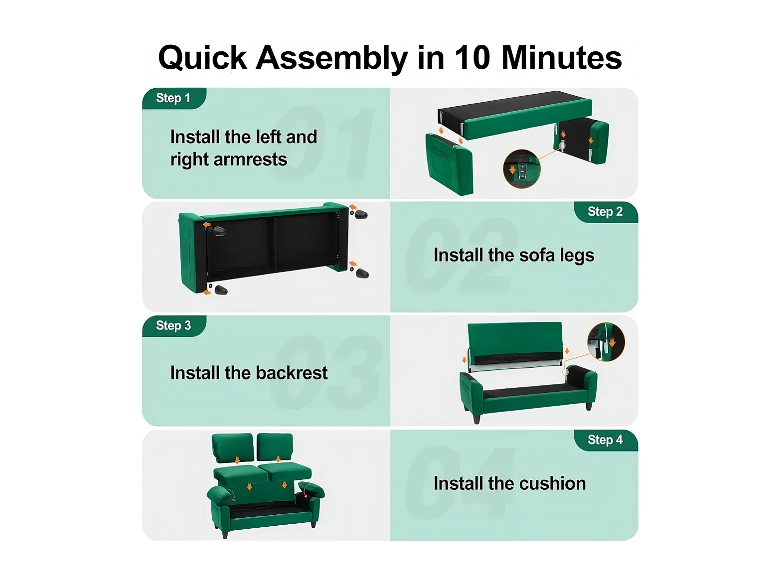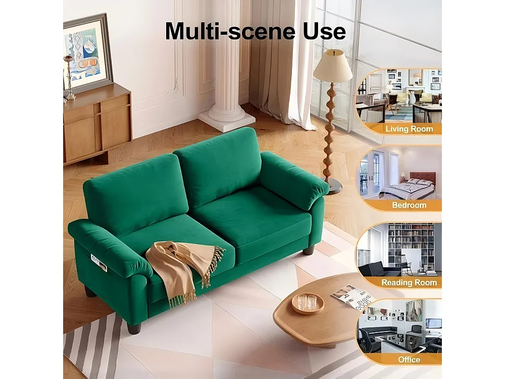 Divano soggiorno 2 Place in tessuto, divano moderno a metà del secolo, con sacchetto di stoccaggio, 178x75x87cm, verde