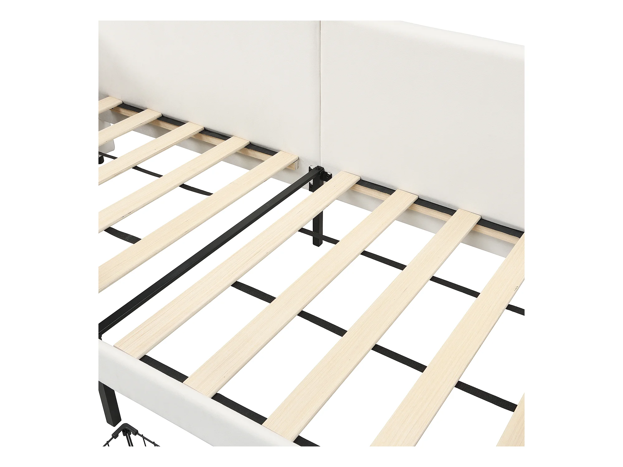 Lit enfant 90x200 cm velours blanc avec tiroirs, rangement latéral et cadre métal