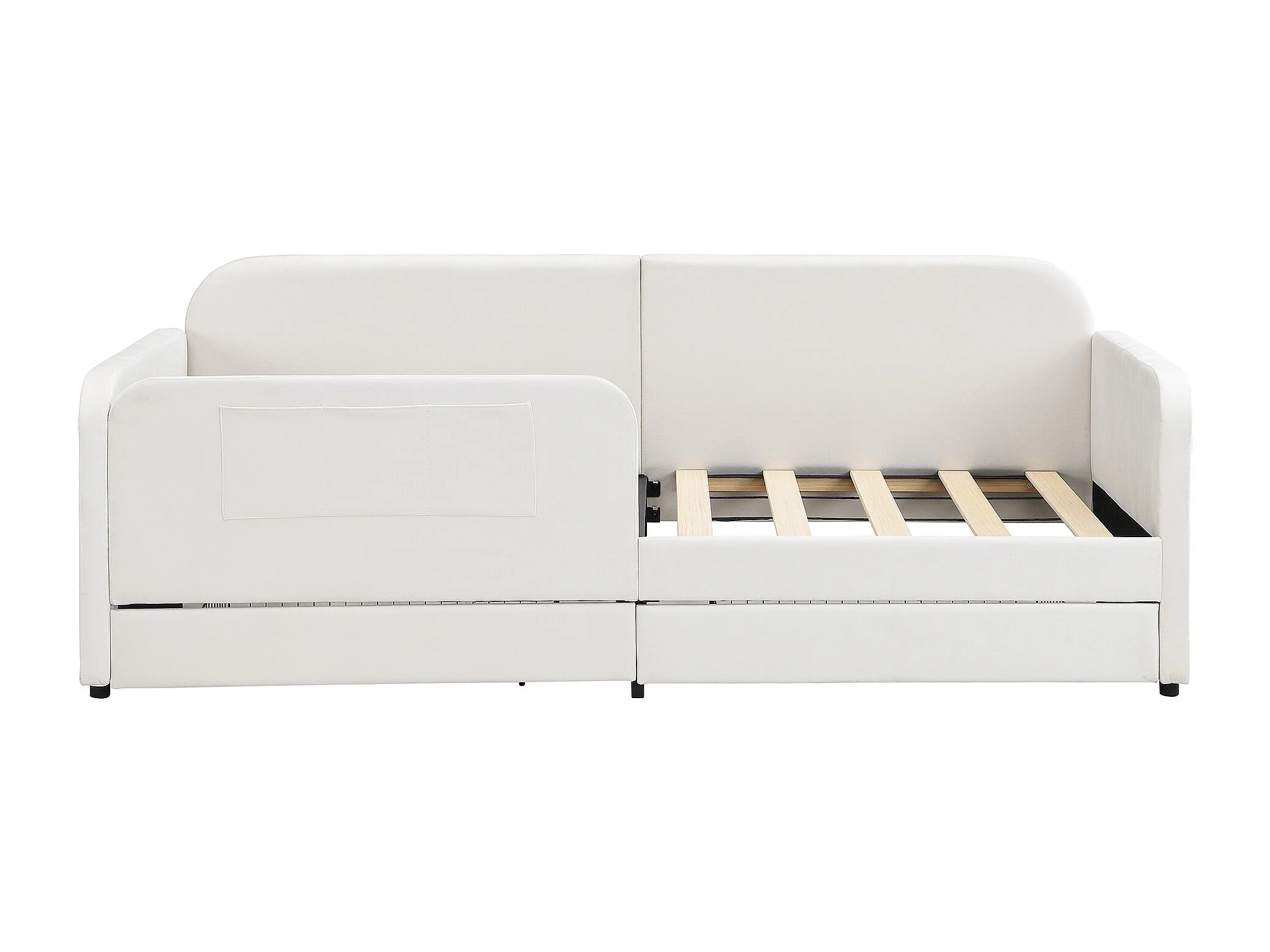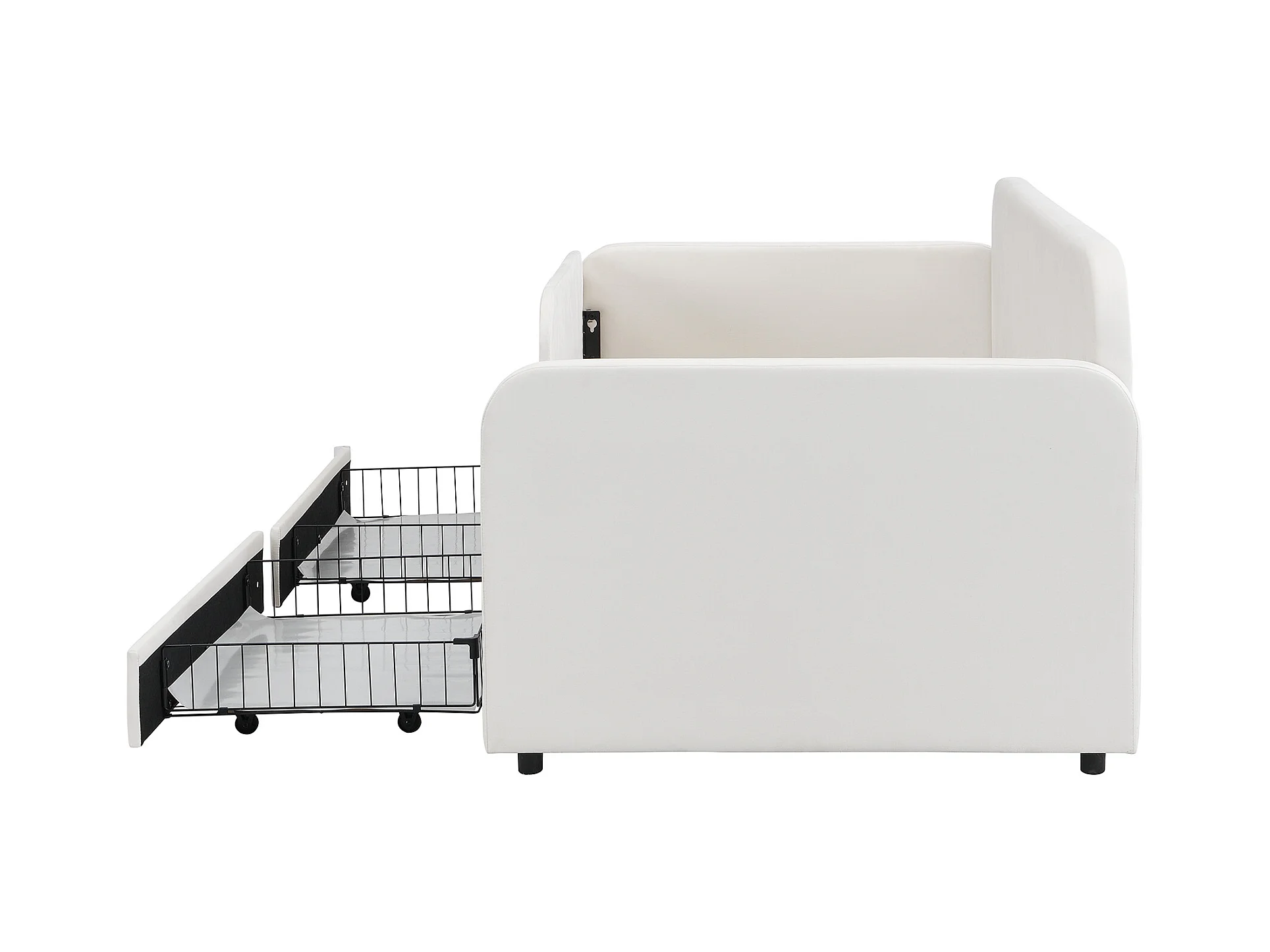 Divano trasformabile 90x200 cm - Letto per bambini con 3 vani contenitore e 2 cassetti - struttura letto in metallo - velluto bianco