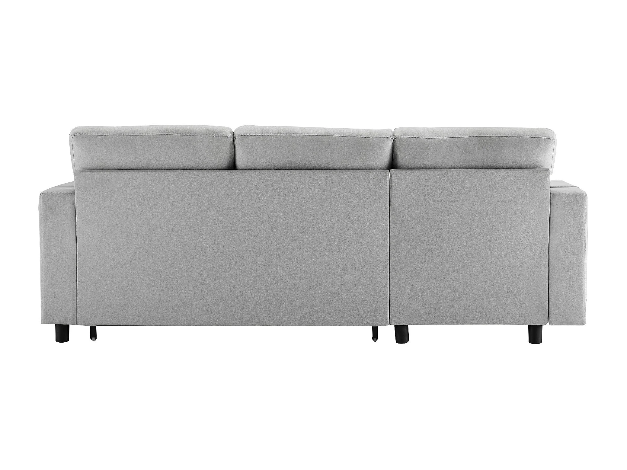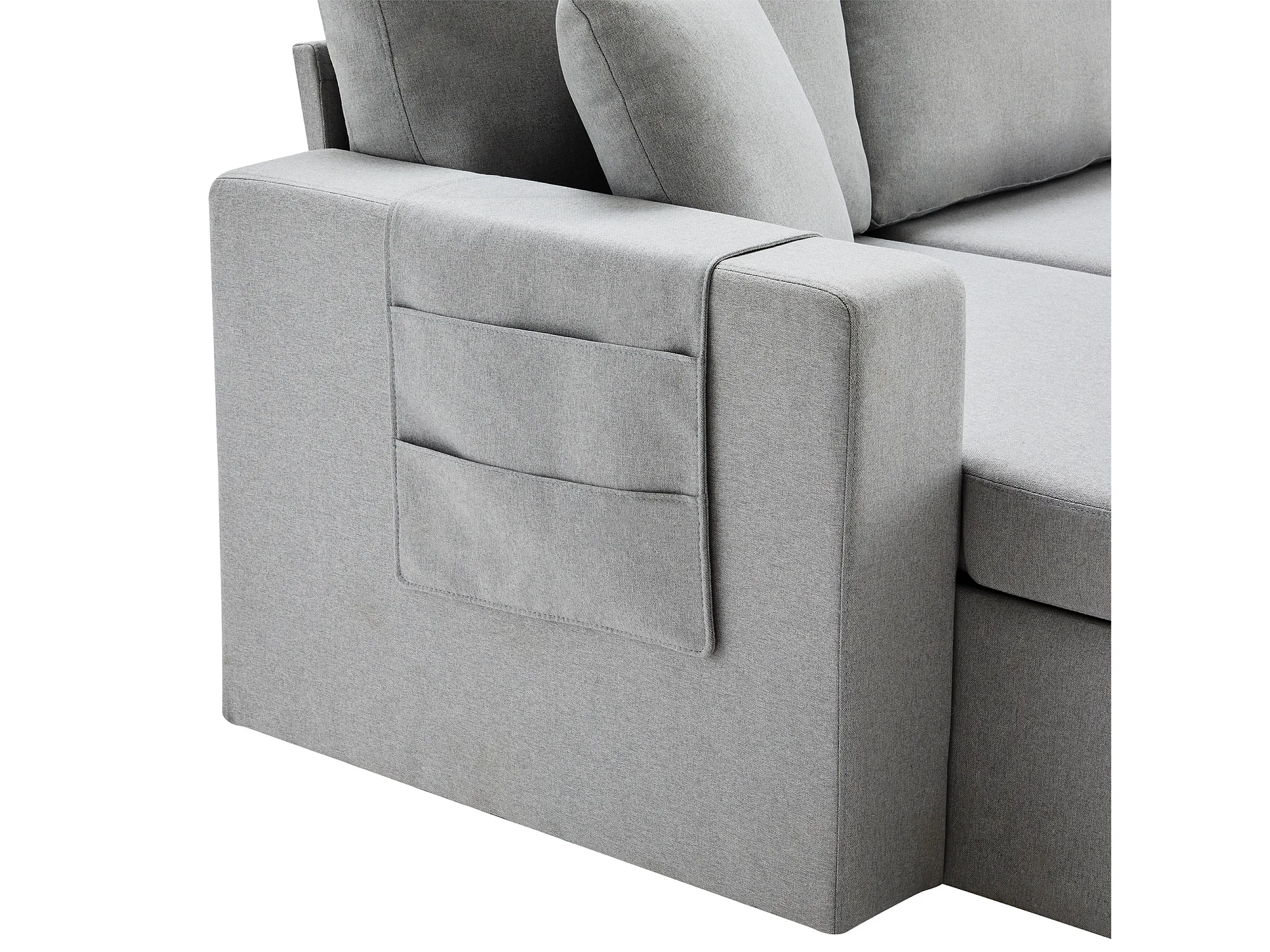 Divano trasformabile a L a 3 posti con funzione letto - Chaise longue con contenitore - Lino grigio