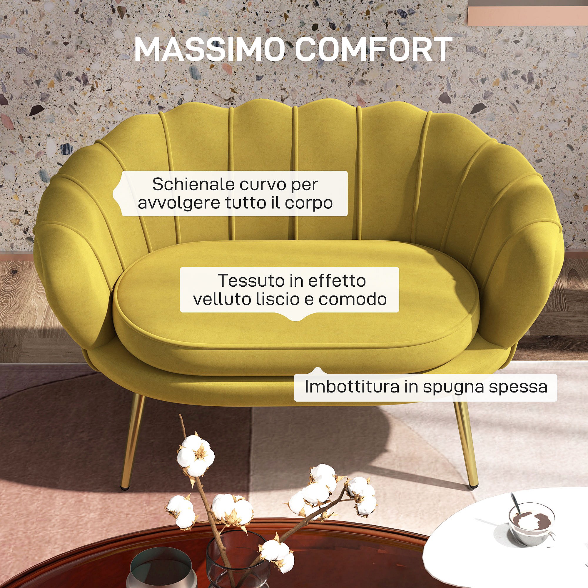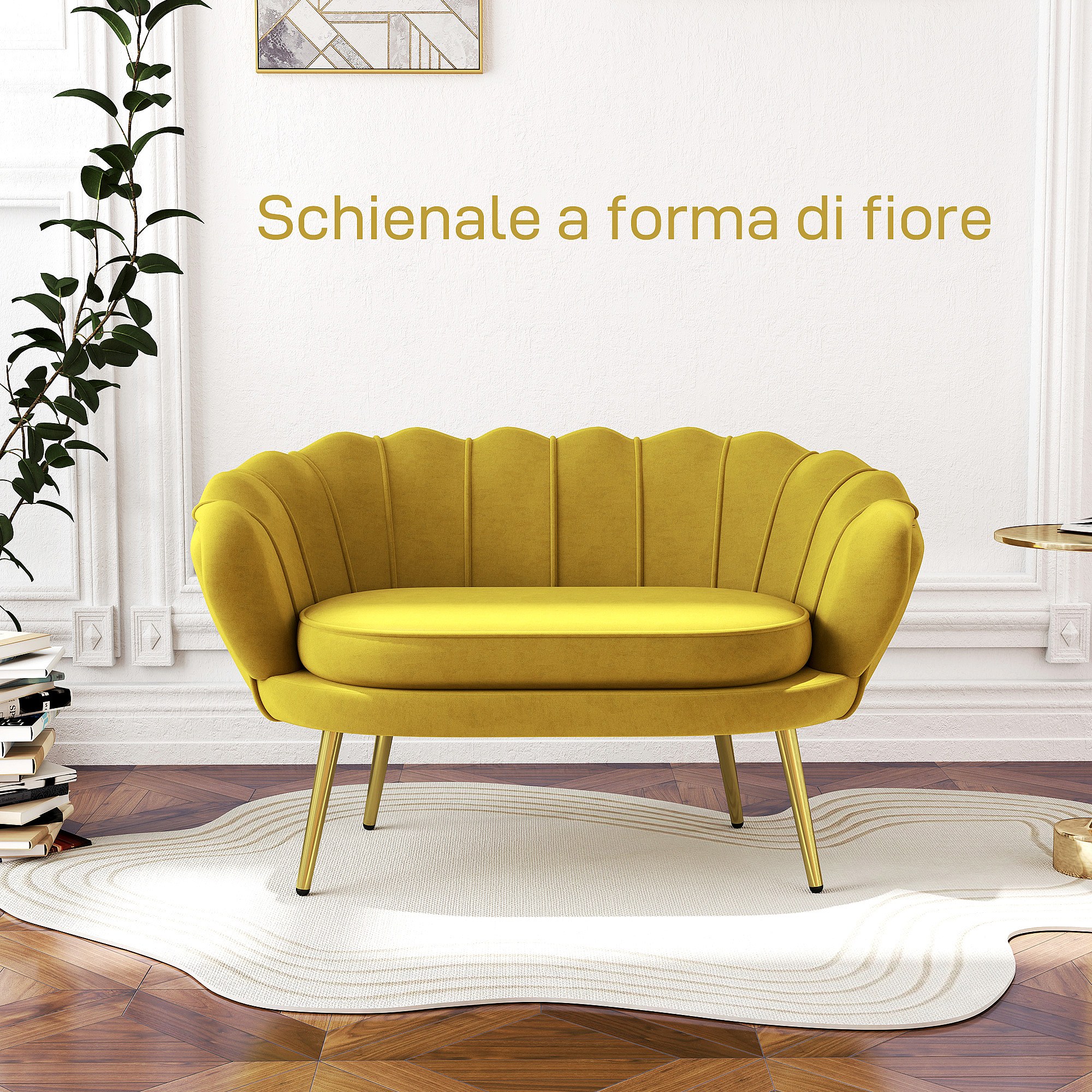 Divano vintage 2 posti stile industrial chic effetto velluto giallo