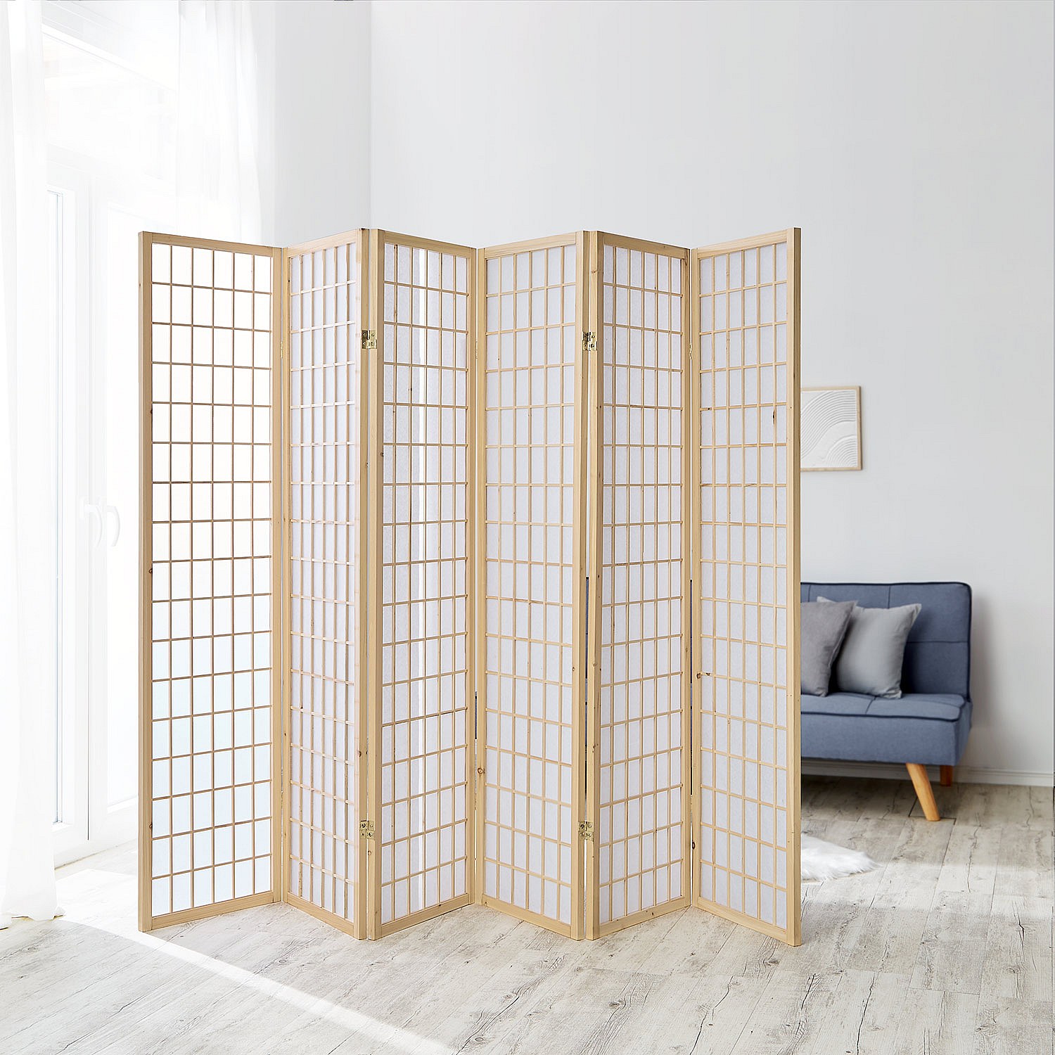Parete divisoria 6 pannelli marroni in legno massello di paulownia