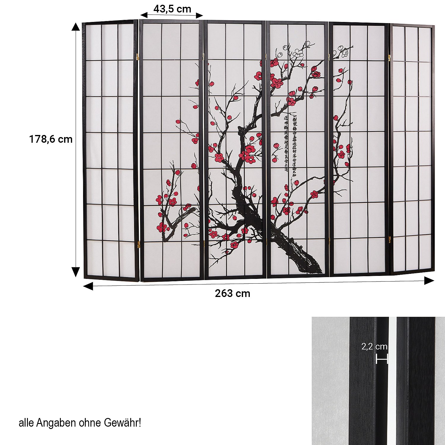 Parete Divisoria SucceBuy, Parete Divisoria Giapponese a 6 Pannelli con Motivo Fiori di Ciliegio, Portatile, in Legno, Ruotabile a 360°, per Separare gli Ambienti