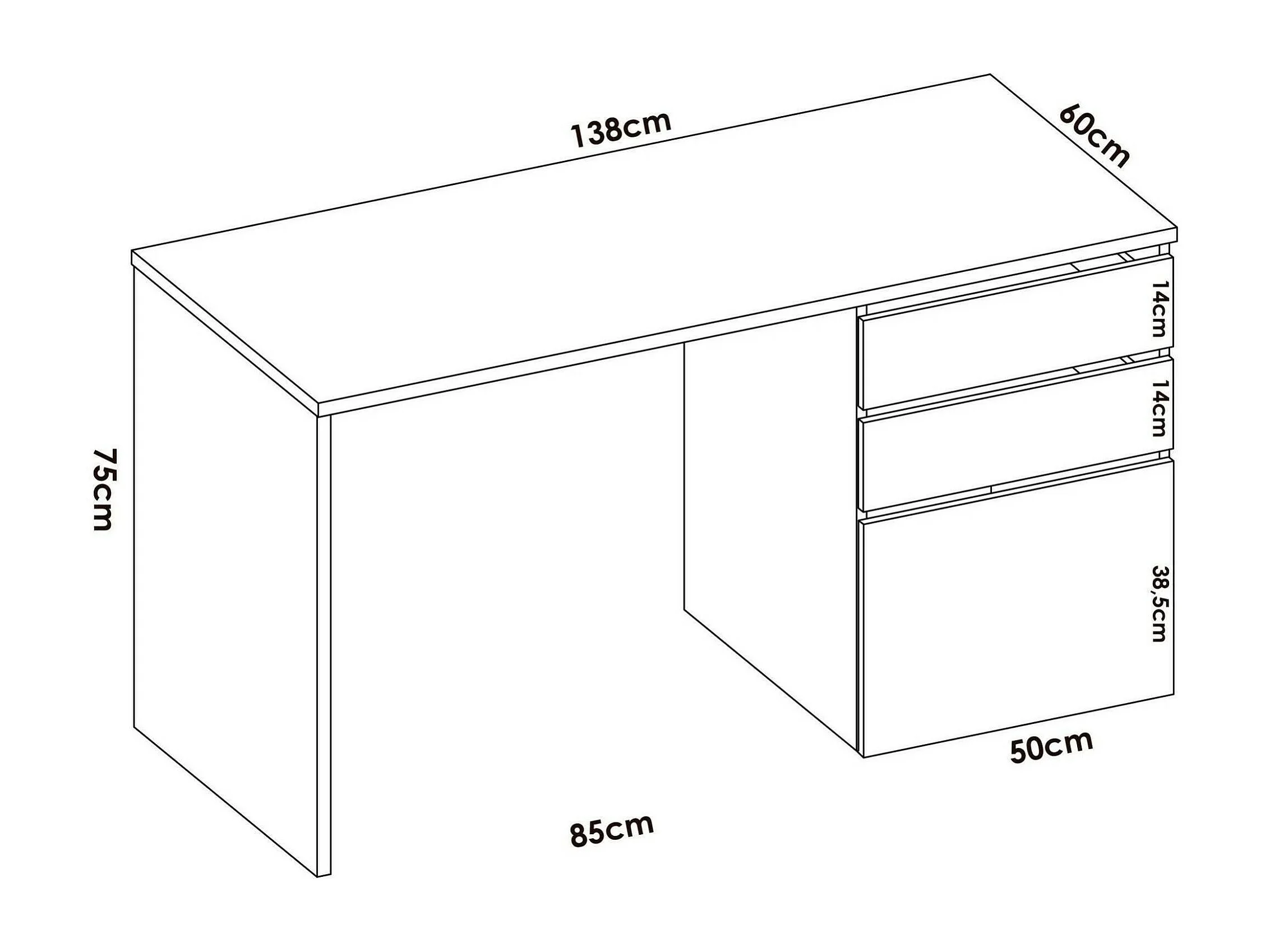 Dmora Scrivania Lagoni 60x139x75h cm Bianco Lucido 2 Cassetti Modulabile, Un'anta