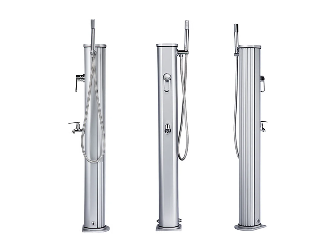 Doccia solare da esterno Jolly Go Formidra 20L 24x26x120cm Alluminio - Soffione estraibile, miscelatore e risciacquo a pedale 24x26x120cm