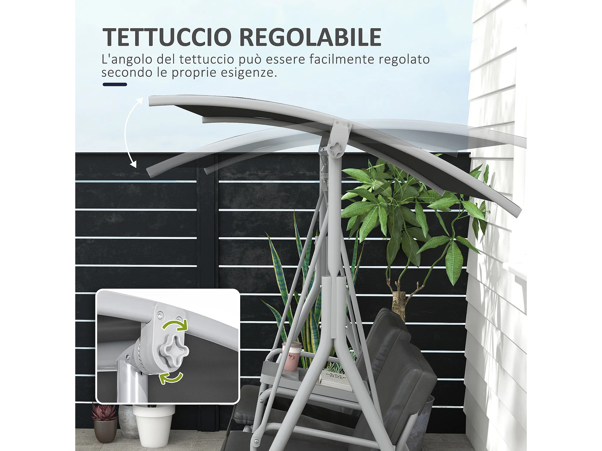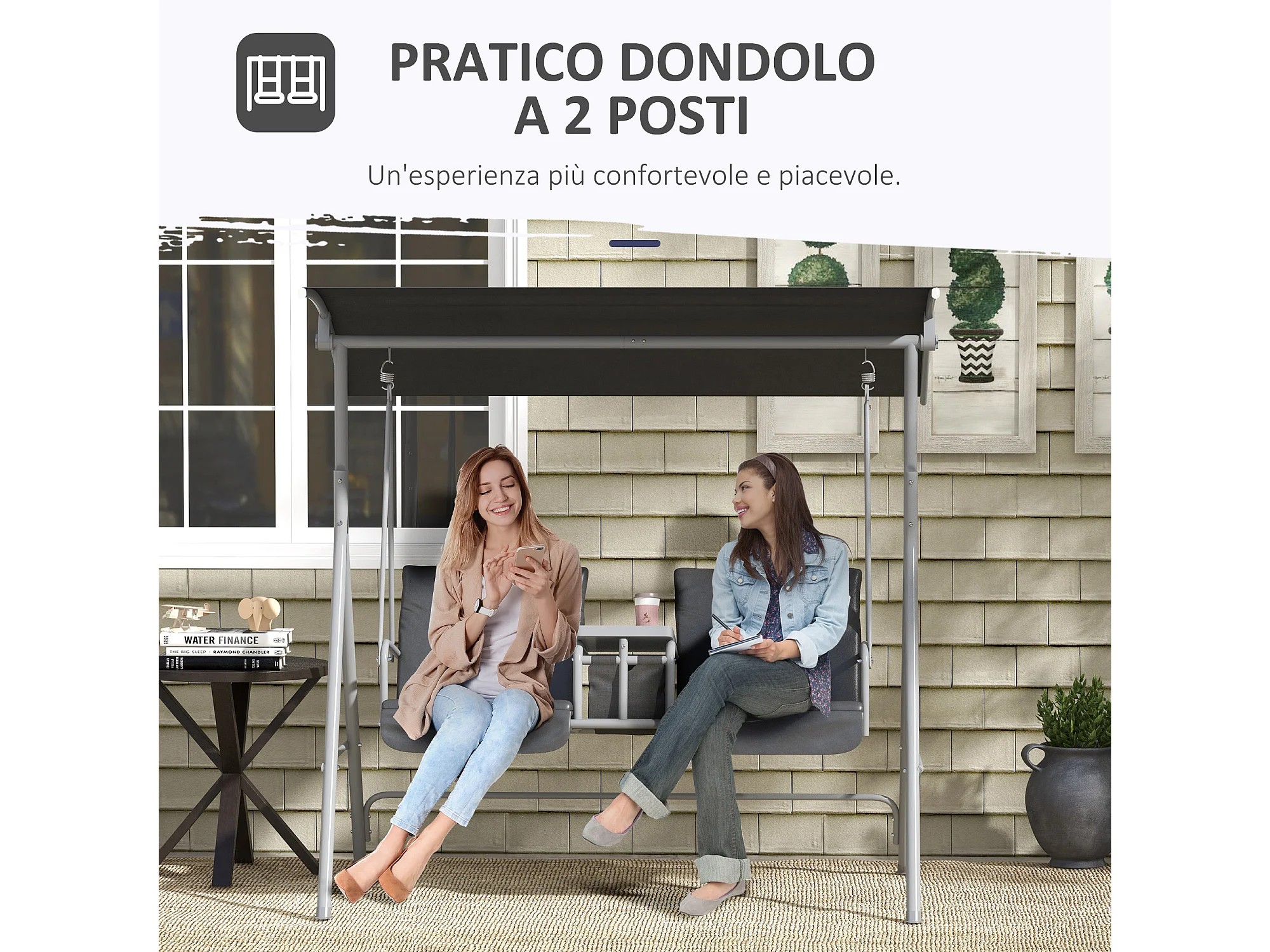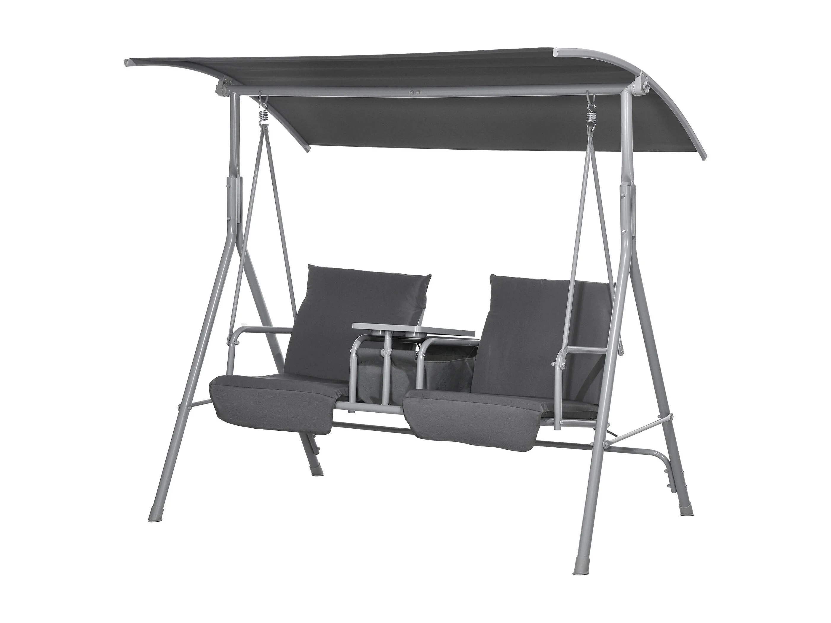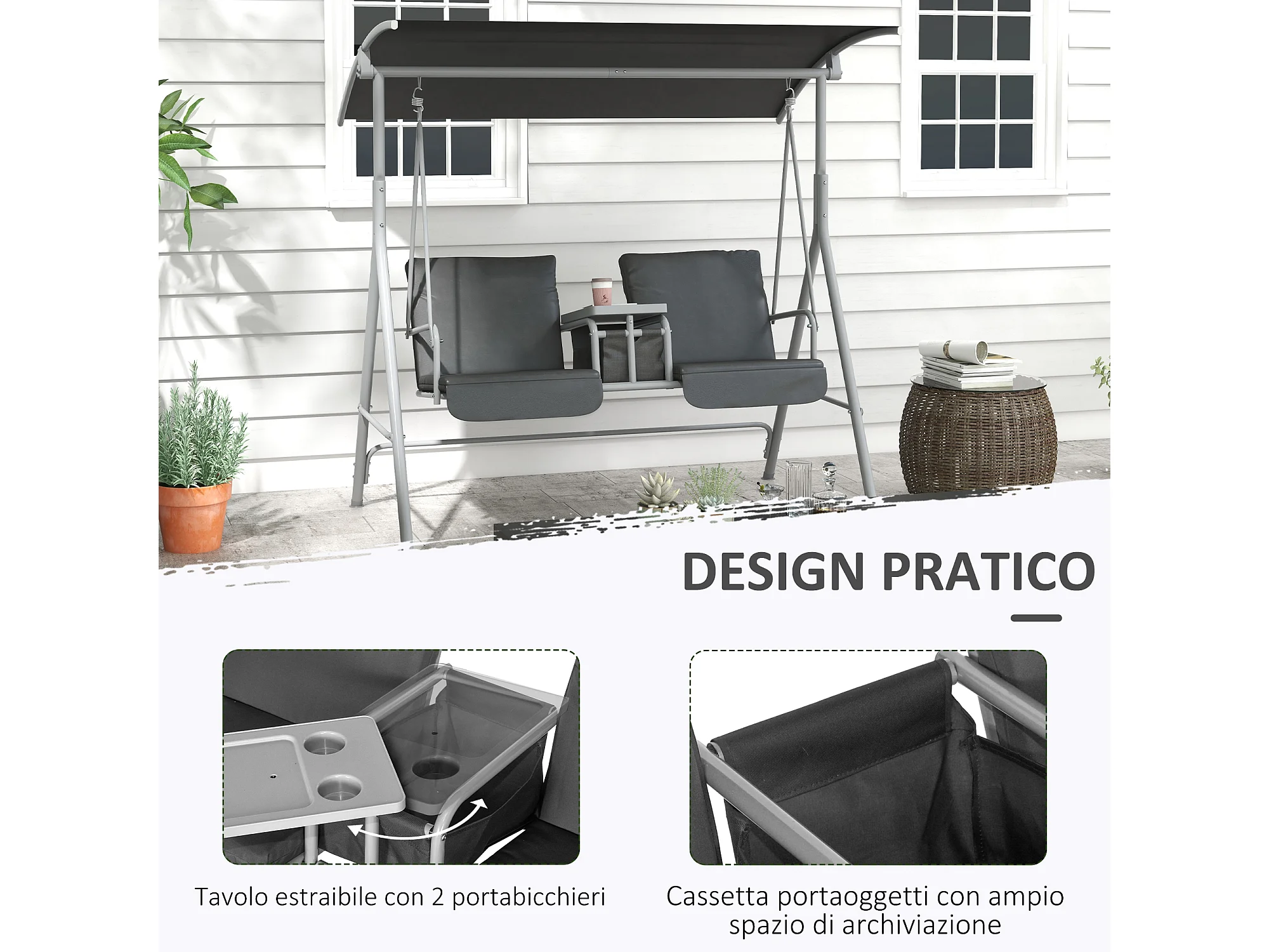 Dondolo 2 posti con tavolino e porta bicchieri in metallo e poliestere