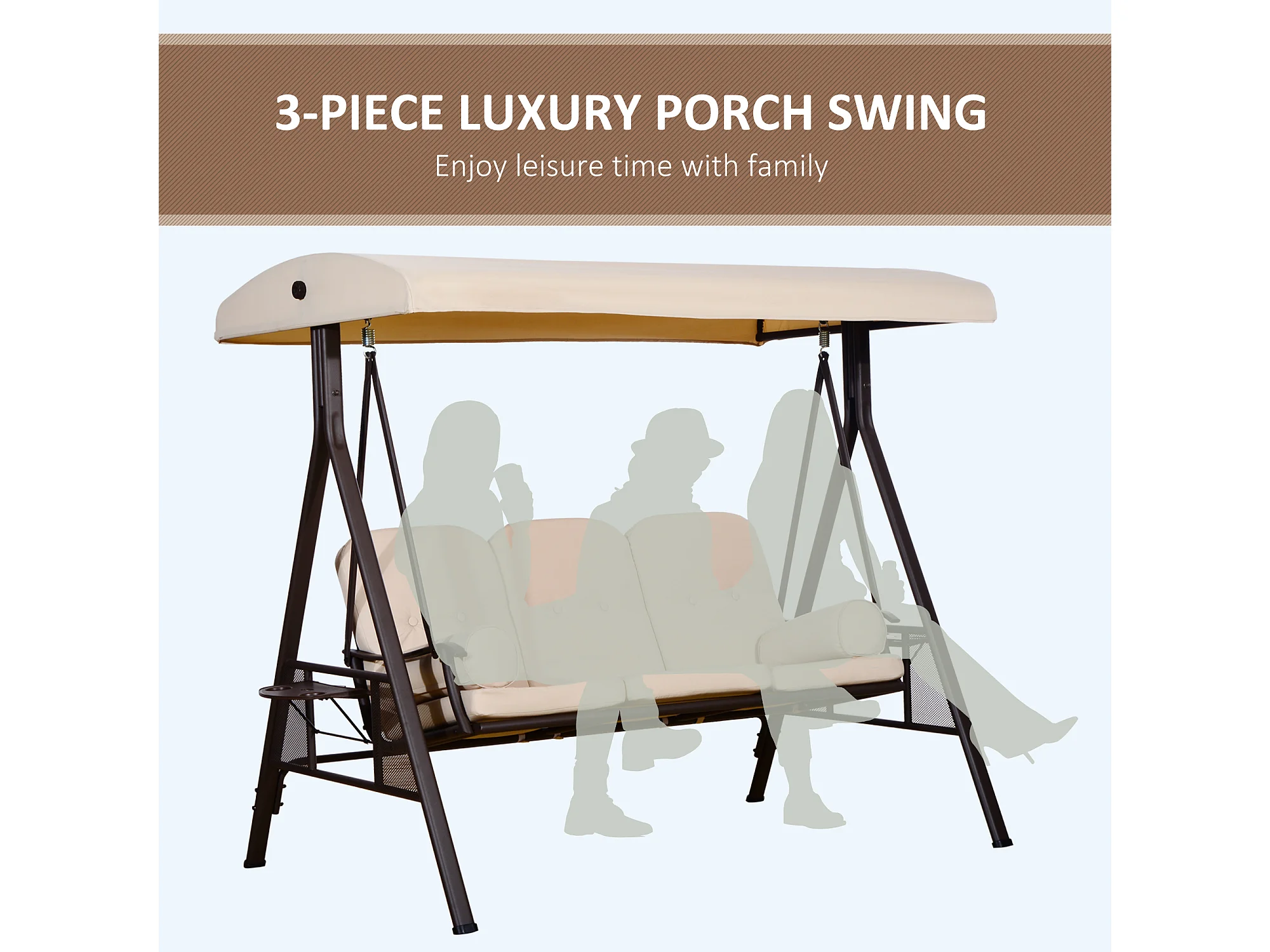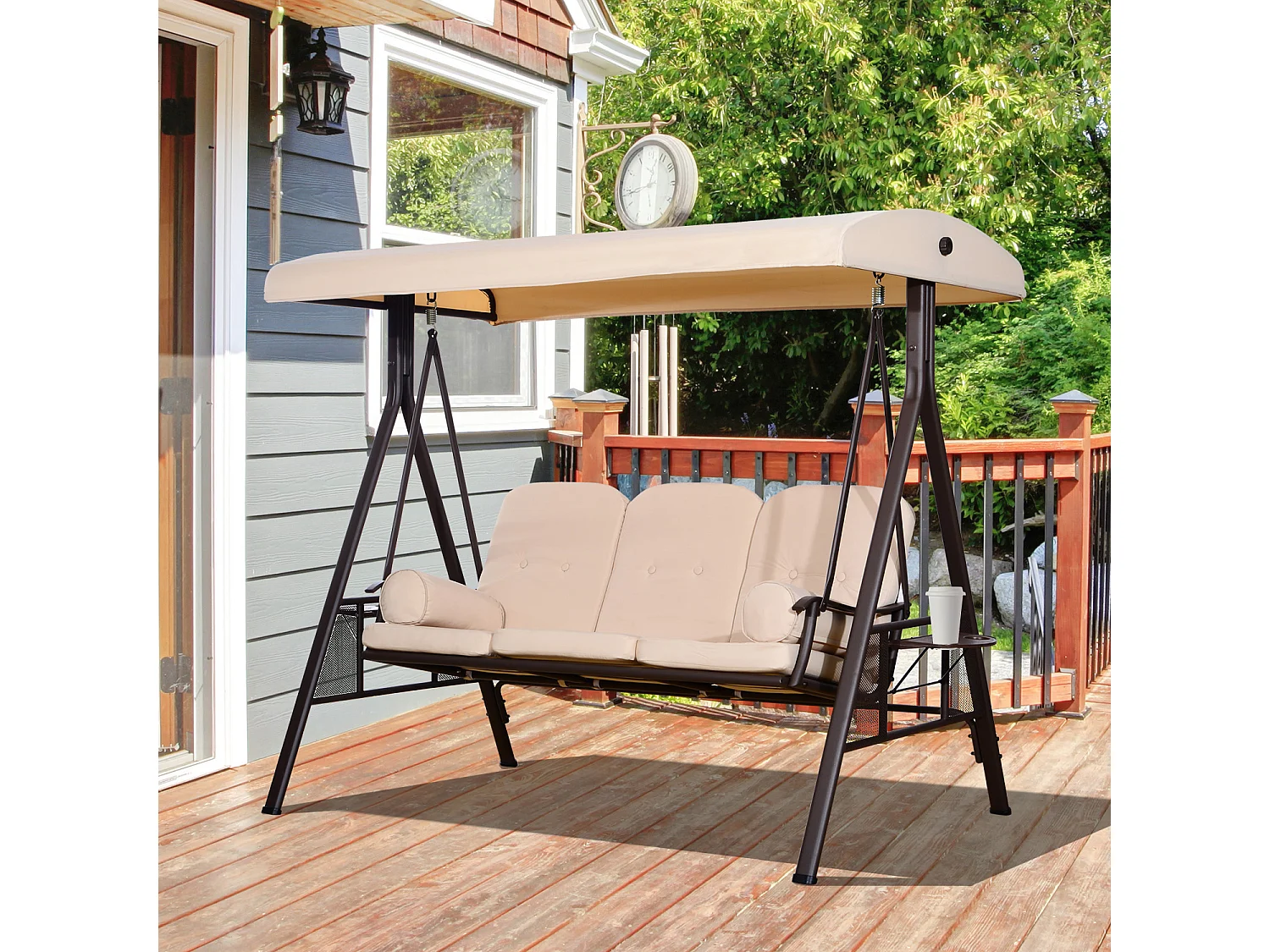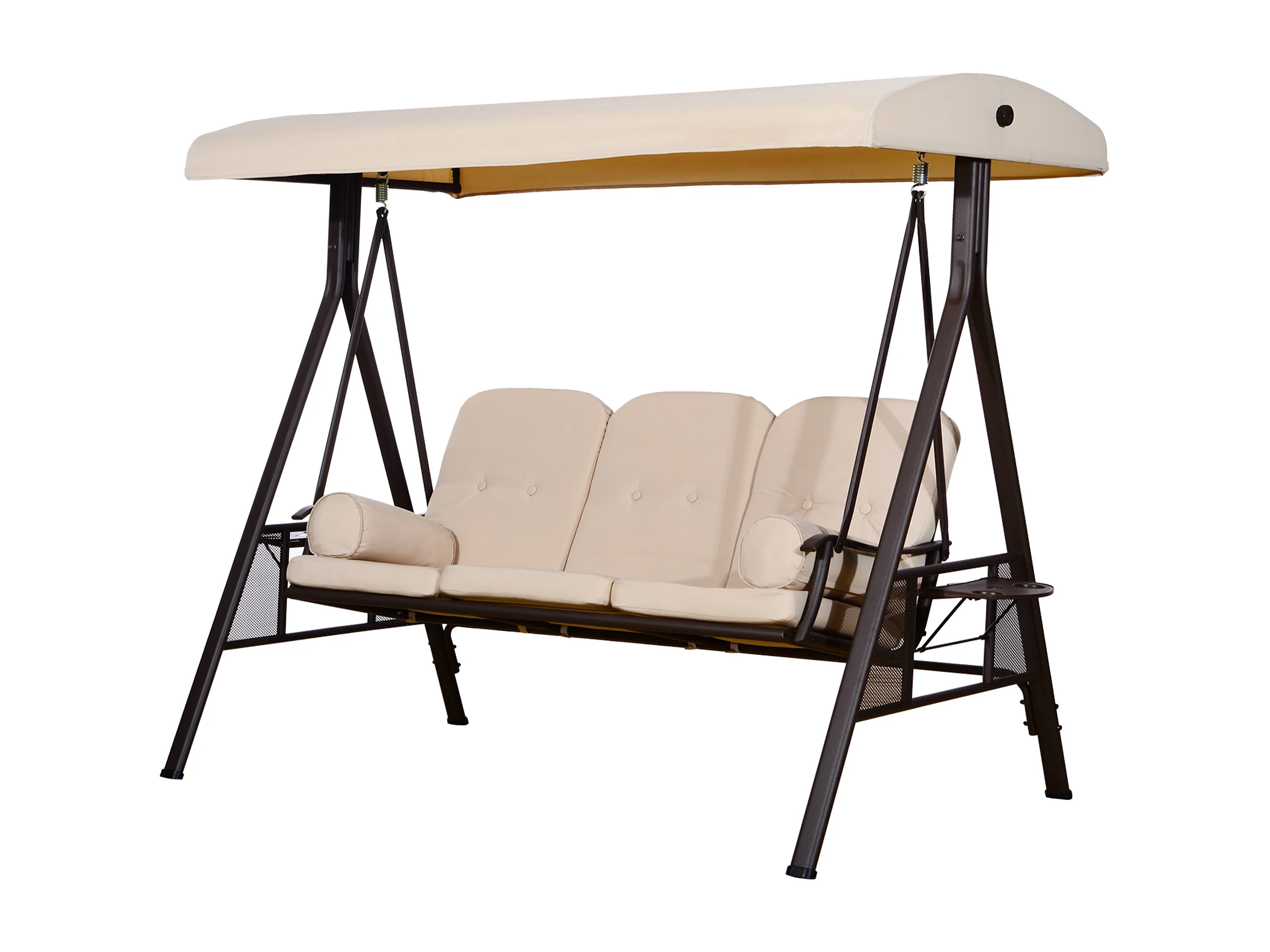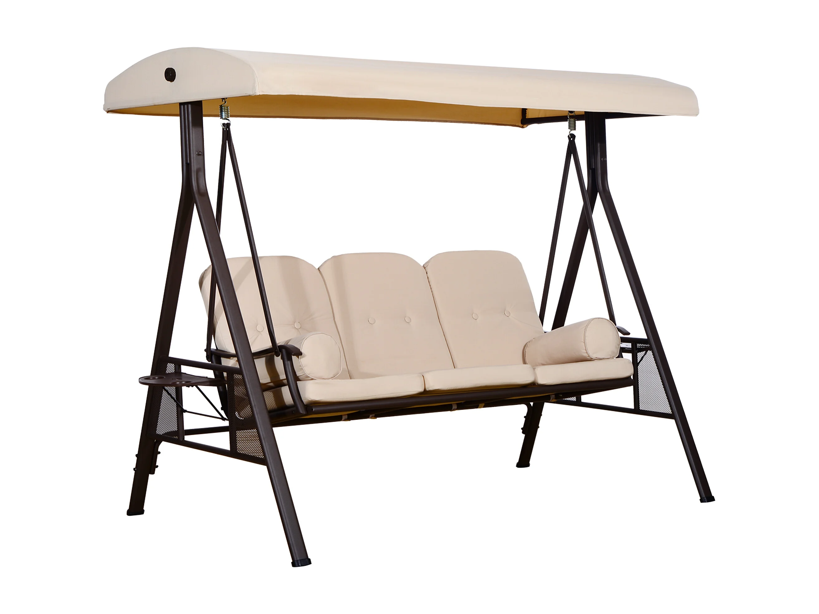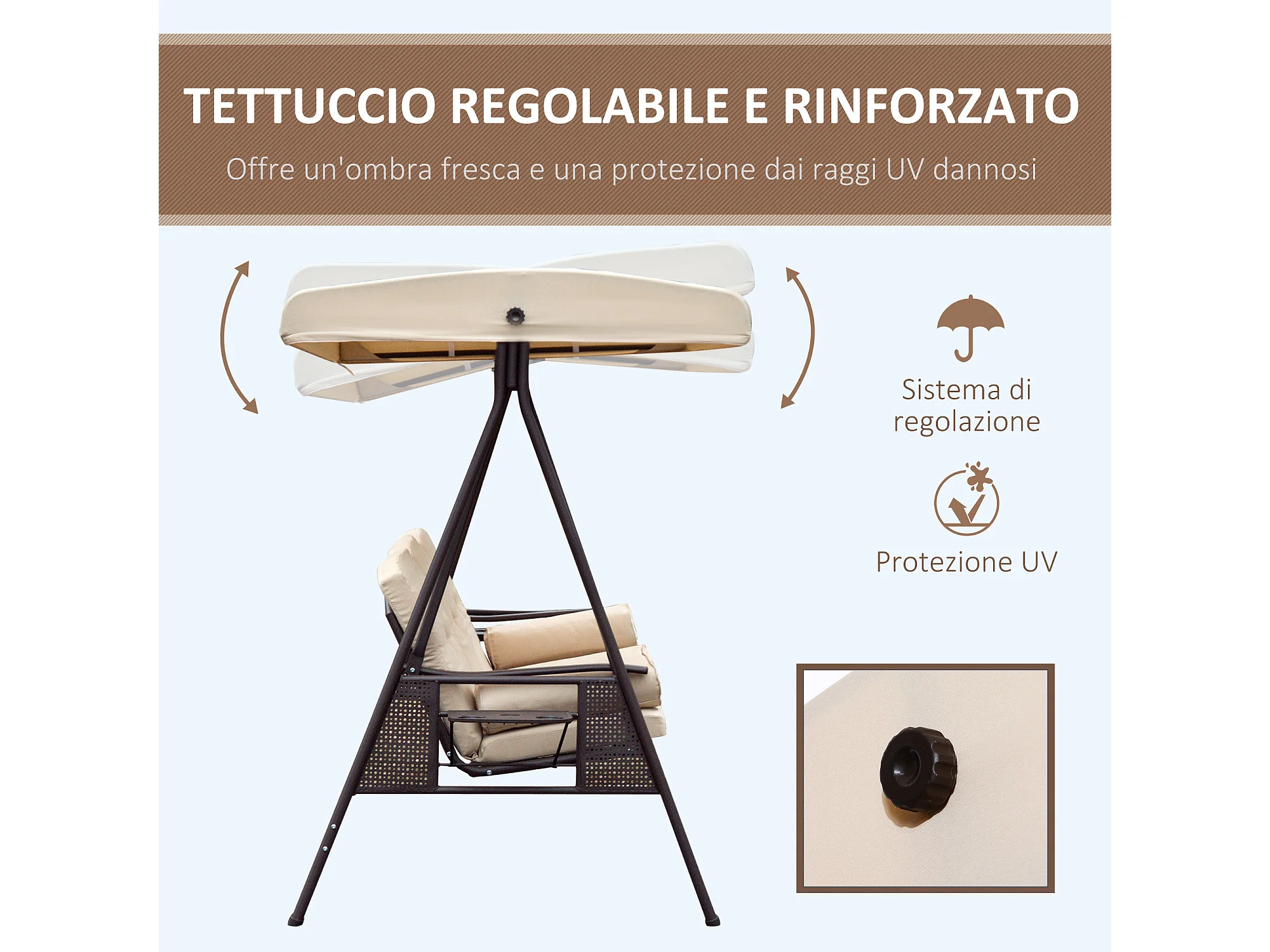 Dondolo 3 posti con tetto regolabile, portabicchieri e cuscini beige