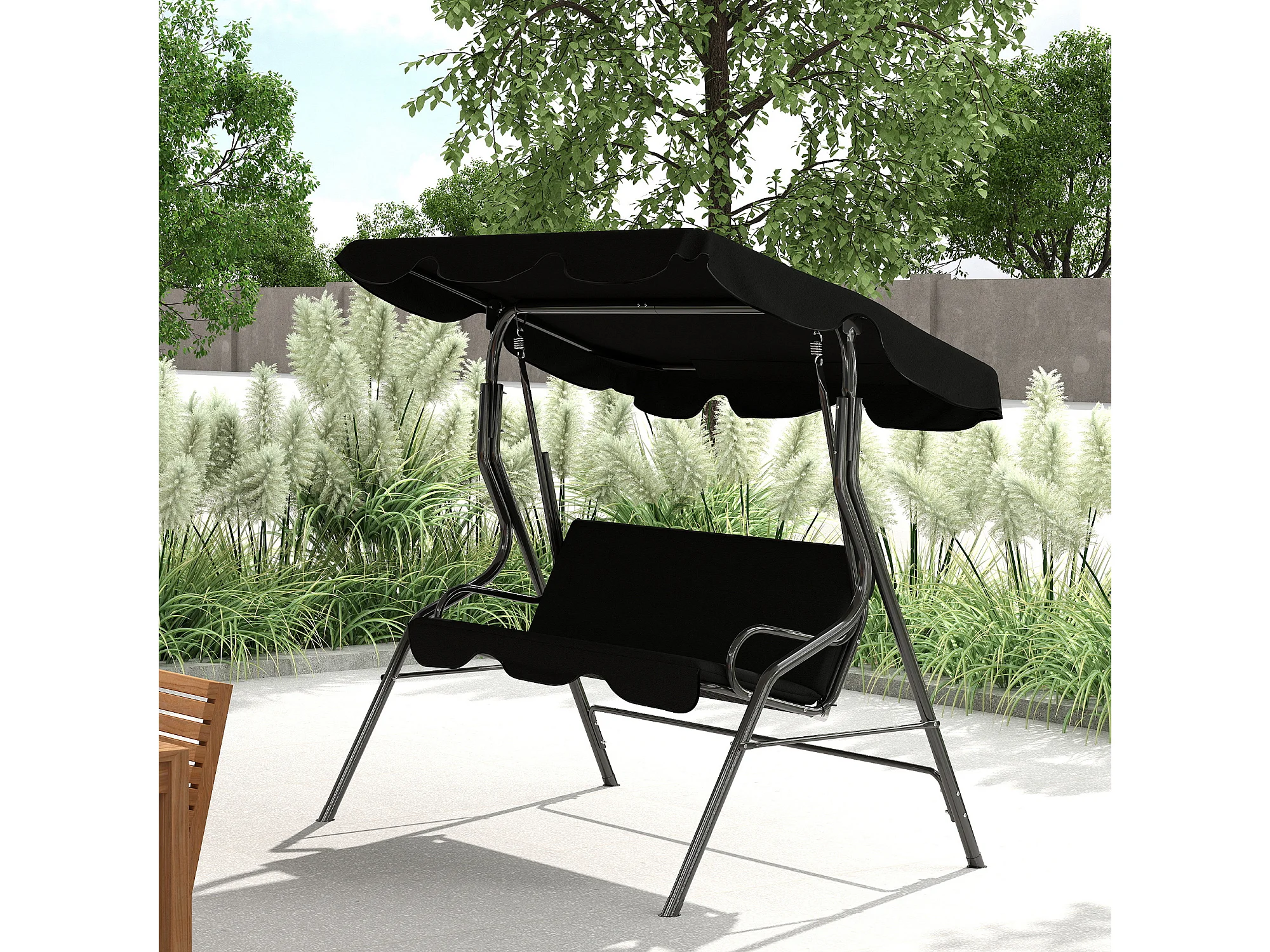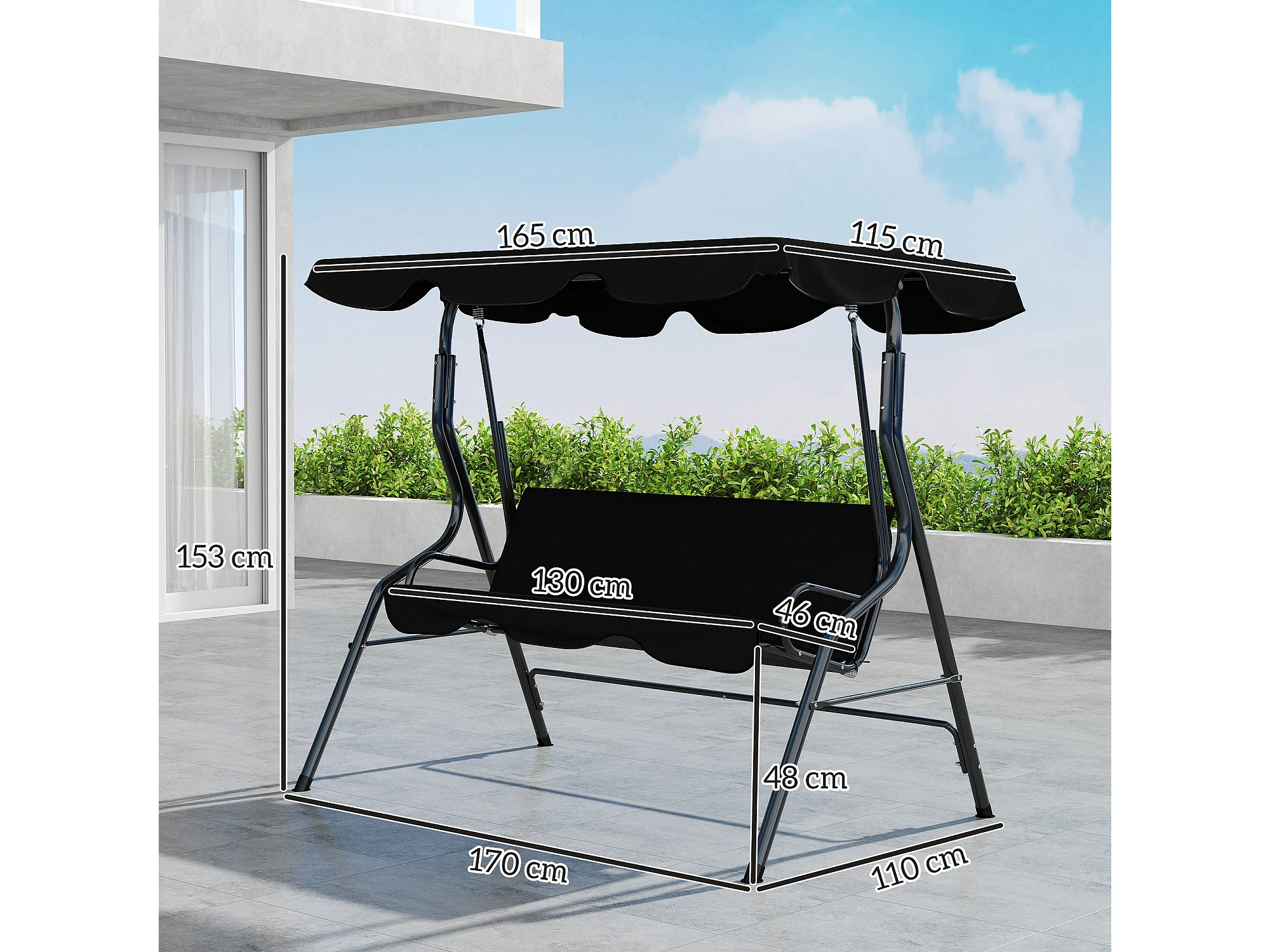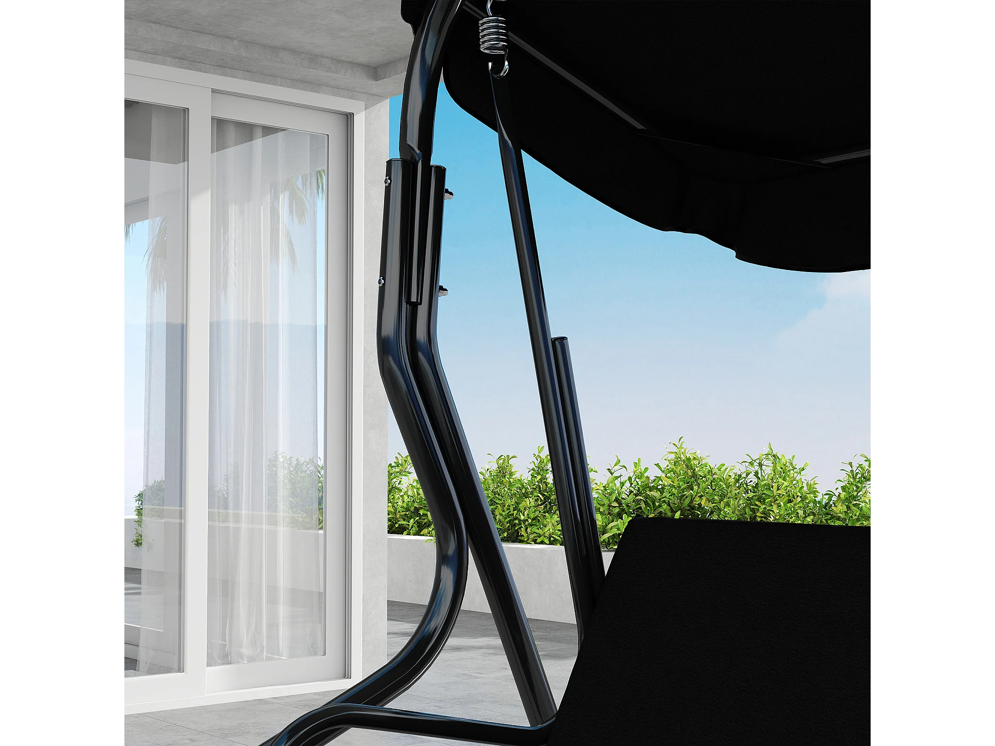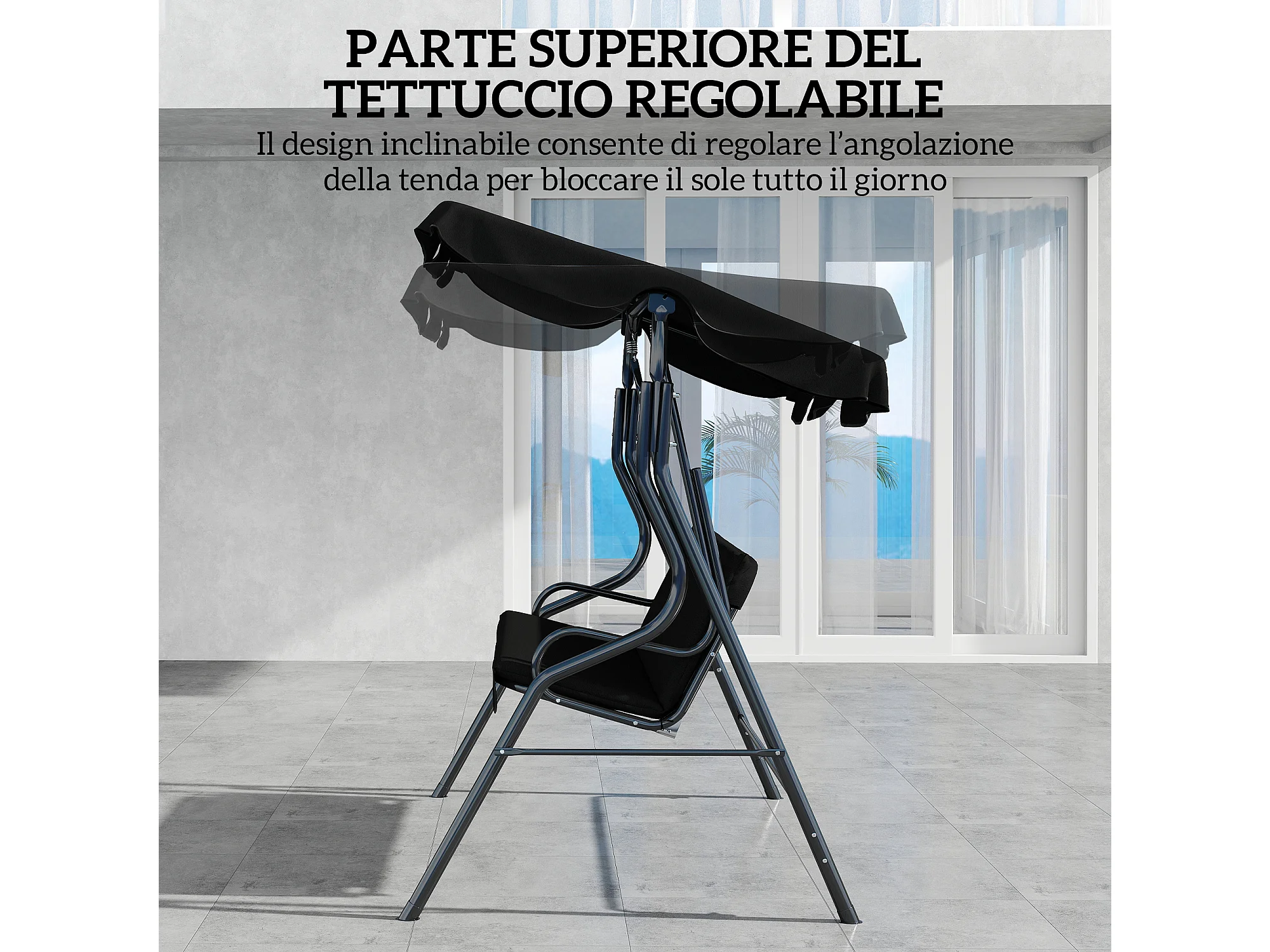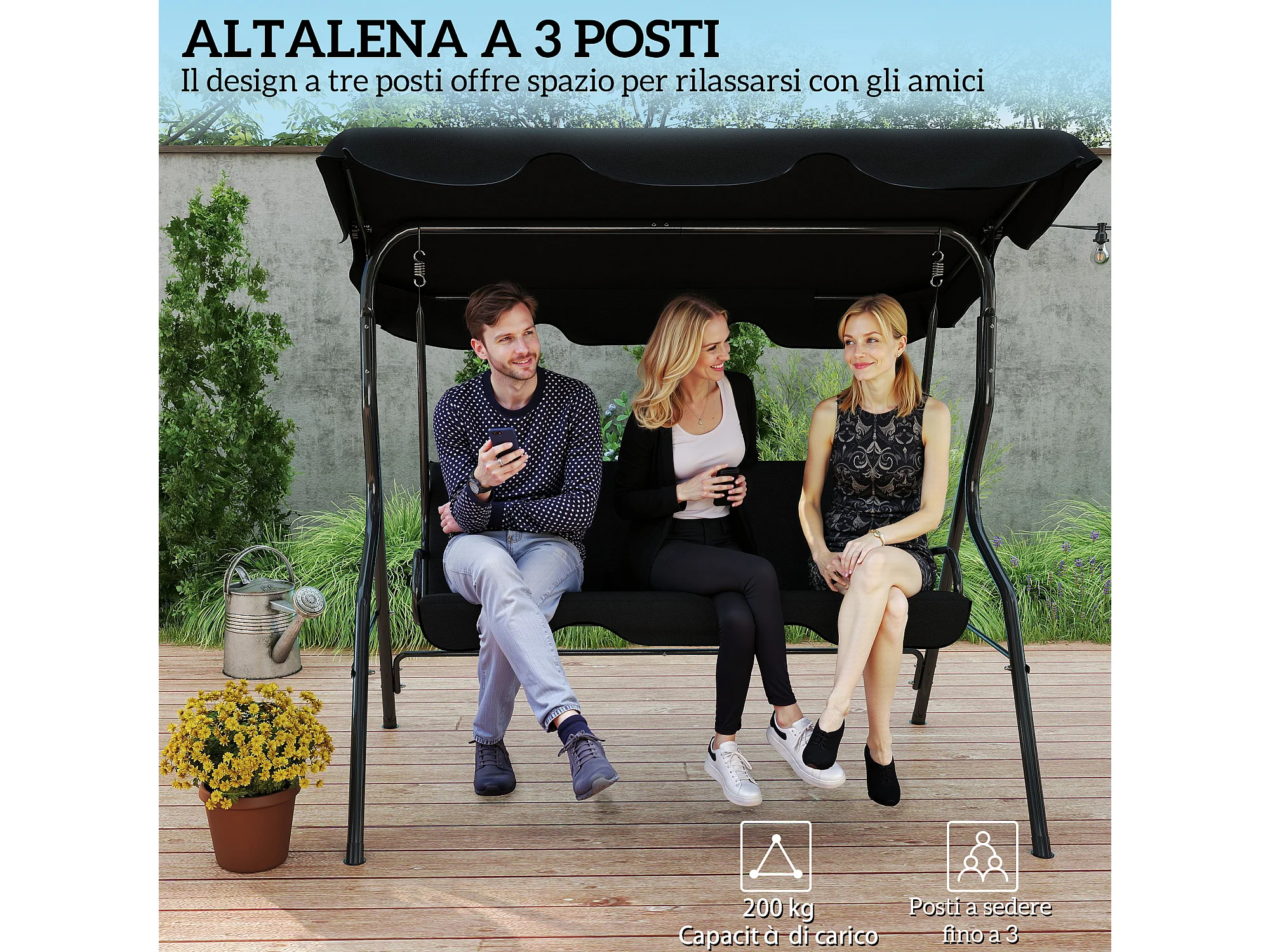 Dondolo 3 posti con tettuccio regolabile e cuscini nero