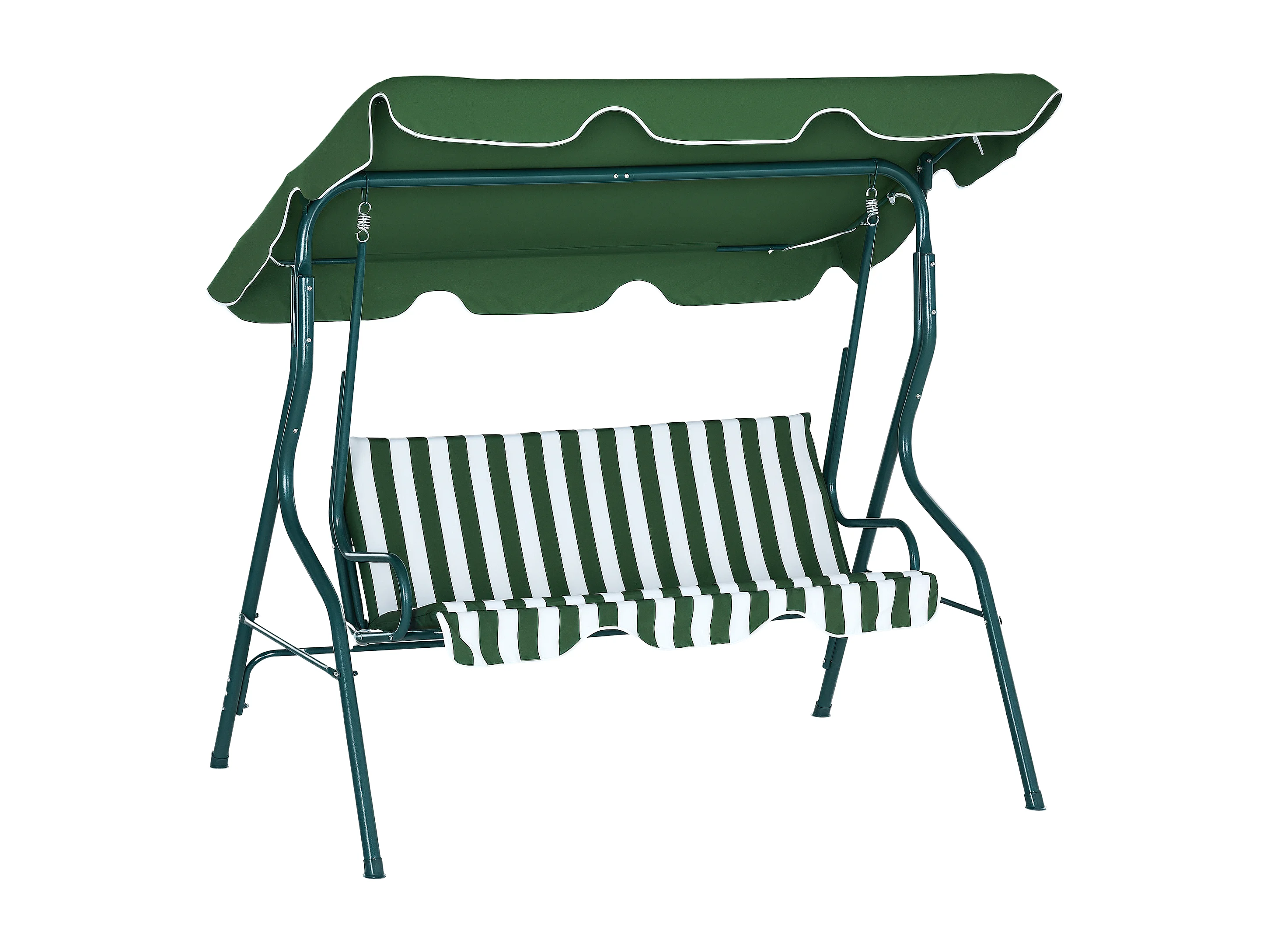 Dondolo 3 posti con tettuccio regolabile e cuscini verde e bianco
