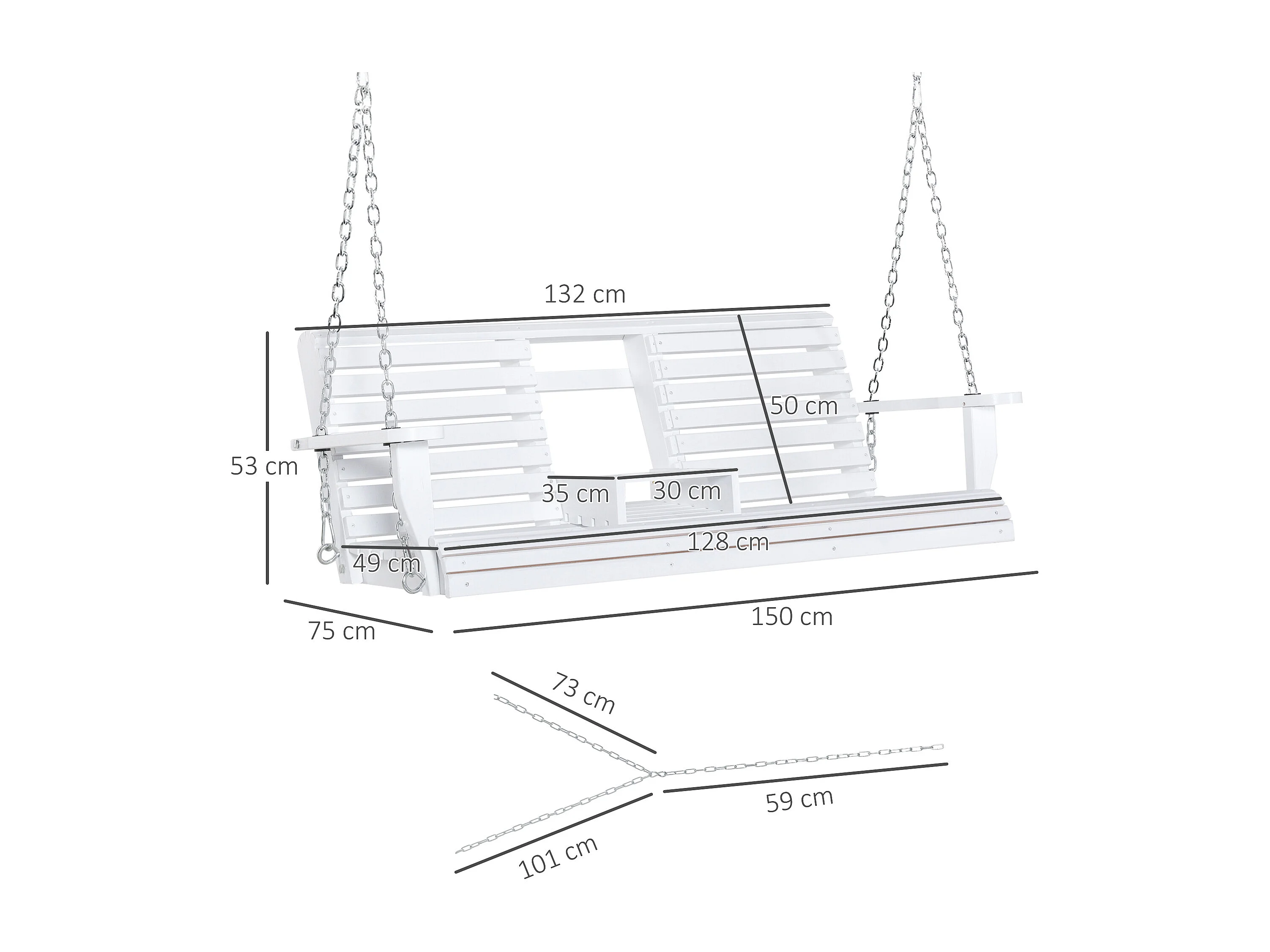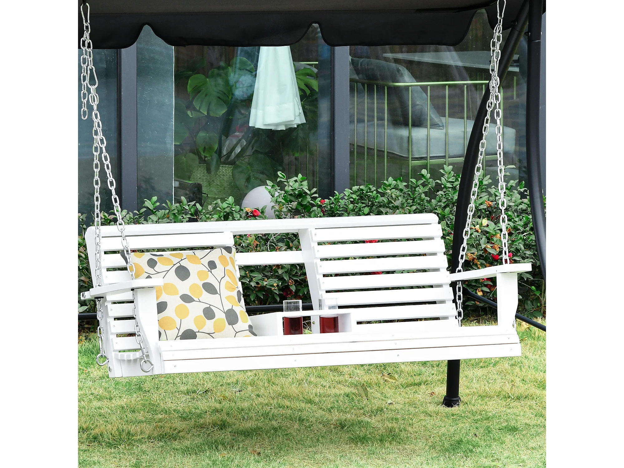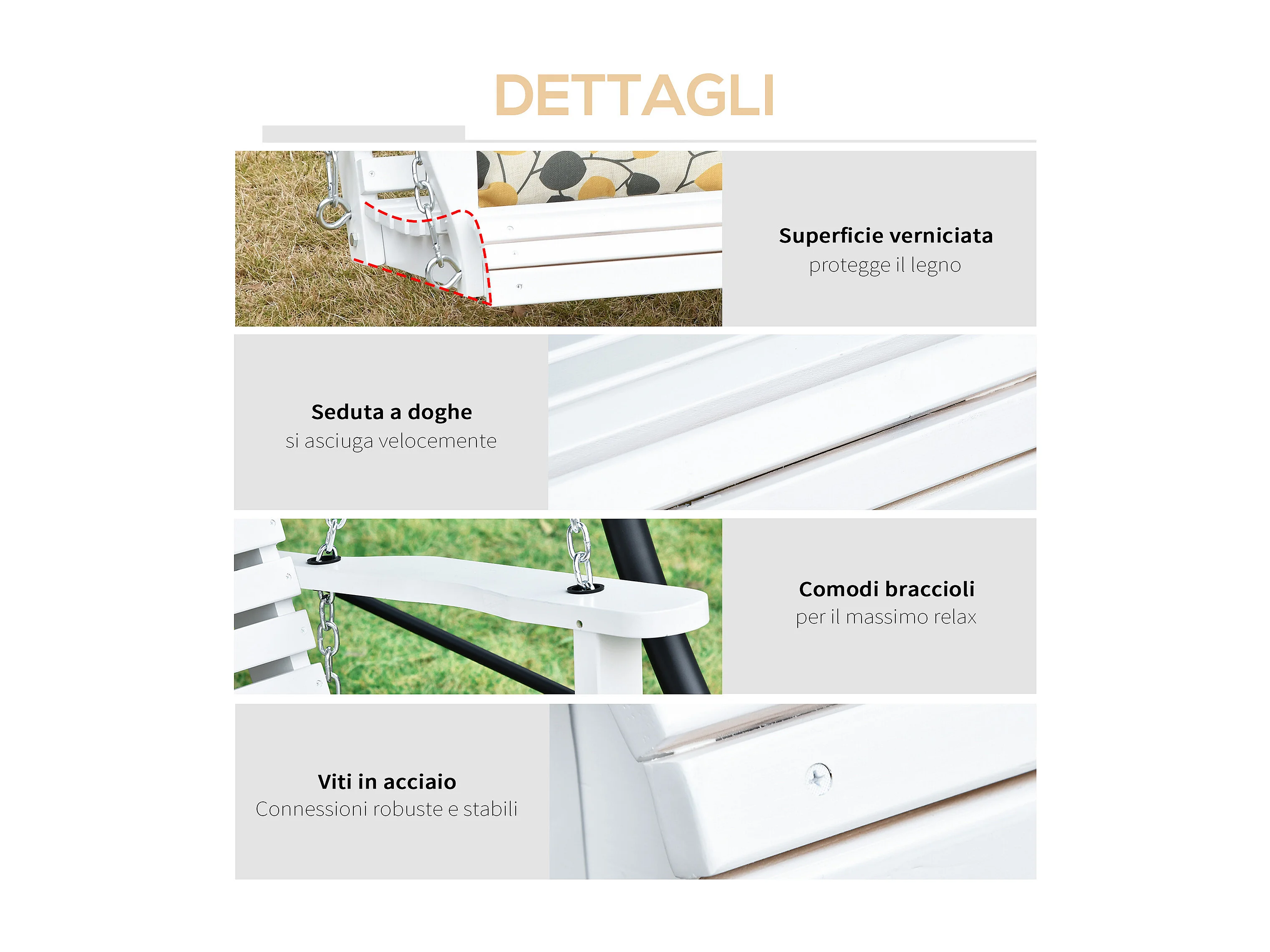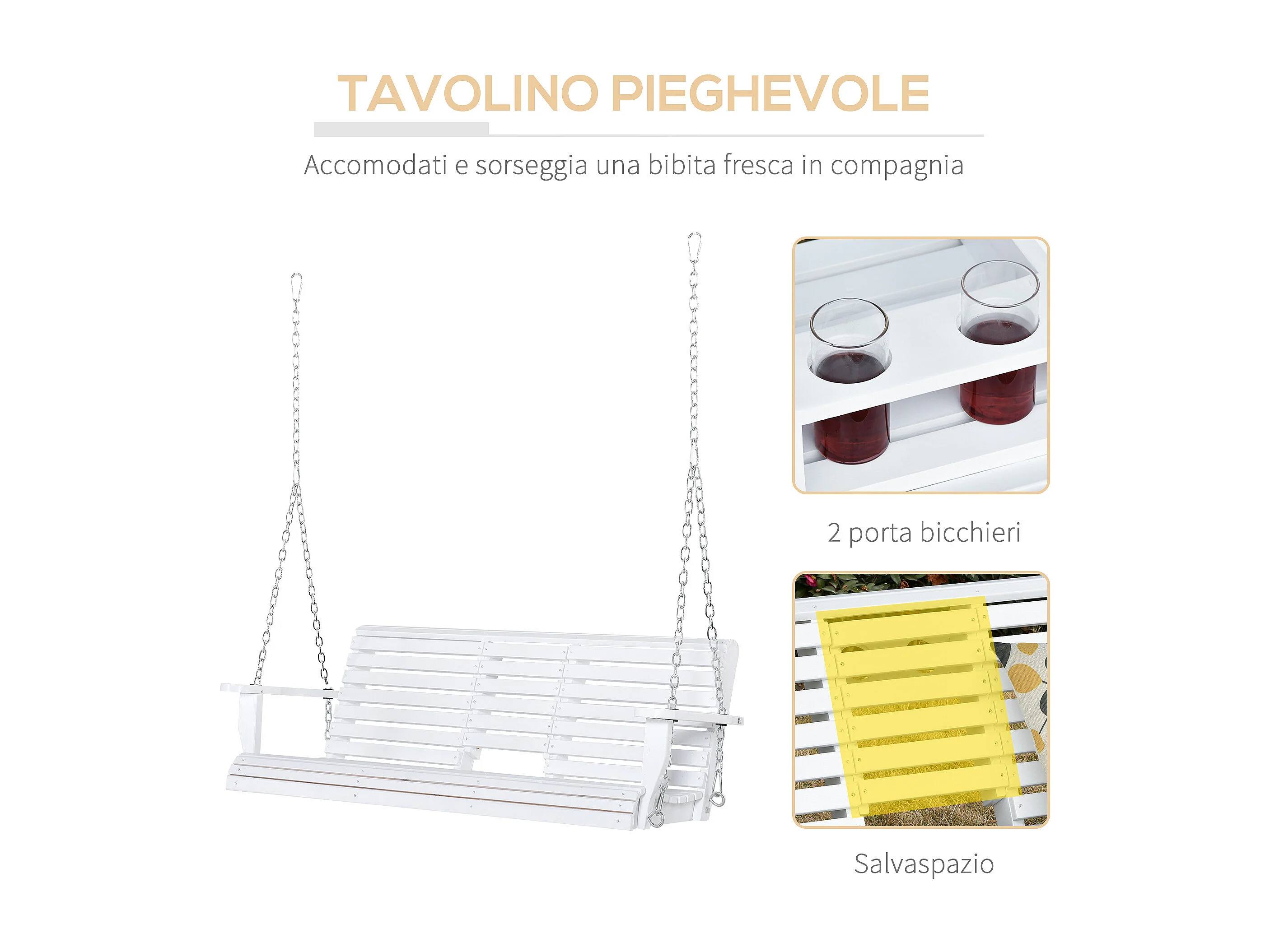 Dondolo 3 posti da esterno con tavolino e portabicchieri bianco