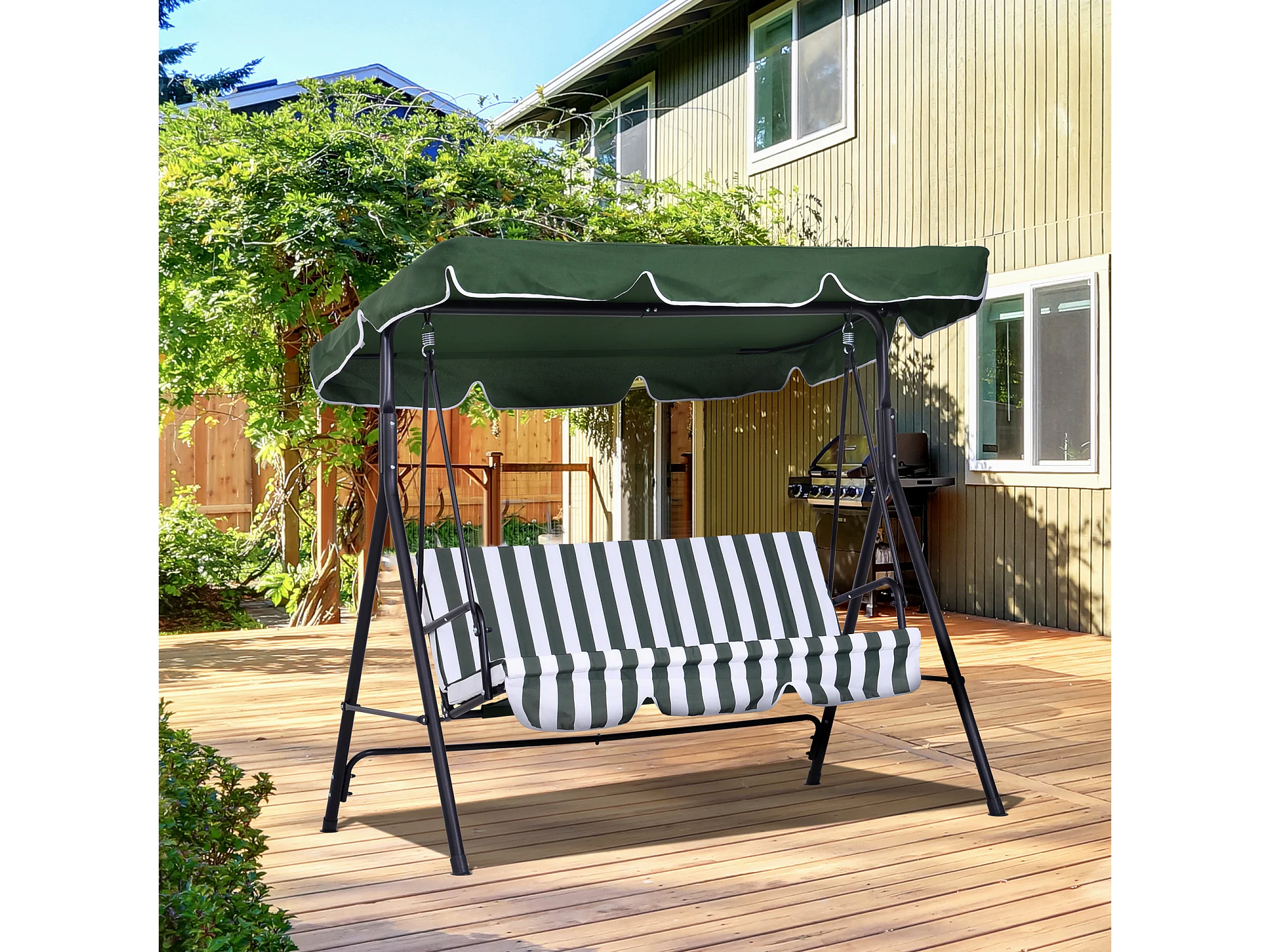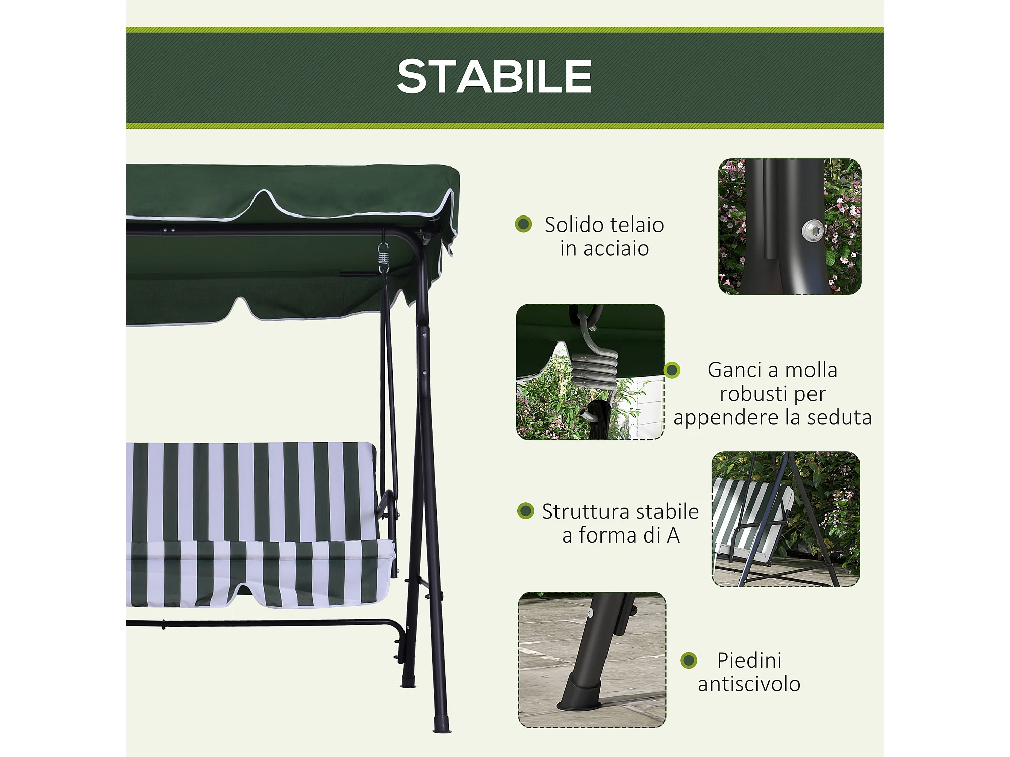 Dondolo 3 posti con tettuccio regolabile e cuscini verde e bianco