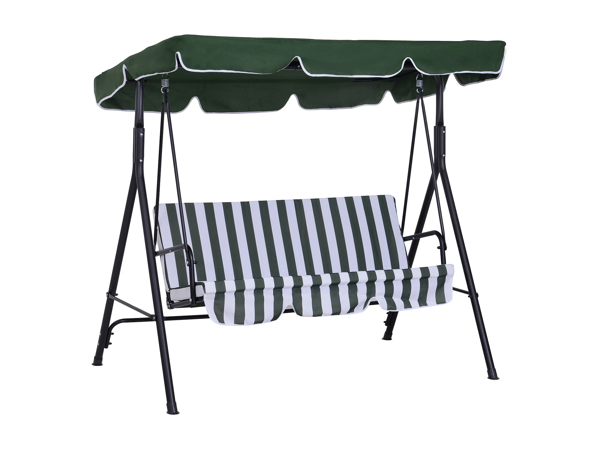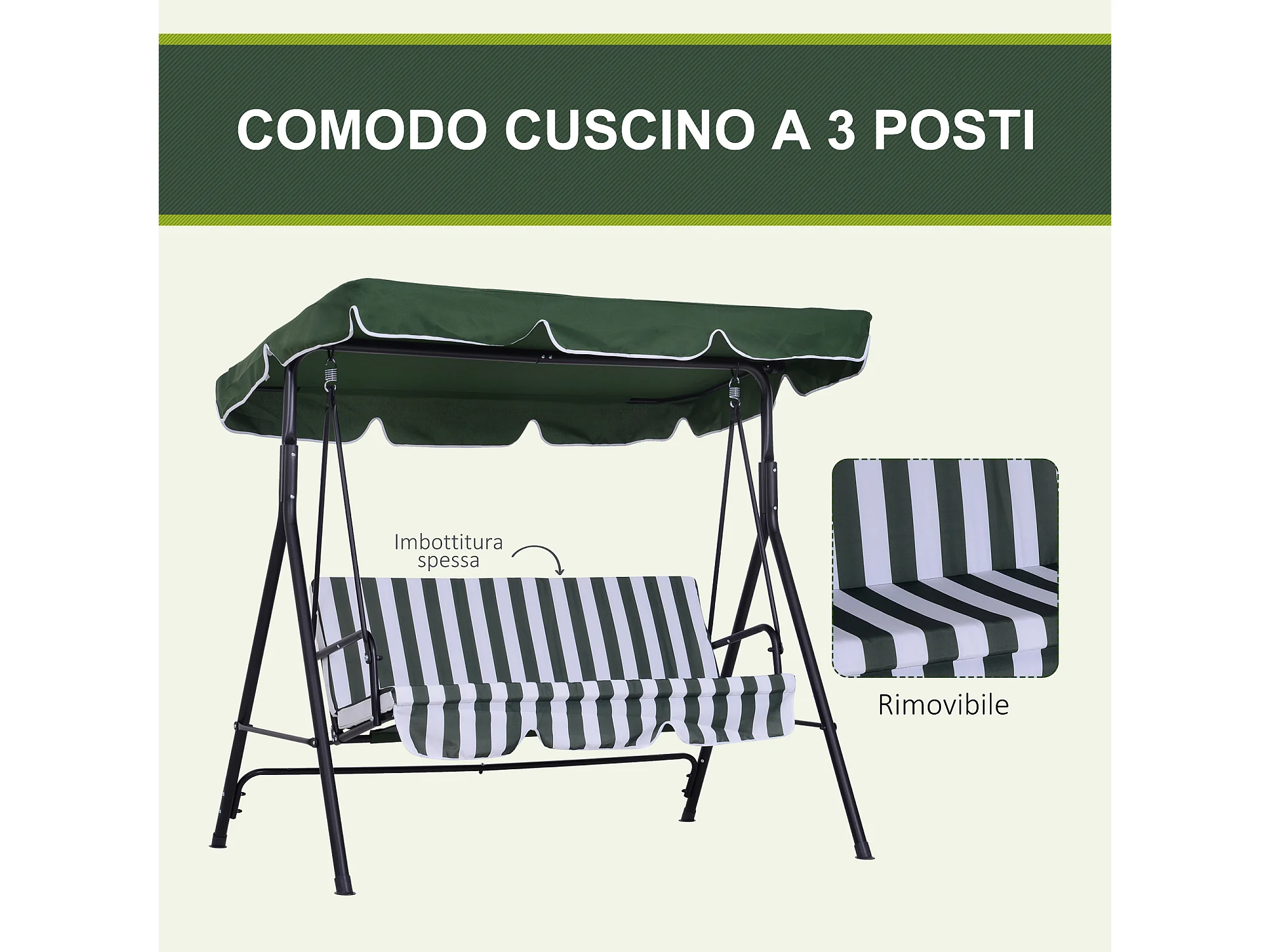 Dondolo 3 posti da giardino con tettuccio e cuscini verde