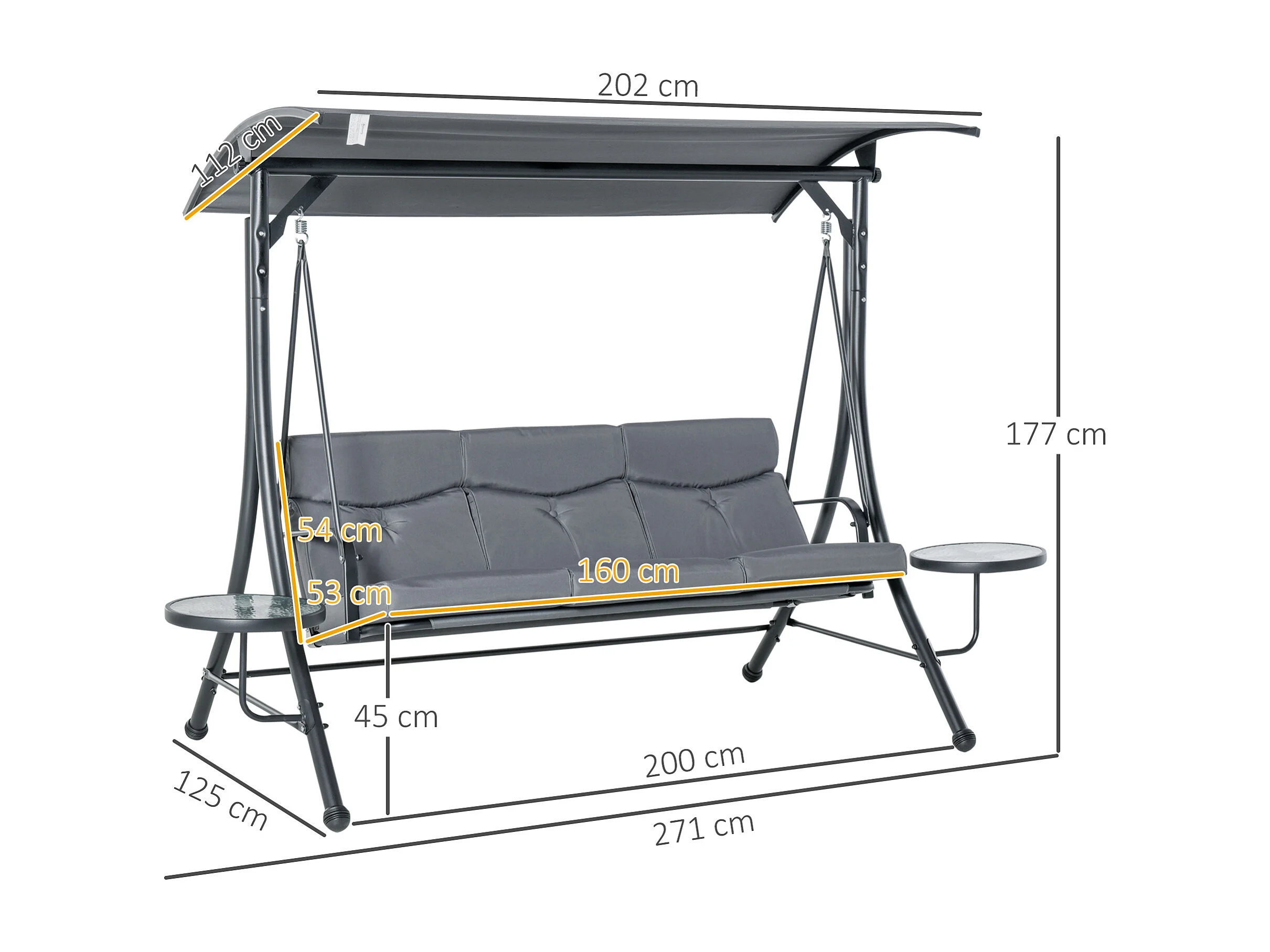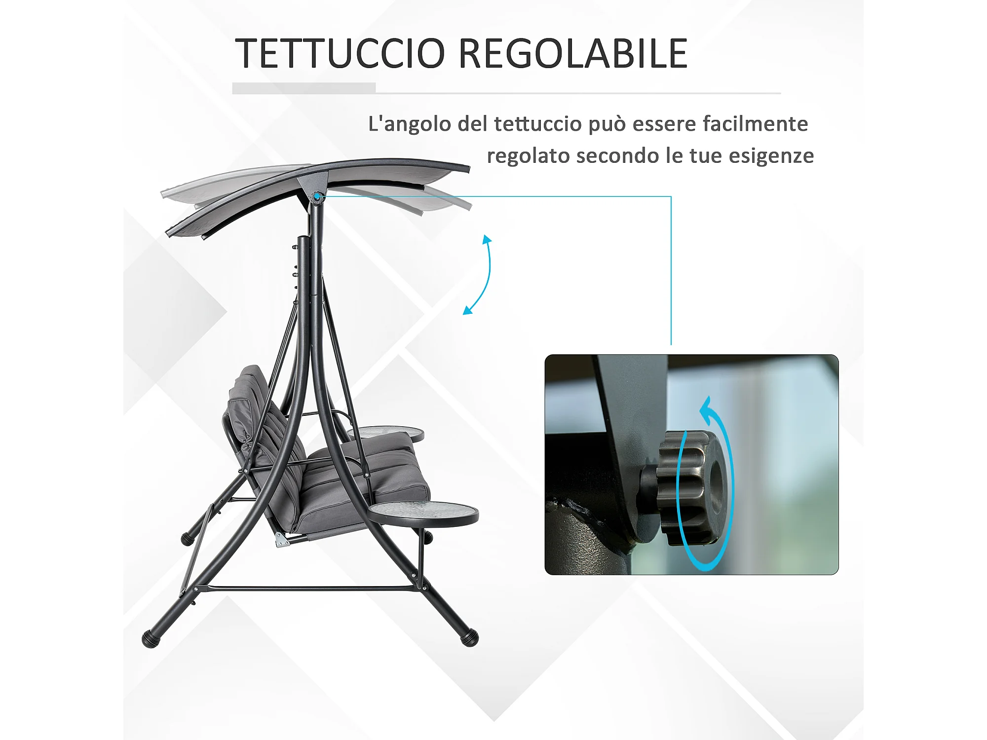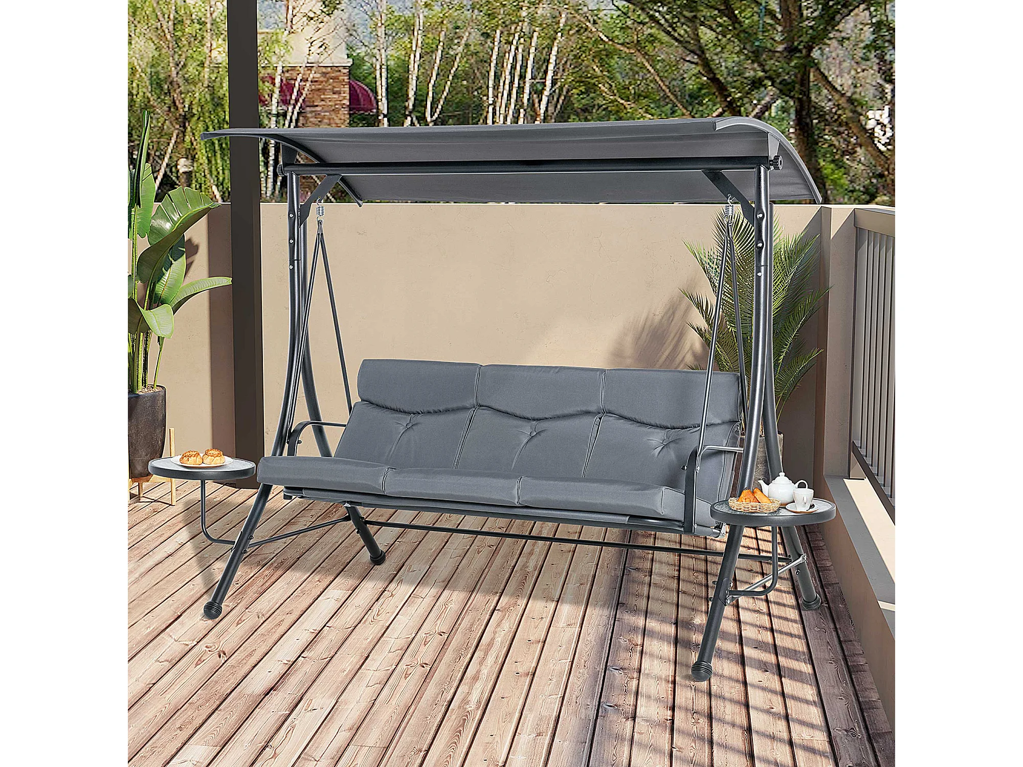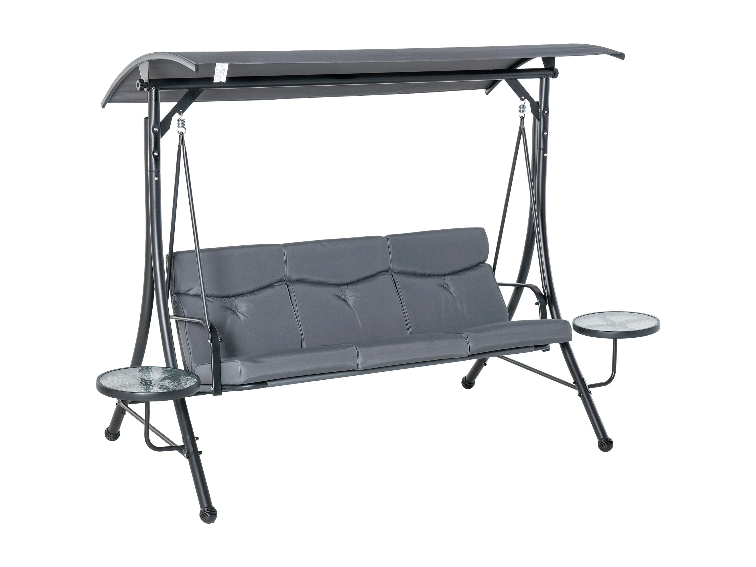 Dondolo 3 Posti da Giardino con Tettuccio Regolabile e 2 Tavolini