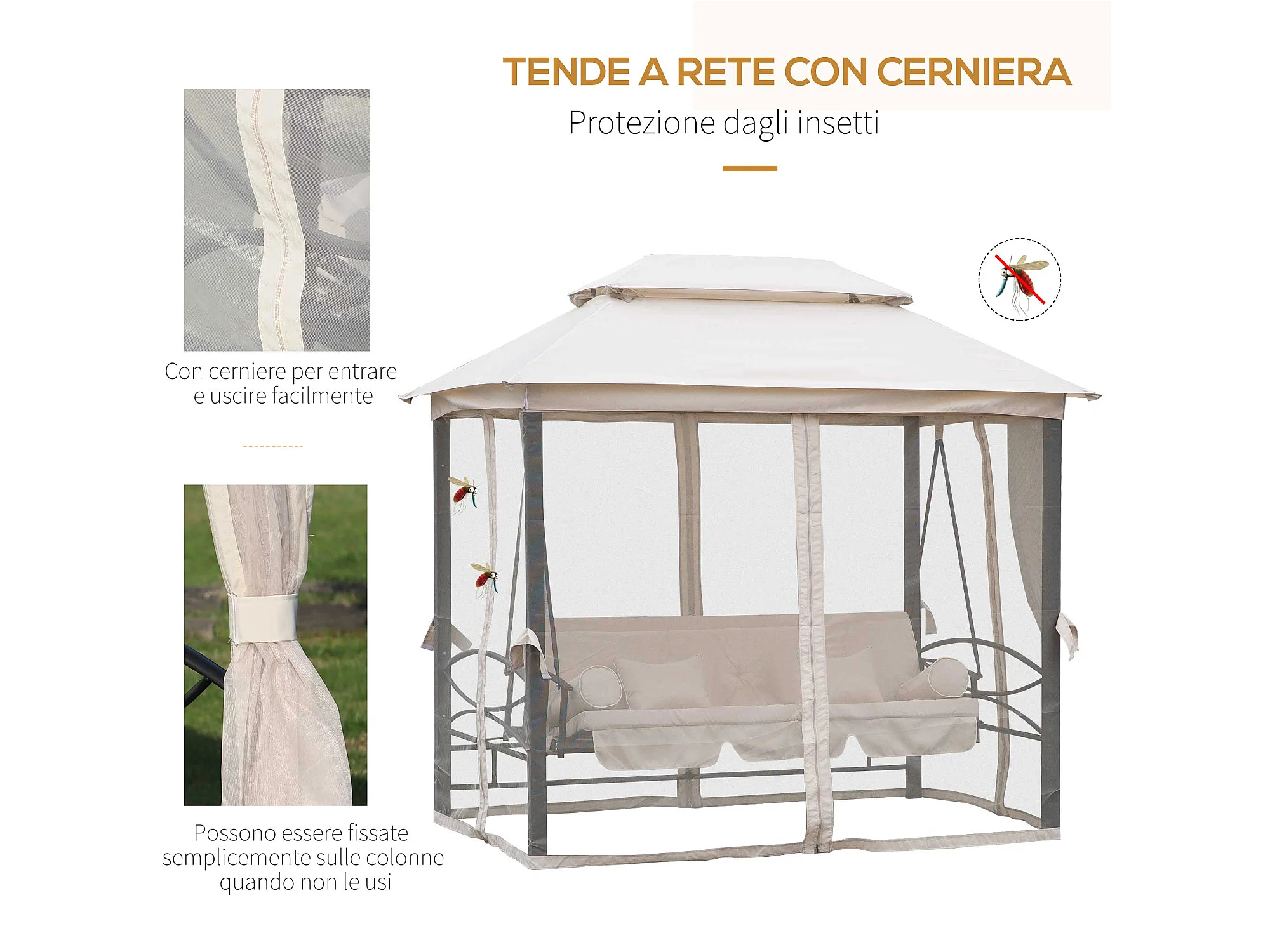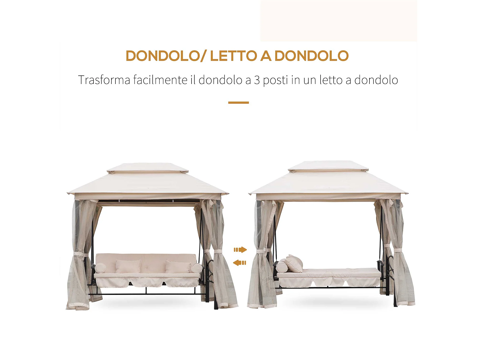 Dondolo 3 Posti e Lettino Singolo Copertura a Gazebo con Zanzariera e Cuscini
