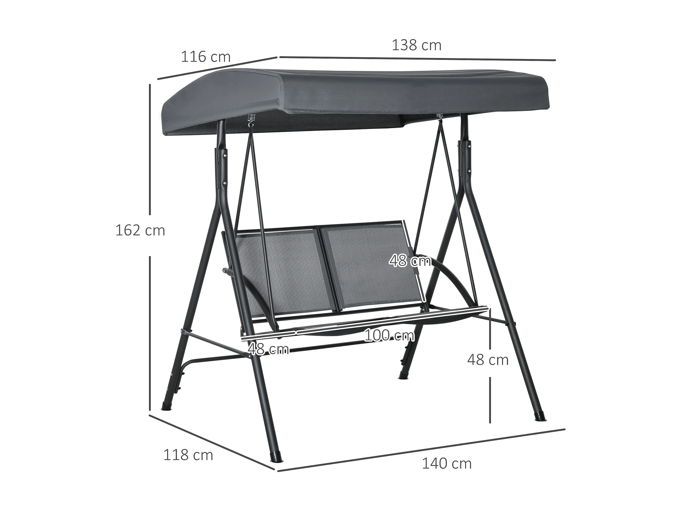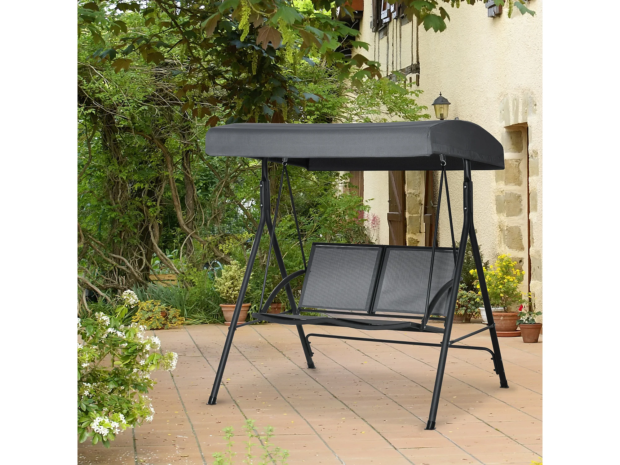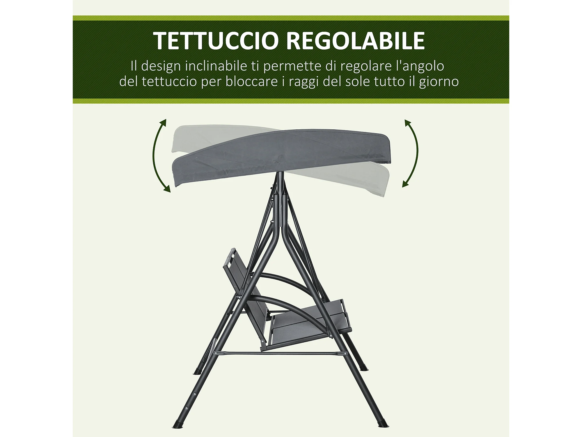 Dondolo a 2 posti da giardino tettuccio regolabile grigio