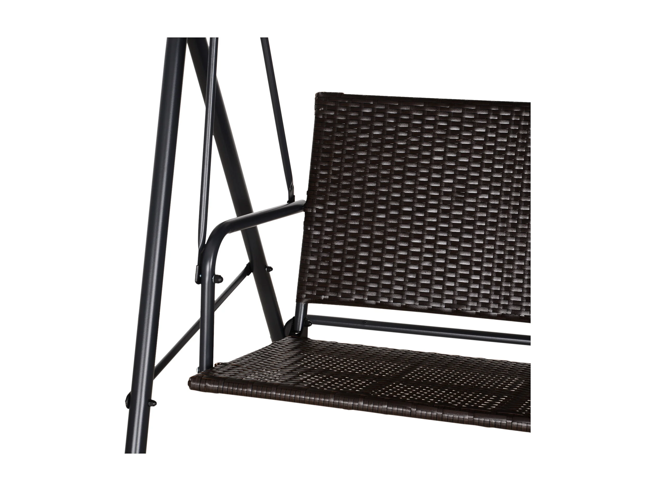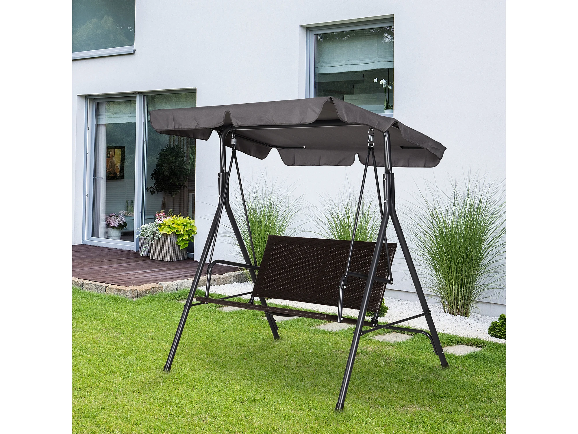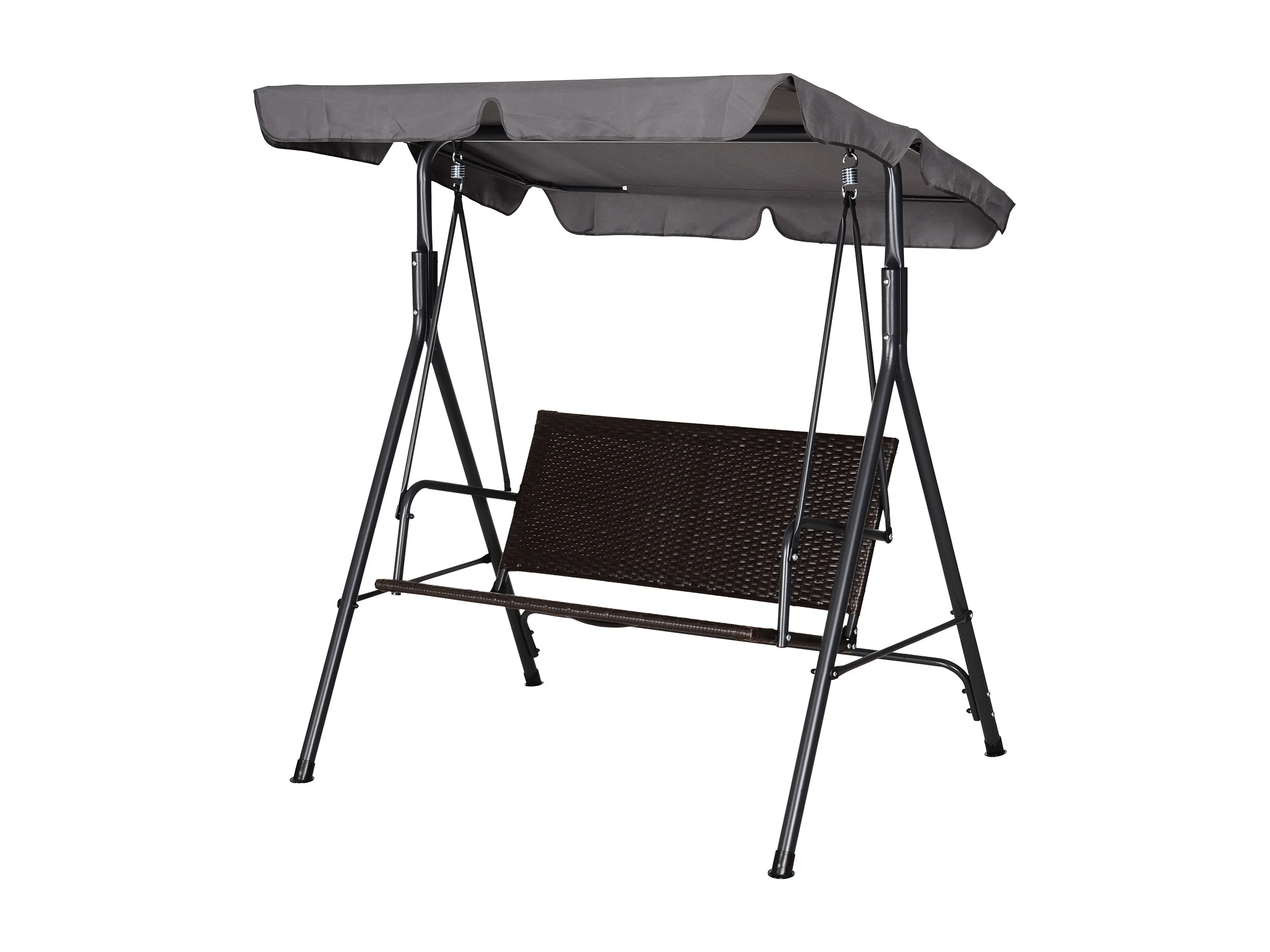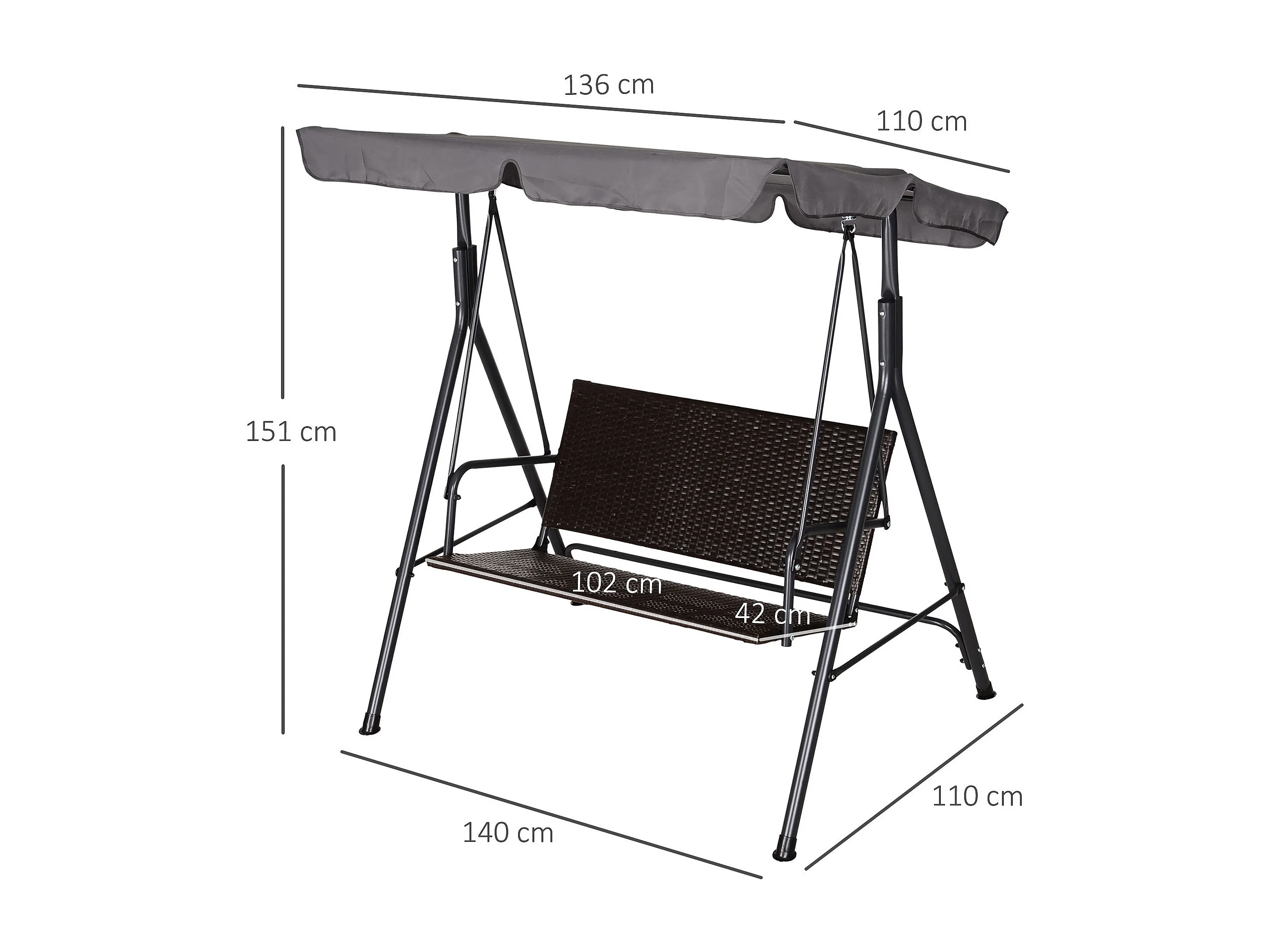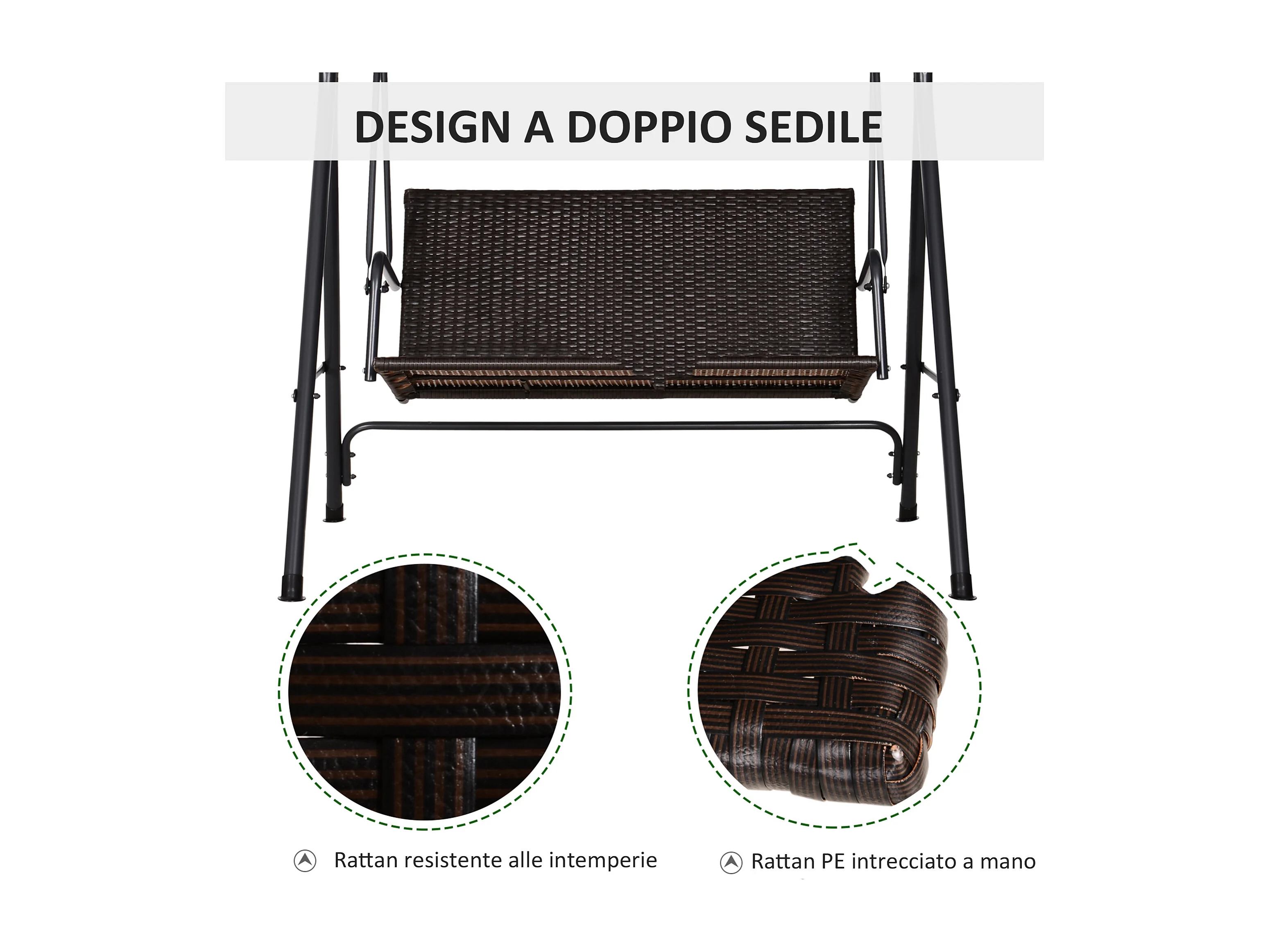 Dondolo da giardino 2 posti con tettuccio in rattan marrone e grigio