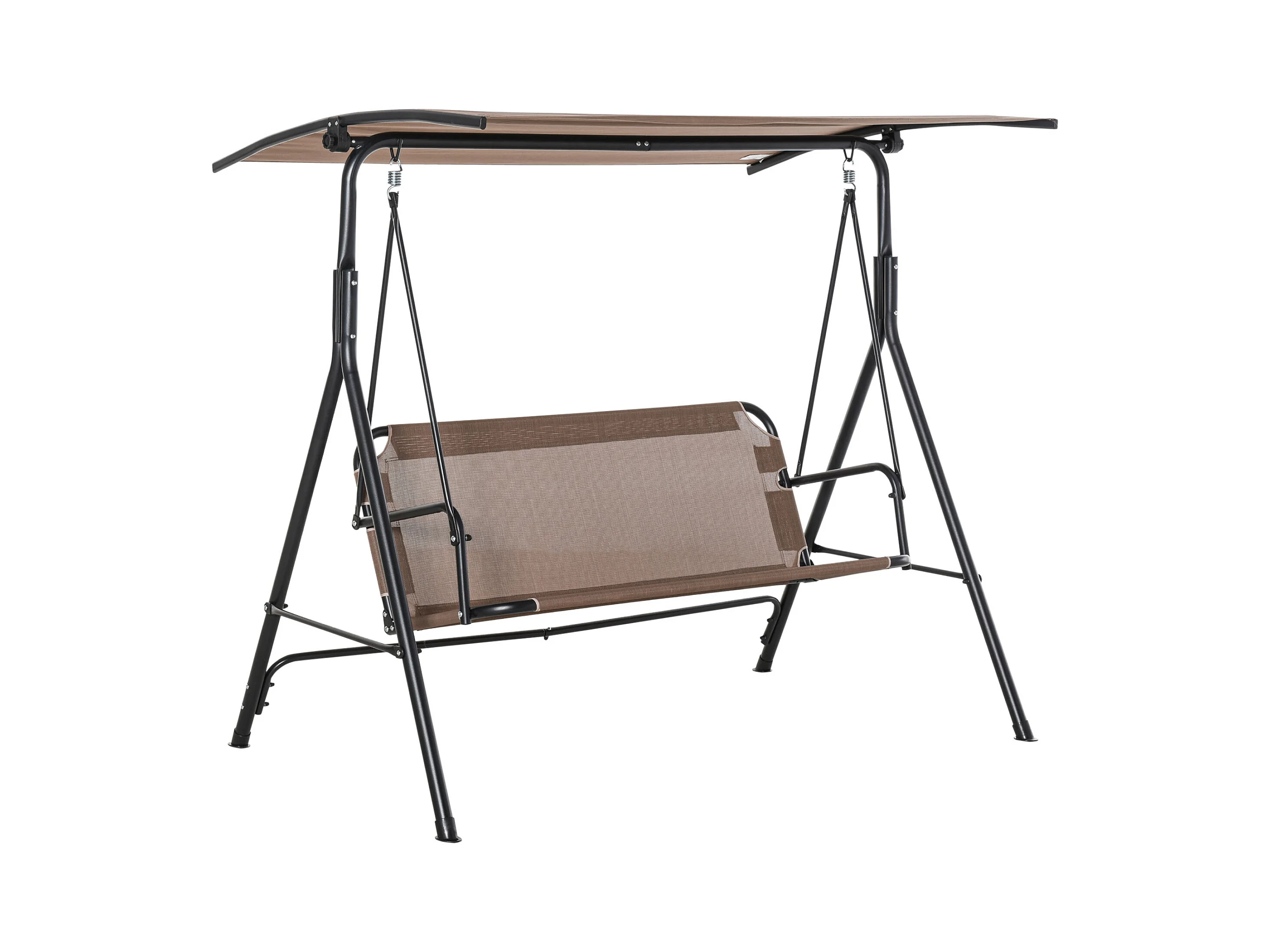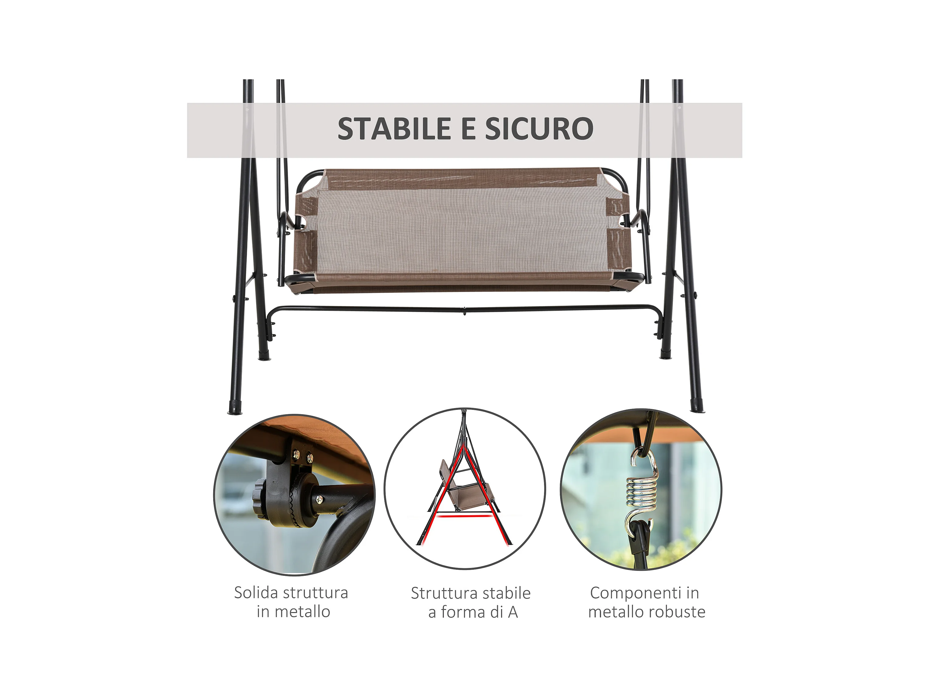 Altalena da giardino a 3 posti, tetto regolabile, struttura in metallo e tessuto in poliestere, marrone (196x128x172cm)