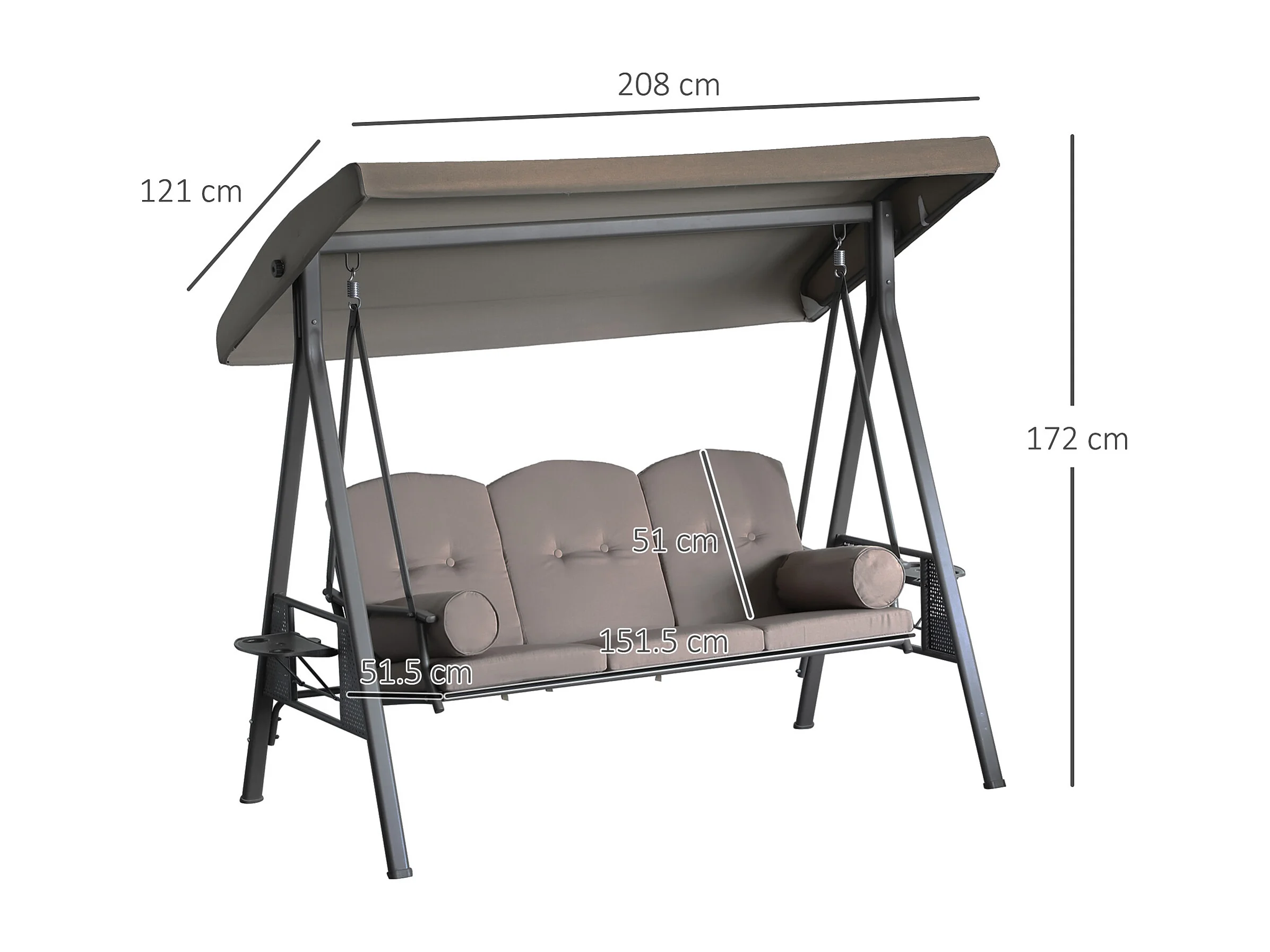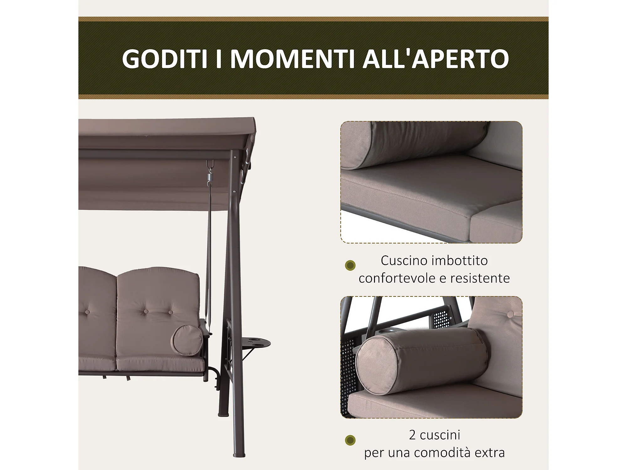 Dondolo da giardino 3 posti con tetto regolabile marrone
