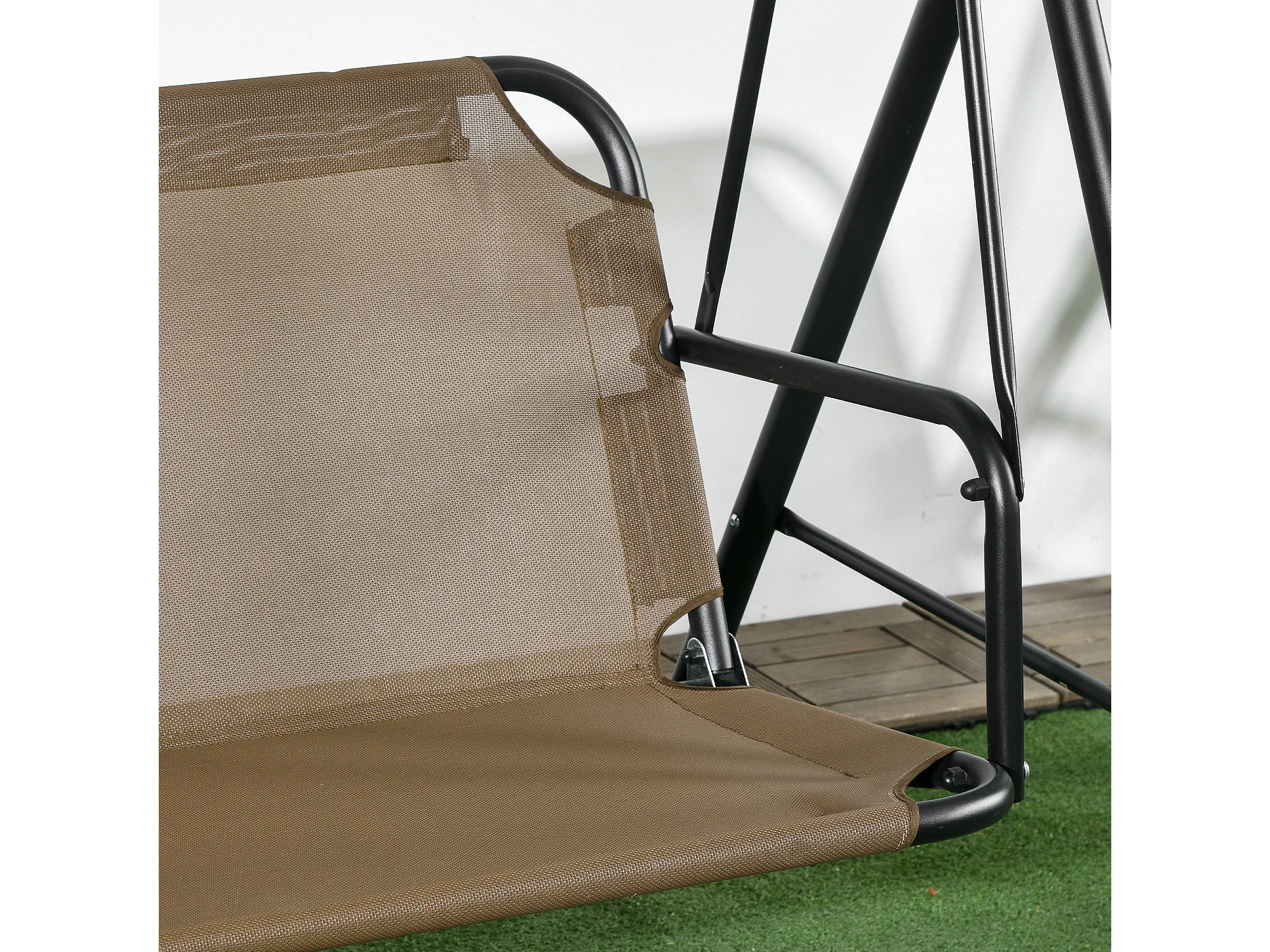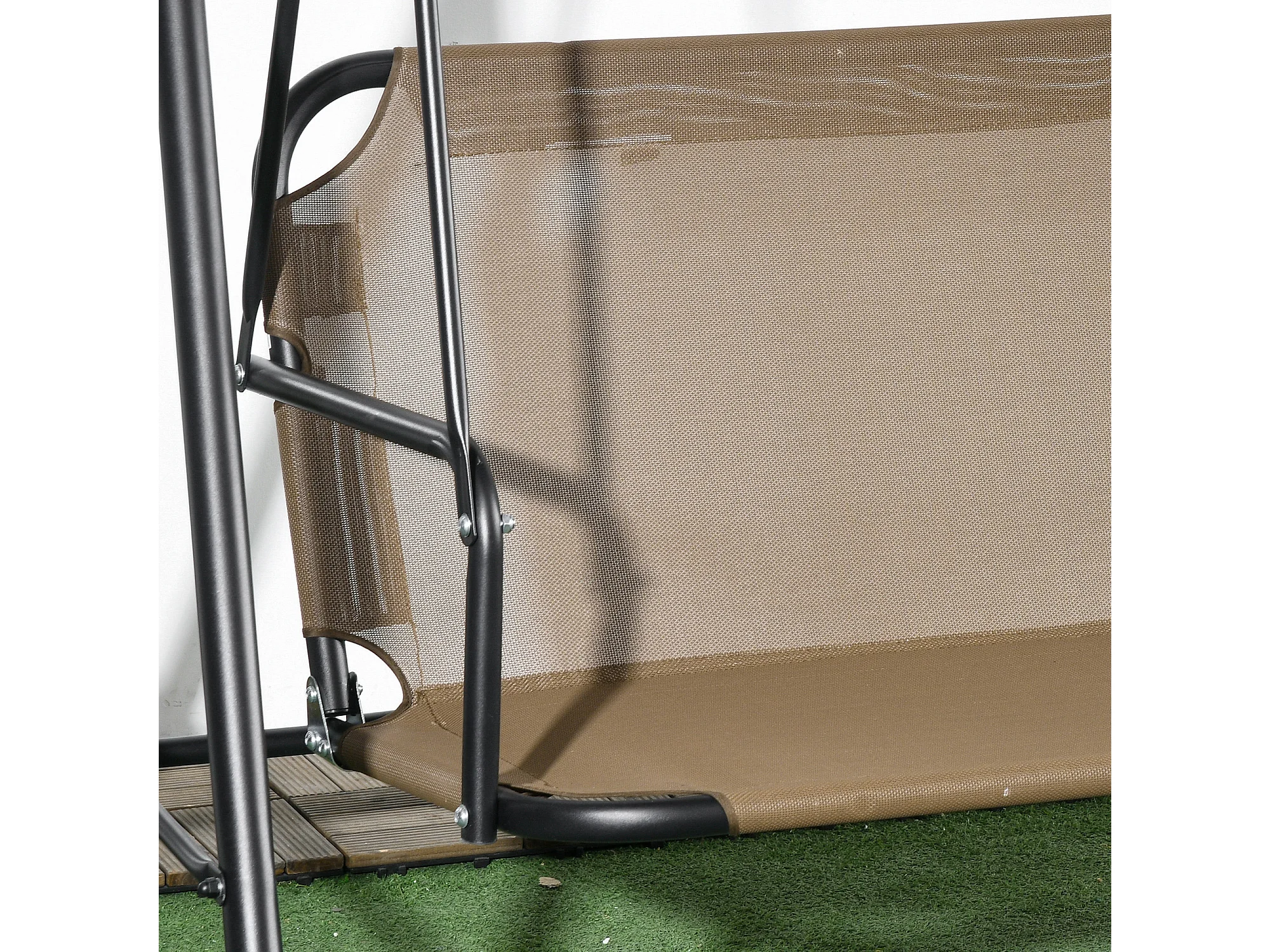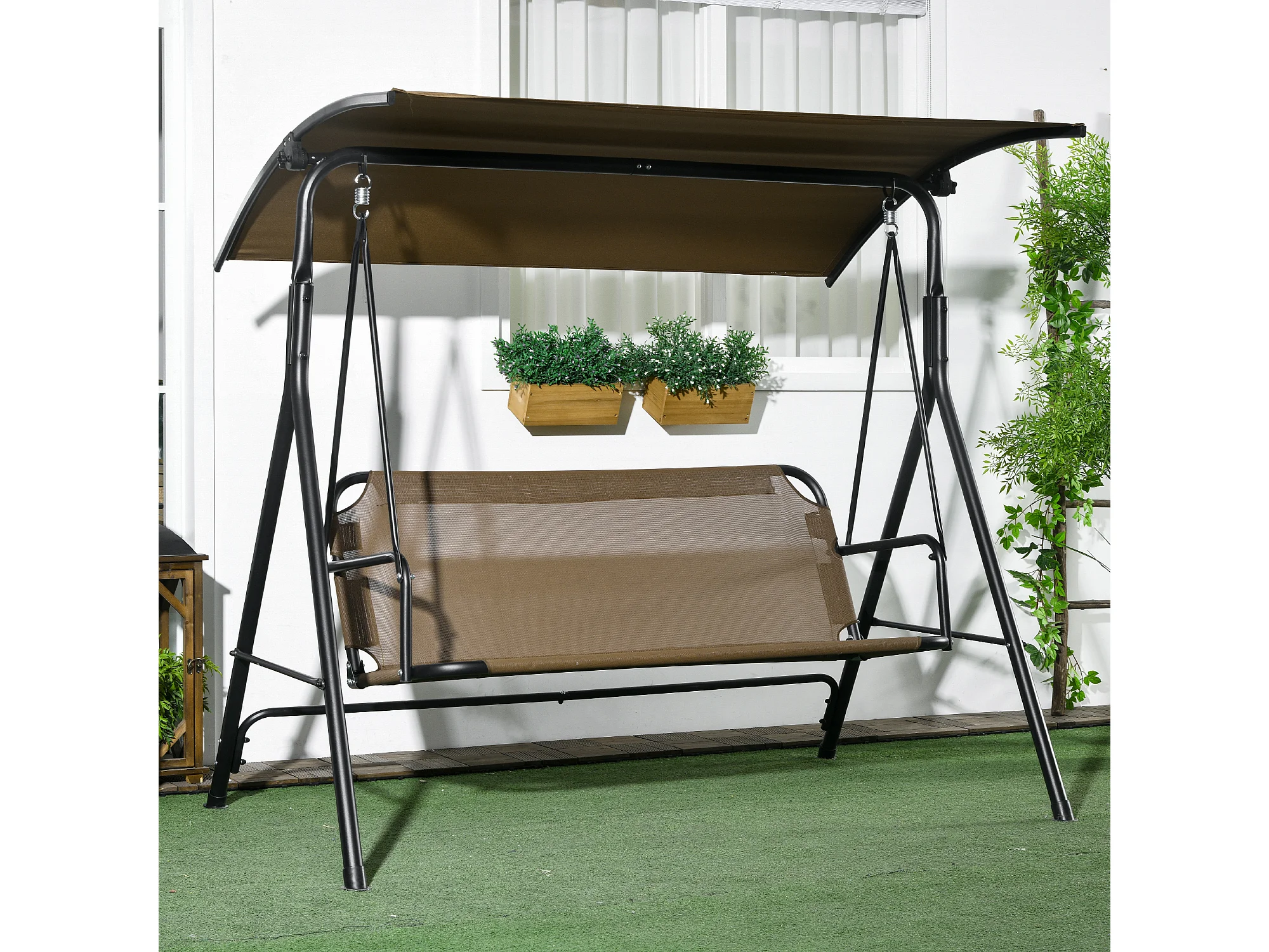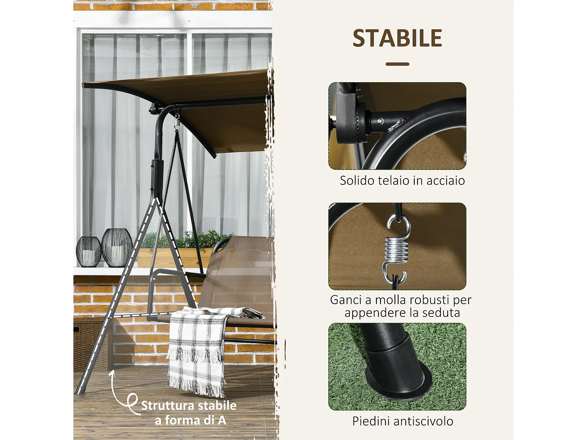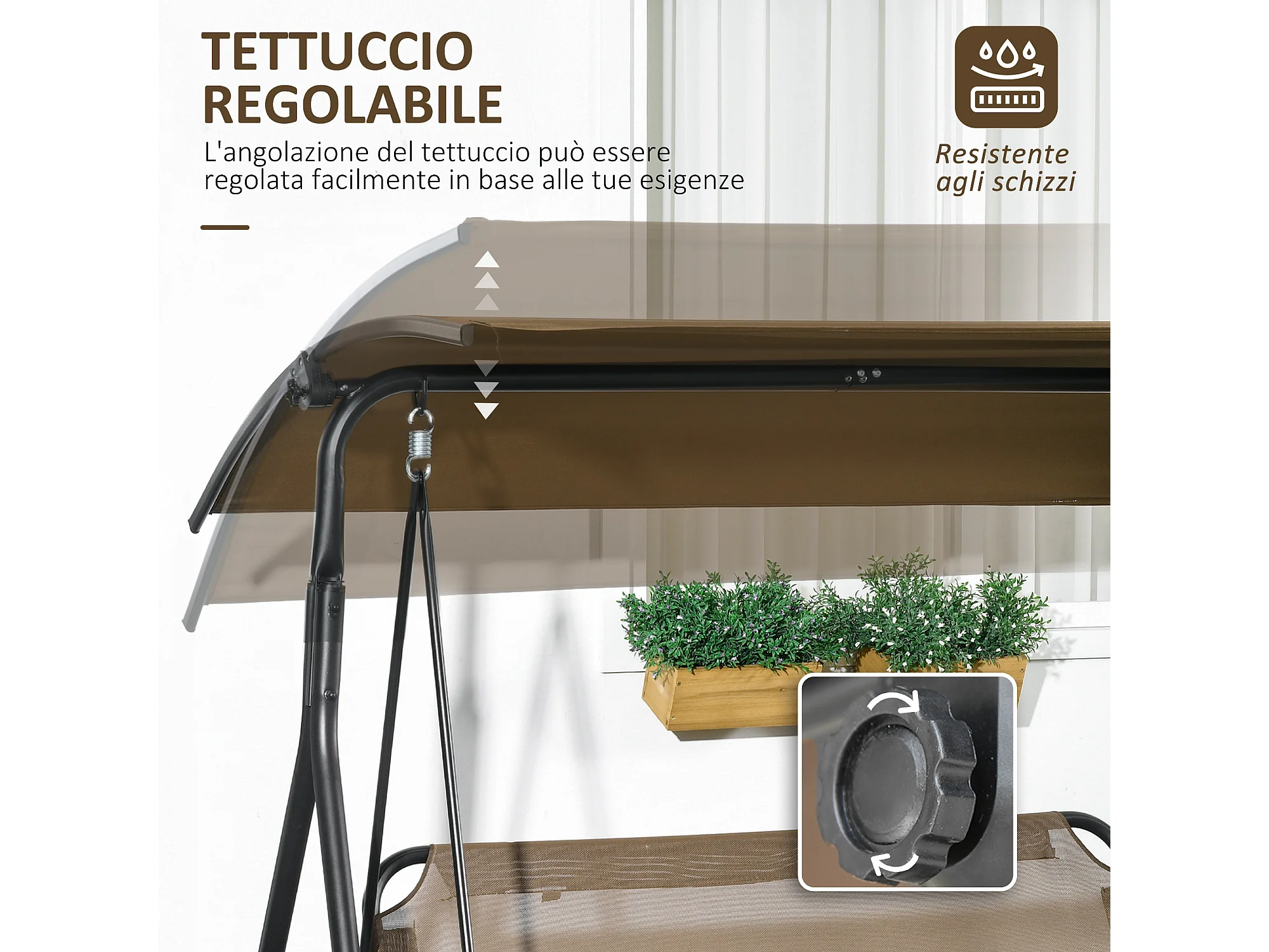 Dondolo da giardino 3 posti con tetto regolabile marrone e grigio