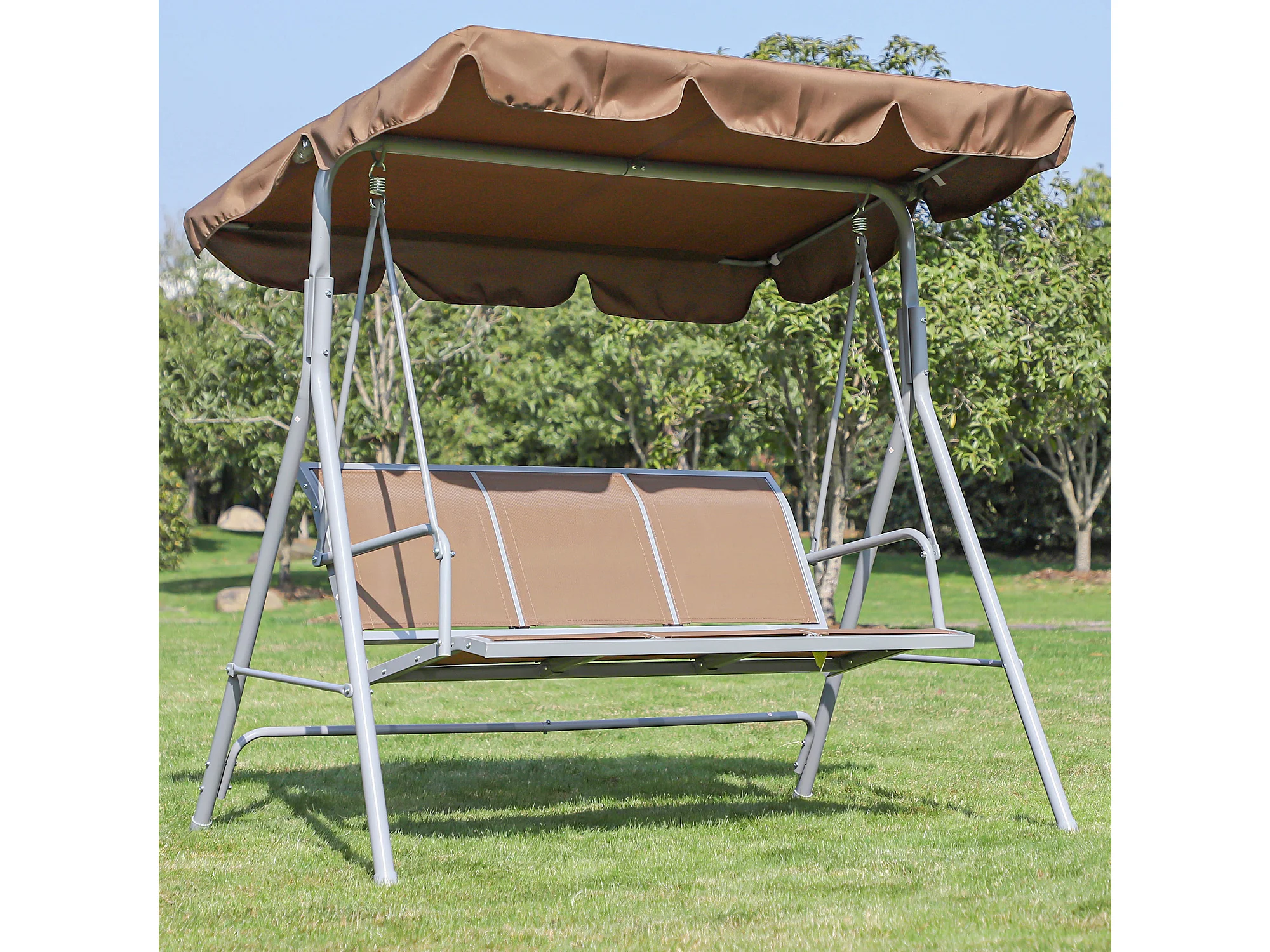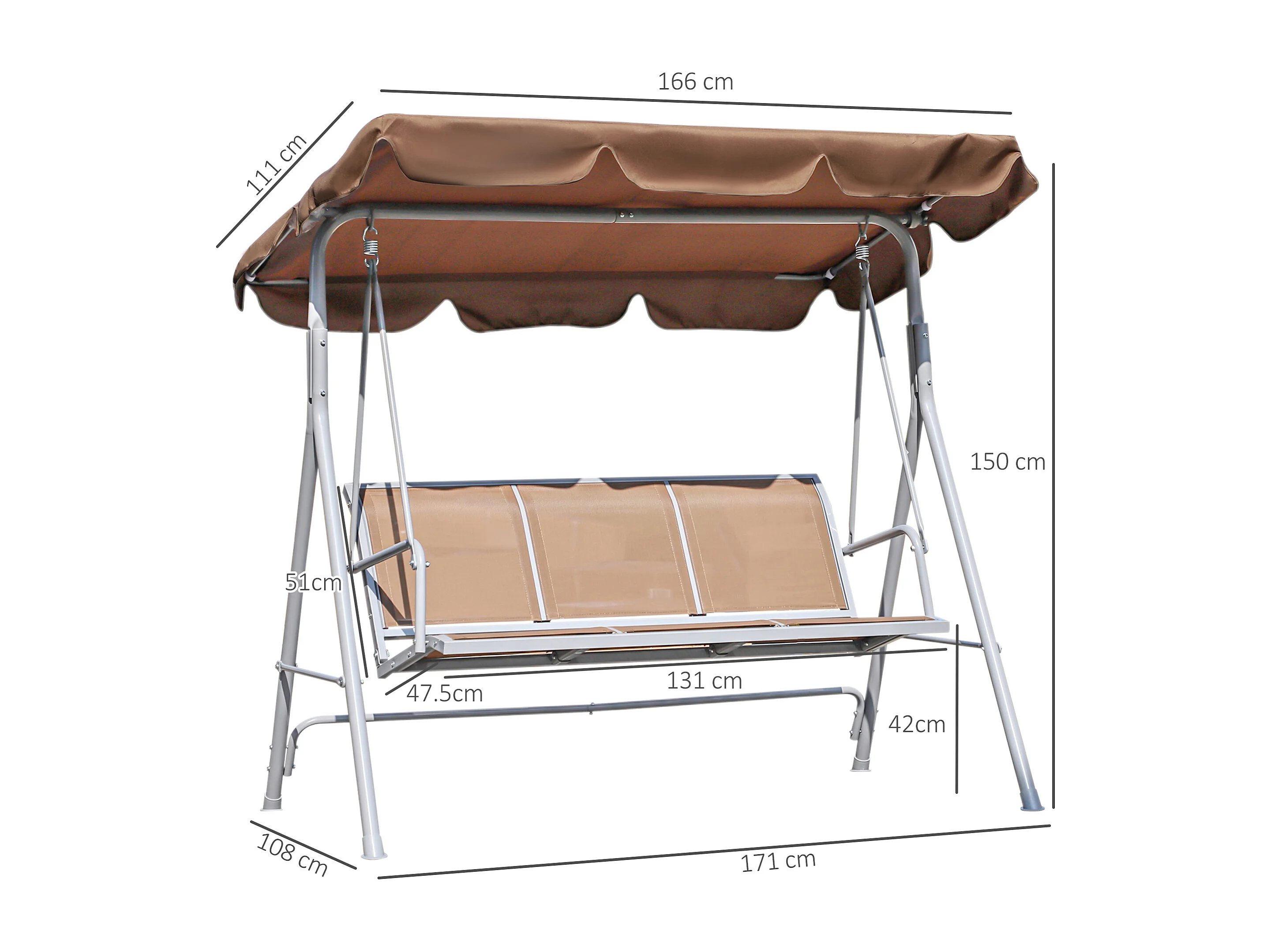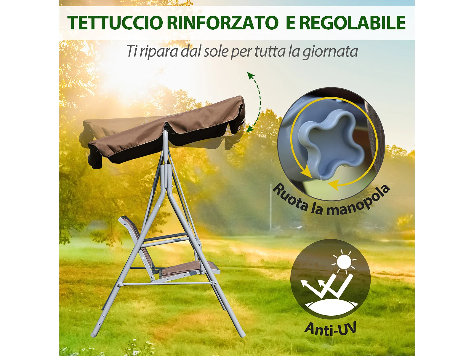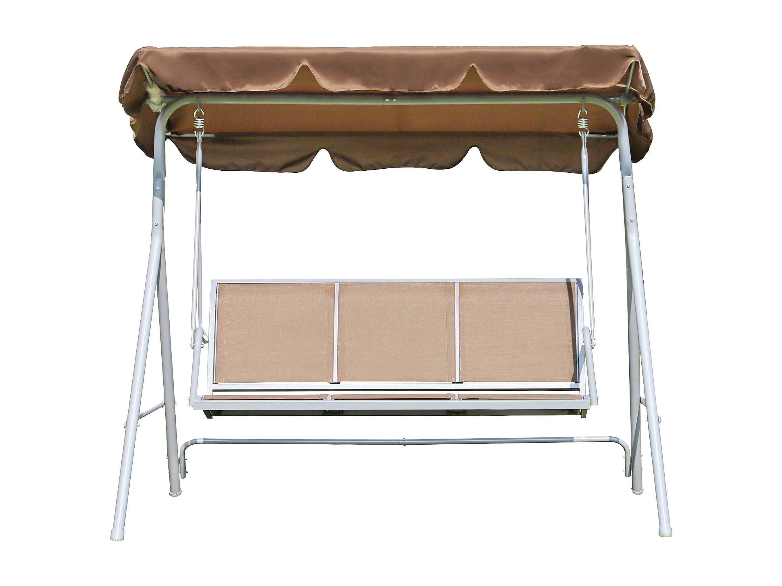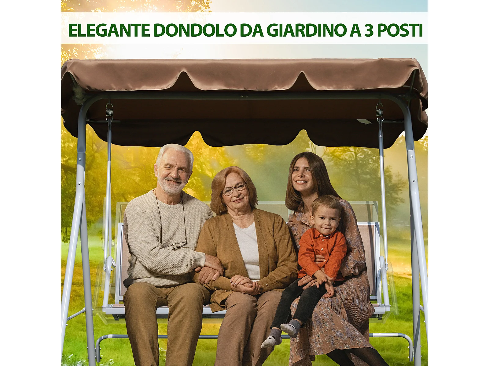 Dondolo da Giardino 3 Posti con Tettuccio Parasole Regolabile e Seduta in Poliestere