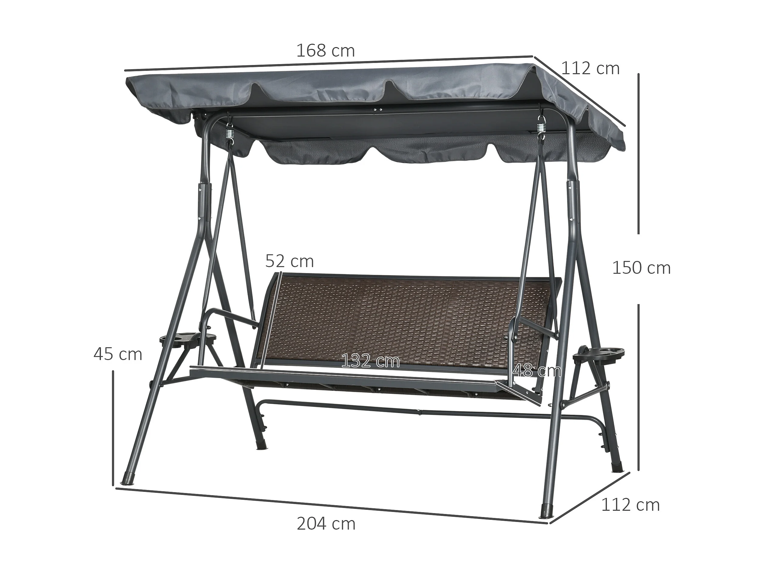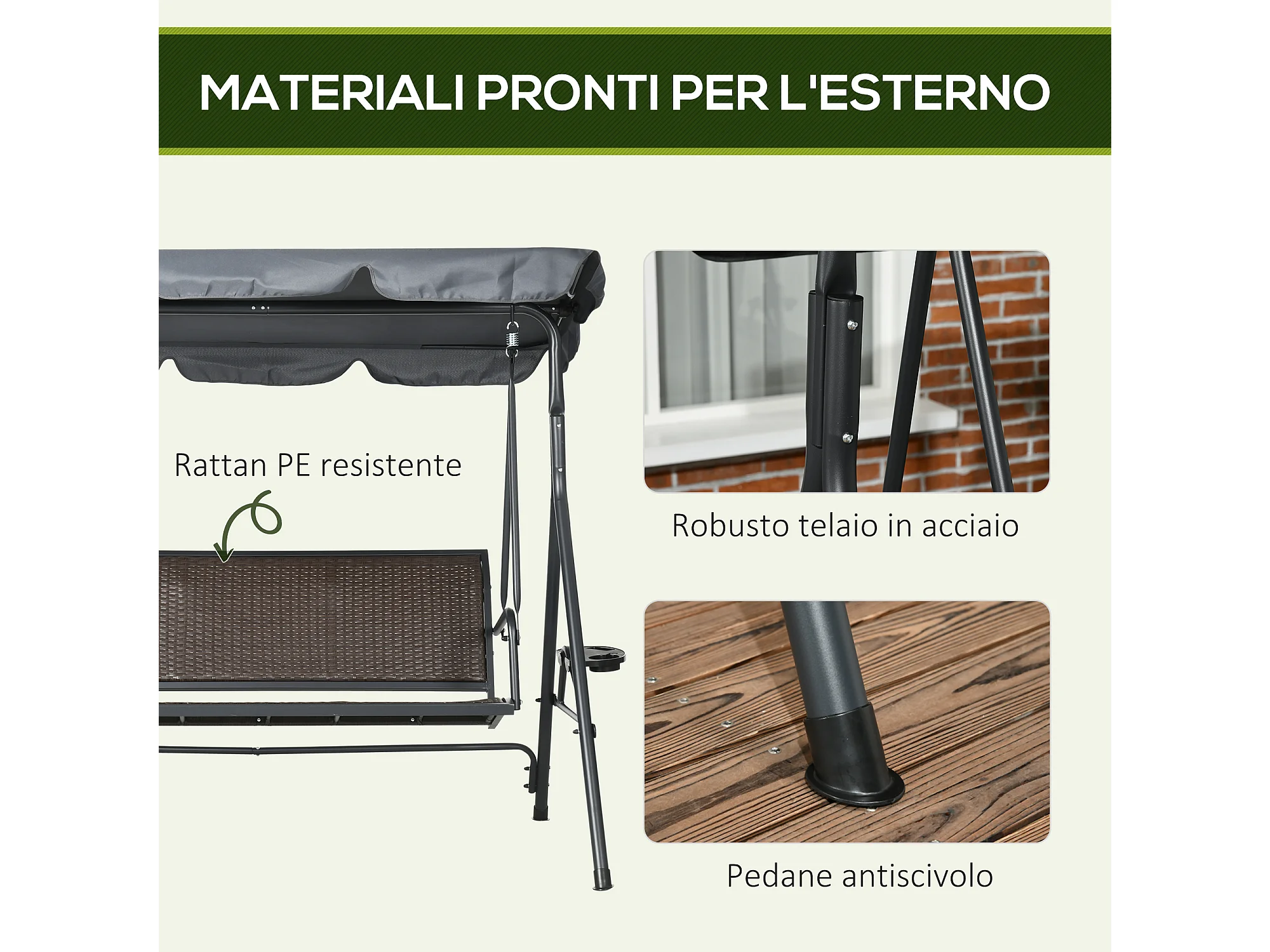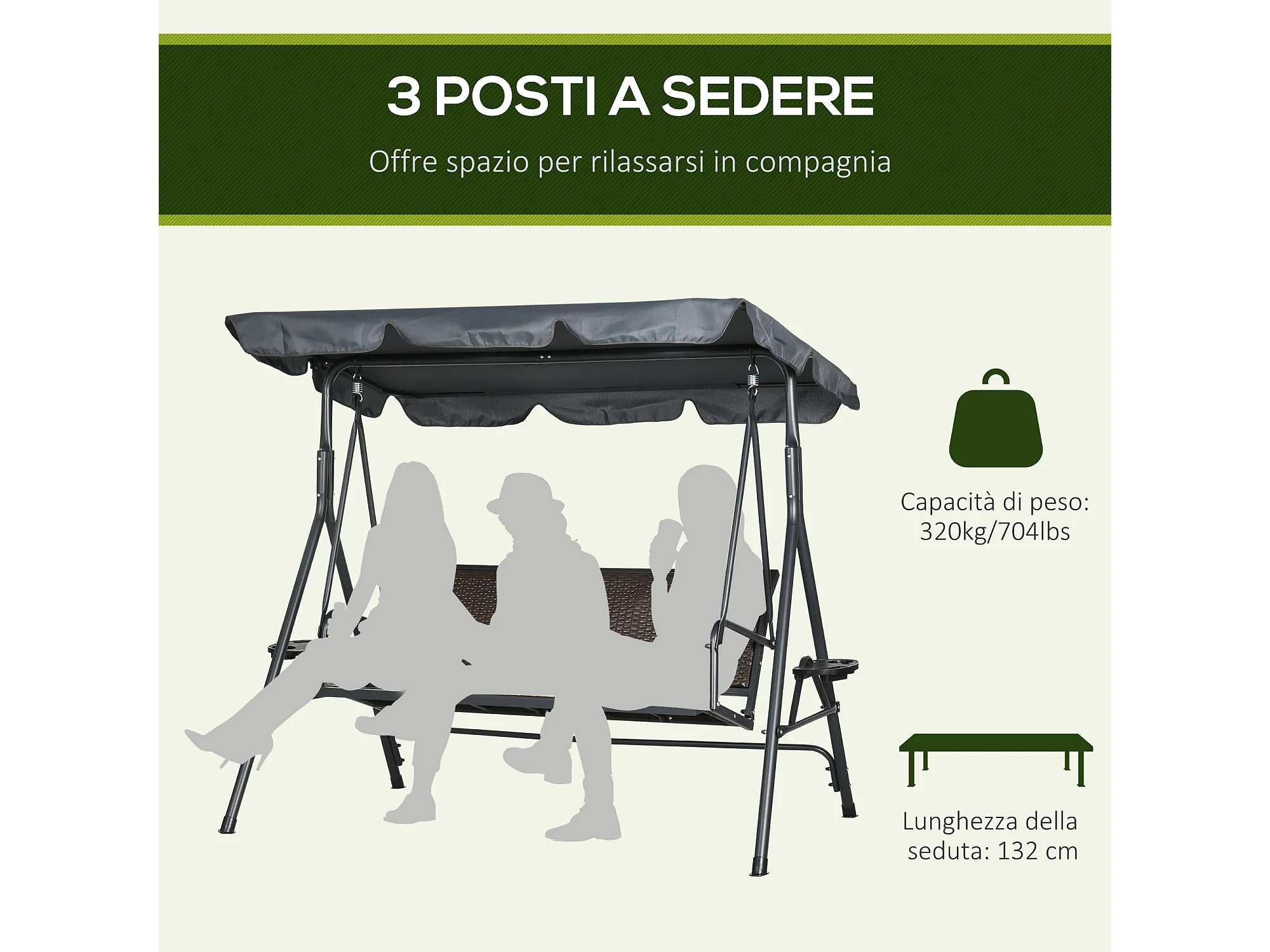 Dondolo da giardino 3 posti con tettuccio regolabile