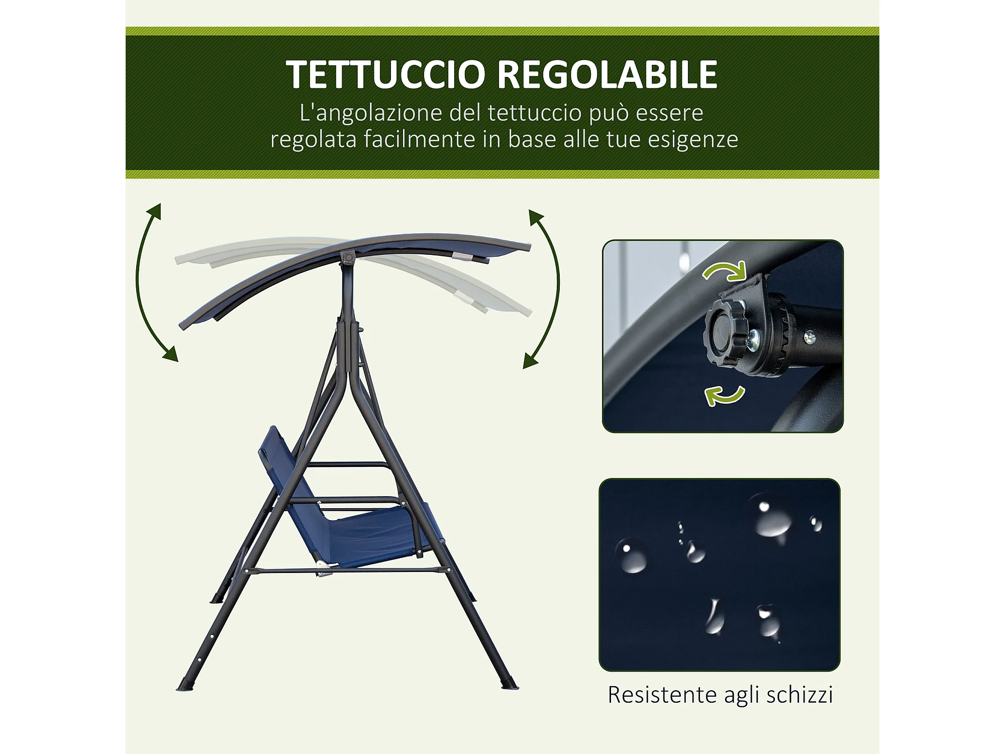 Dondolo da giardino 3 posti con tettuccio regolabile blu scuro