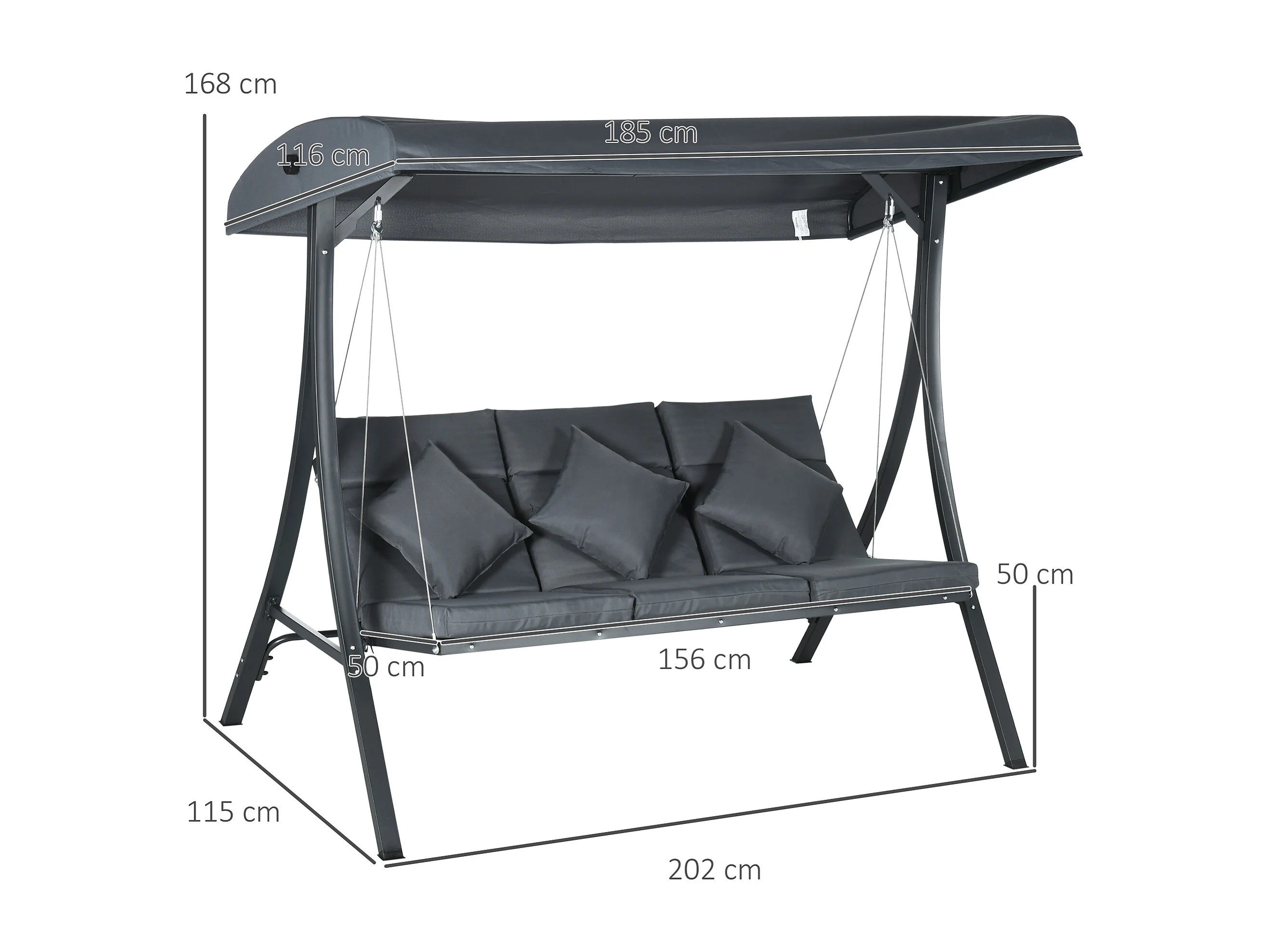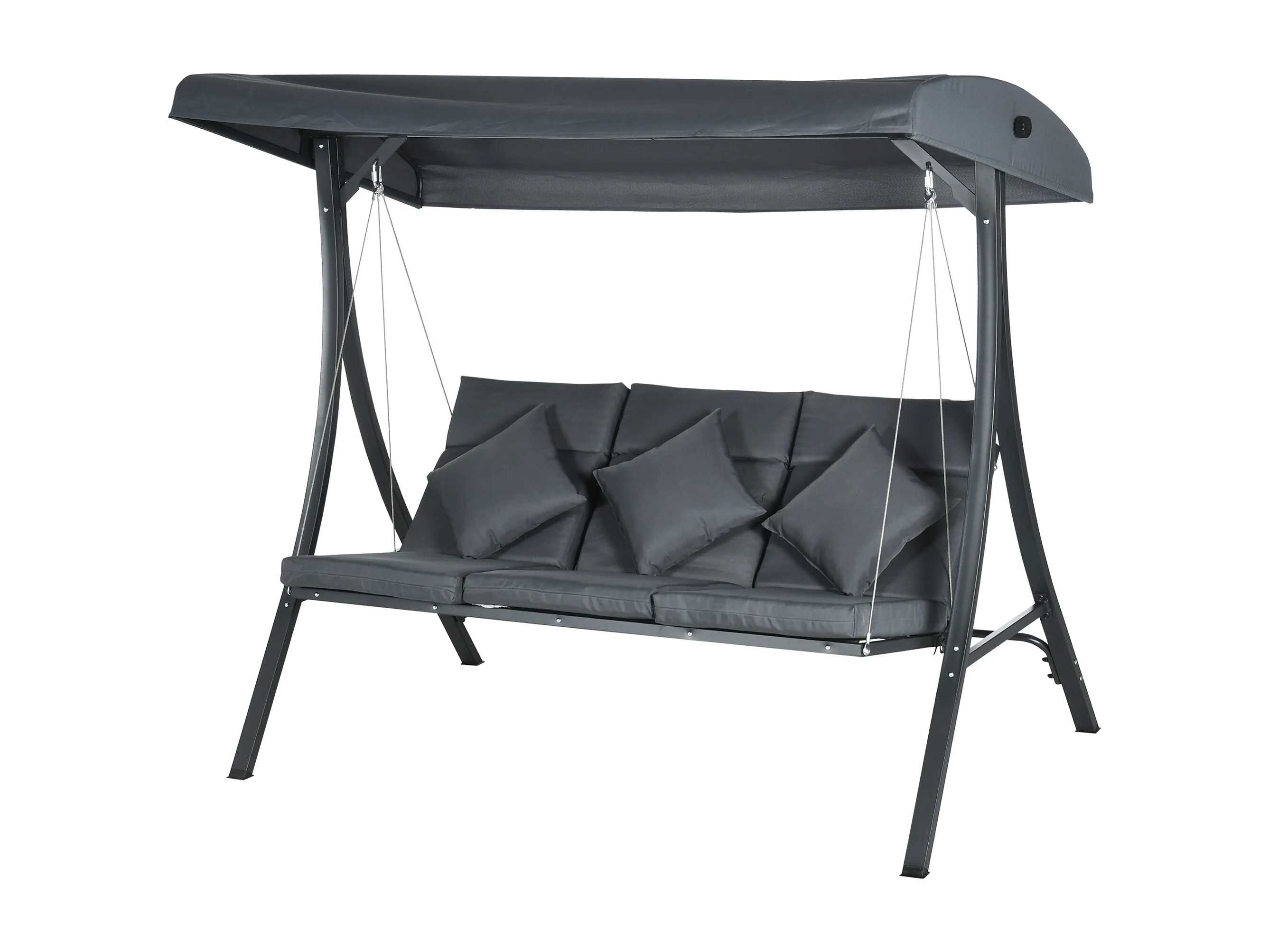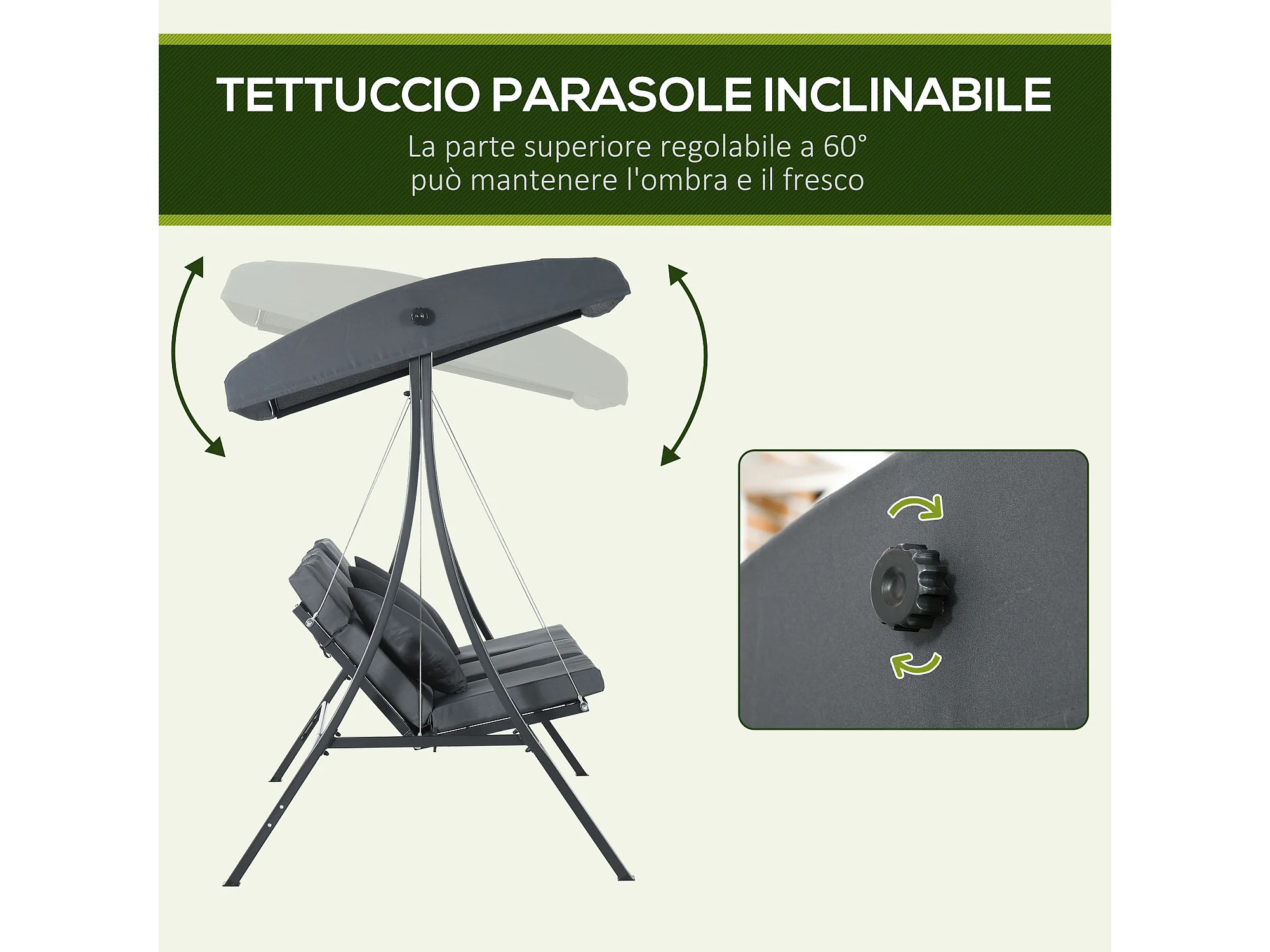 Dondolo da giardino 3 posti con tettuccio regolabile grigio scuro