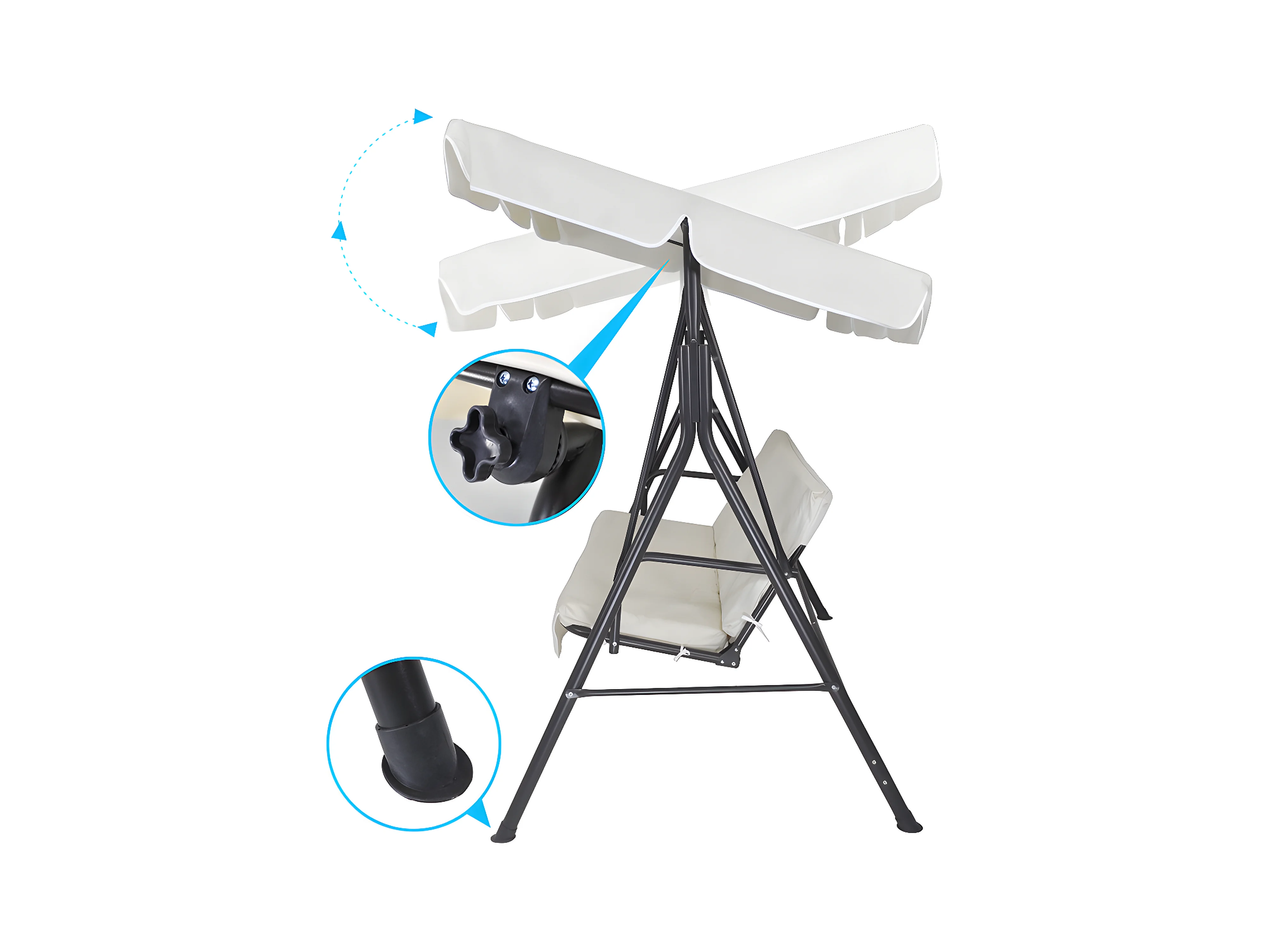 Dondolo 3 Posti Reclinabile Tettuccio Parasole Regolabile Cuscini Imbottiti Diventa Letto Struttura Robusta In Acciaio 200 x 120 x 160 cm Beige