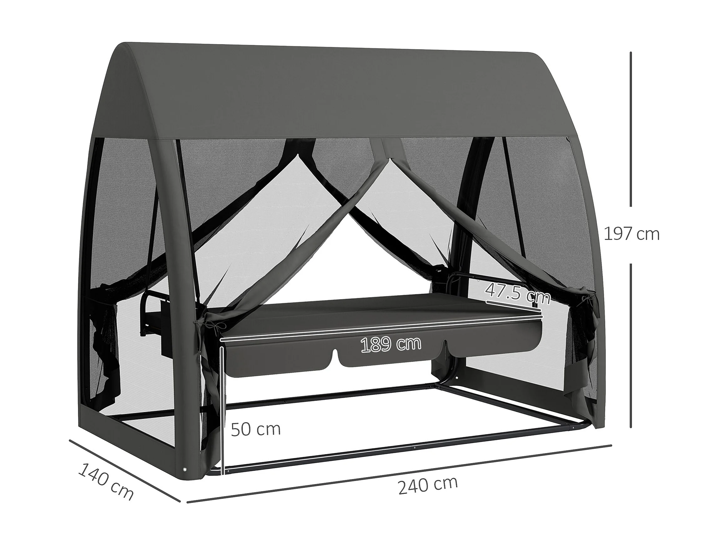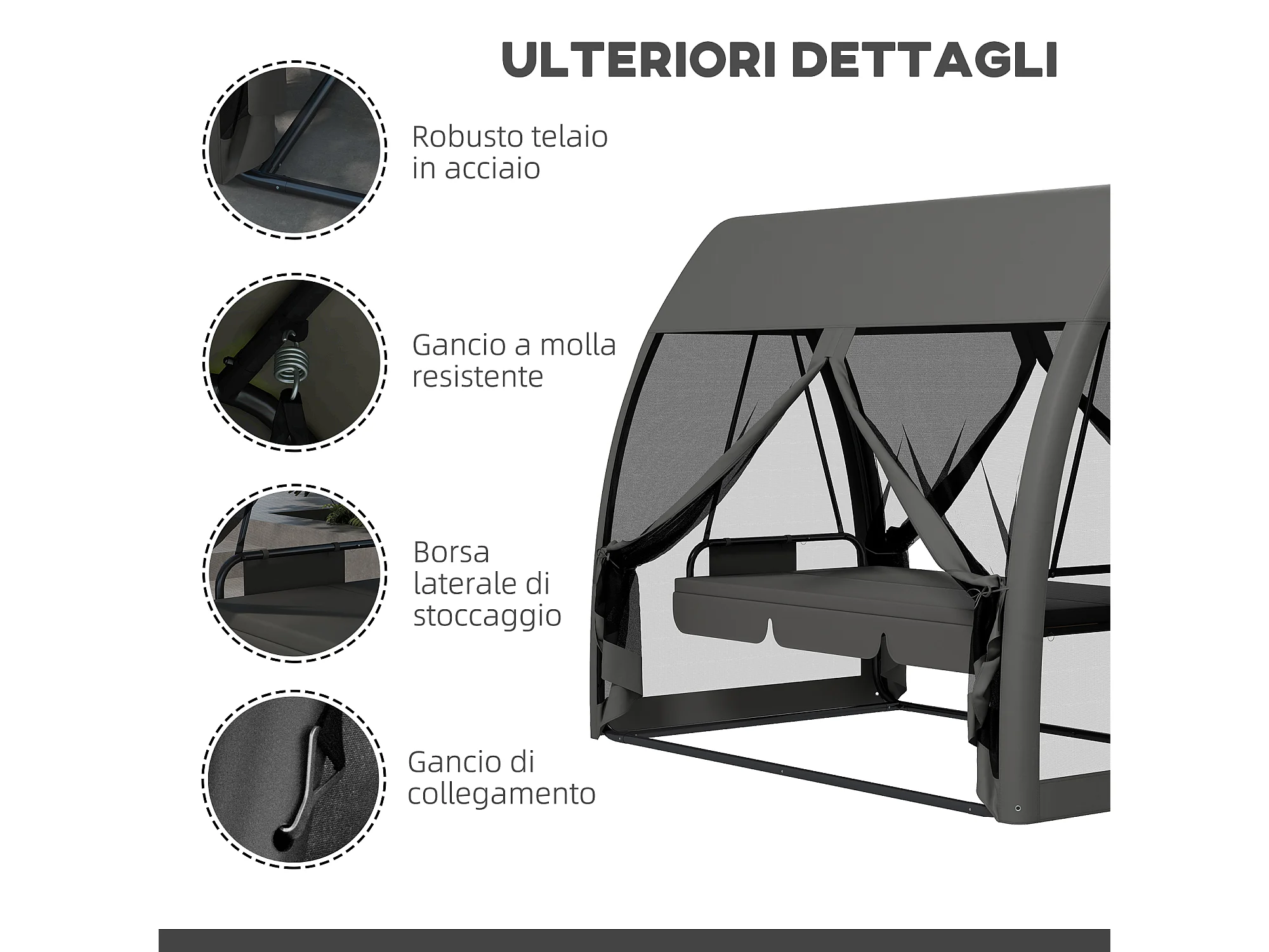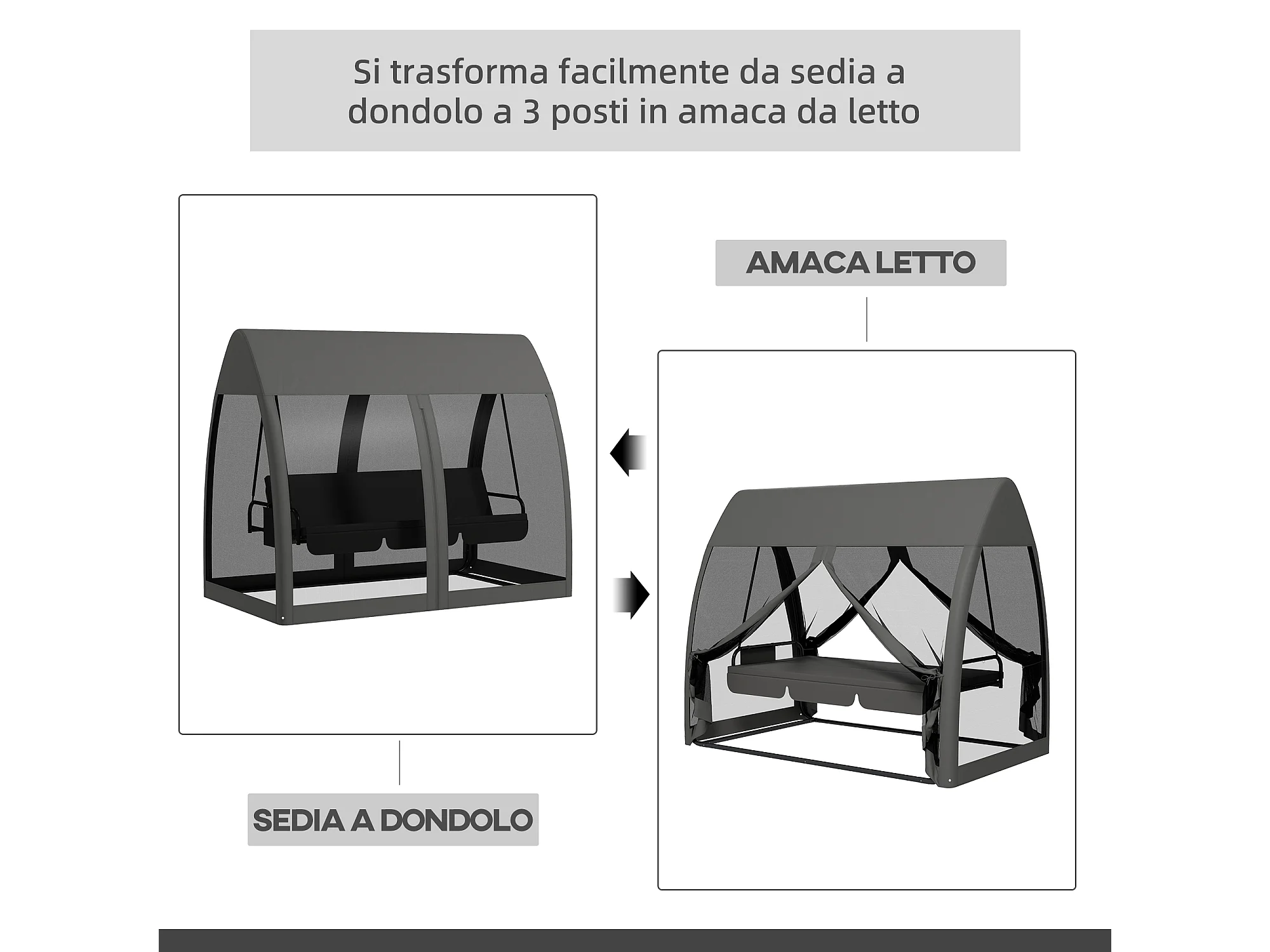 Dondolo da giardino 3 posti convertibile in letto con zanzariera